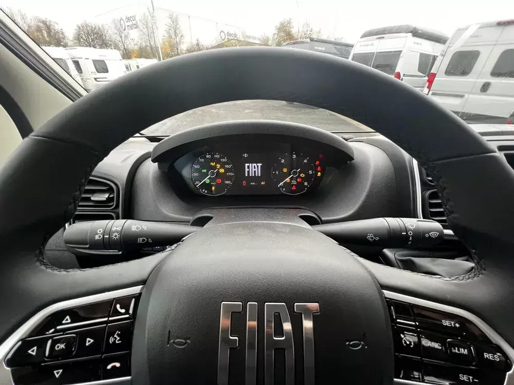 - Active Paket (Fiat) (Alufelge 16 Zoll (Manuelles Getriebe: Felgen Schwarz, Automatik/ Maxi: Felgen Bicolor), Lenkrad und Schaltknauf in Lederausführung, Techno Trim, Tablet Holder, DAB Antenne im Spiegel, Lautsprecher, Lenkradbedienung Radio, Falt-Sichtschutz in Fahrerhaus: Frontscheibe, Falt-Sichtschutz in Fahrerhaus: Seitenscheiben, Fliegengittertür, Elektrische Einstiegsstufe, Fenster im Bad, Dachhaube Midi-Heki 70 x 50 cm über der Sitzgruppe mit Fliegenschutz und Verdunklungsrollo, Drehplatte für Tischerweiterung, Kabelvorbereitung für Rückfahrkamera, Vorbereitung Solarmodule, TV-Vorbereitung 12 V und TV-Steckdose, SAT-Anschluss, LED-Lichtröhre in der Küche, 230-V-Steckdose im Oberschrank Bug links (Sitzgruppe), 12-V-Steckdose im Heckbereich links unten, Zusätzliche Doppel-USB-Steckdose im Bug links)