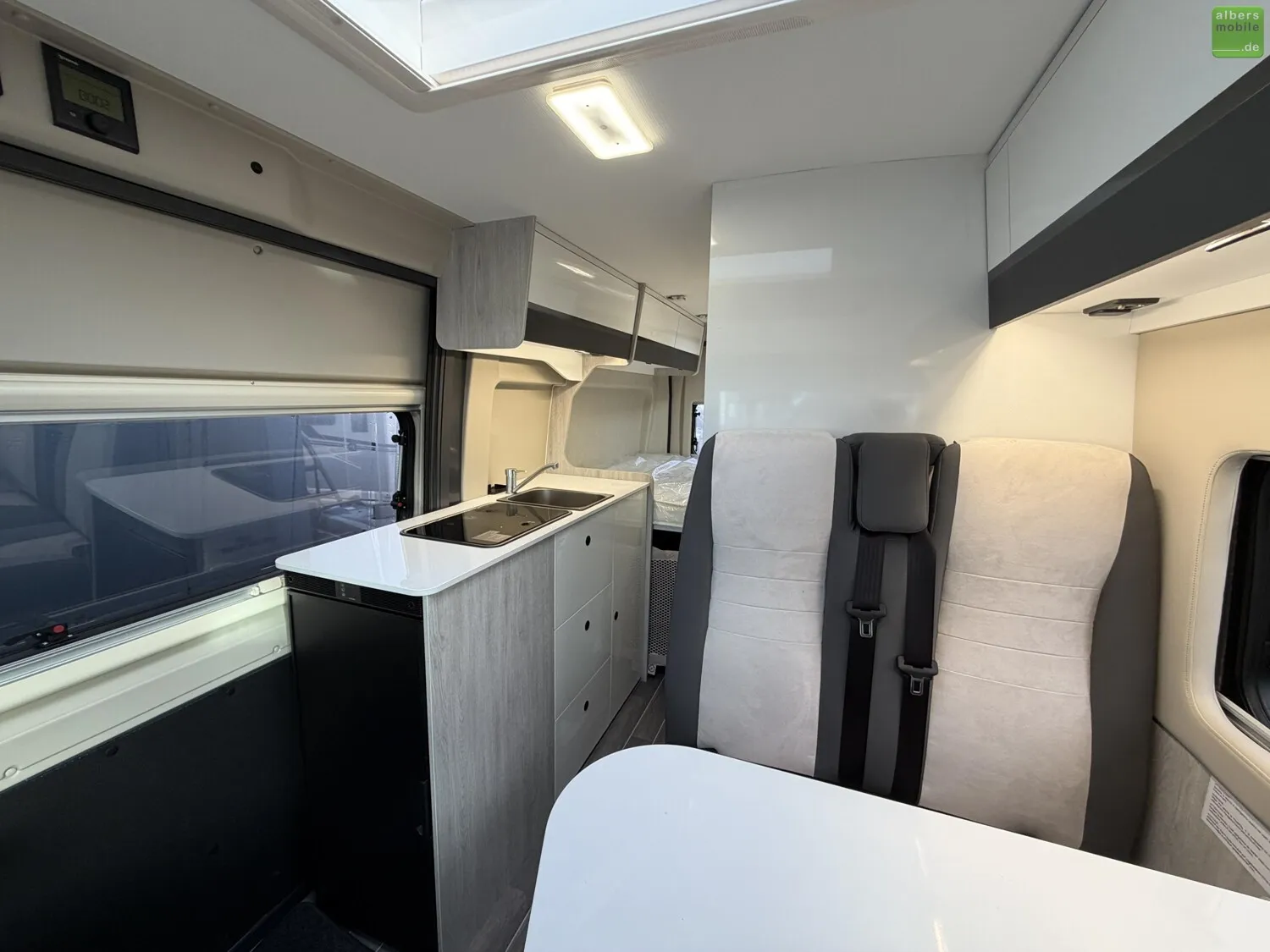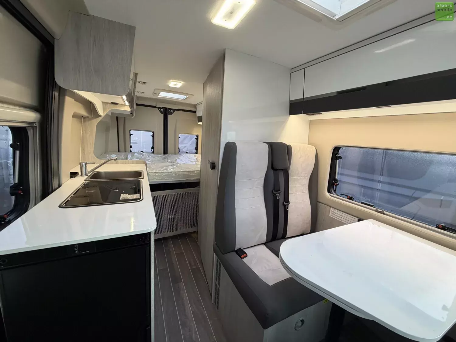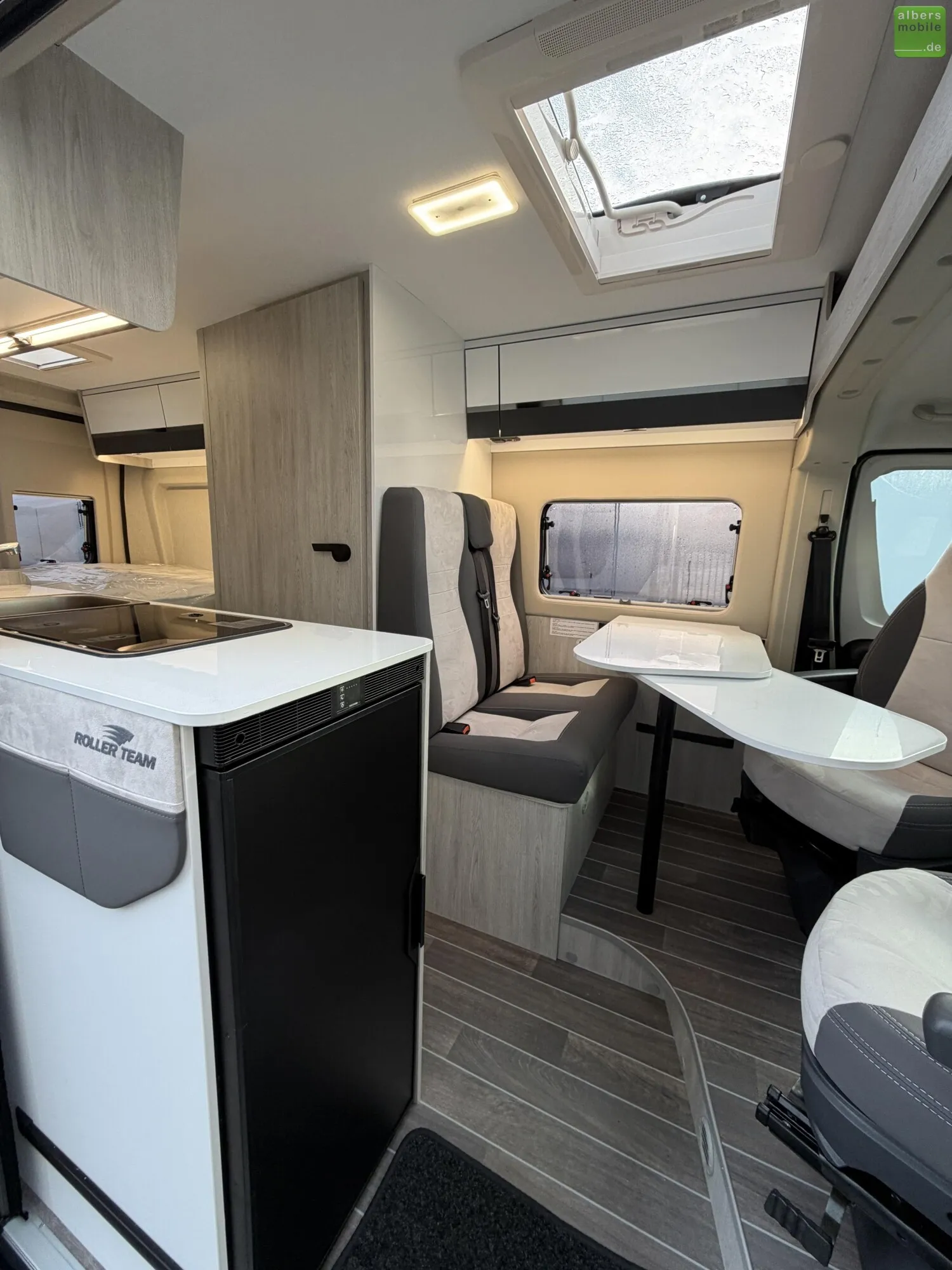 Der Roller Team Livingstone GO bietet durchdachten Komfort auf jeder Reise: ergonomische Sitze mit Rückenlehne, ein integriertes Edelstahlspülbecken mit Mischarmatur sowie ein 2-Flammen-Kochfeld mit praktischer Glasabdeckung. Für erholsamen Schlaf sorgen Betten mit Lattenrost und ?Sleep Comfort?-Matratzen aus atmungsaktivem Gewebe.