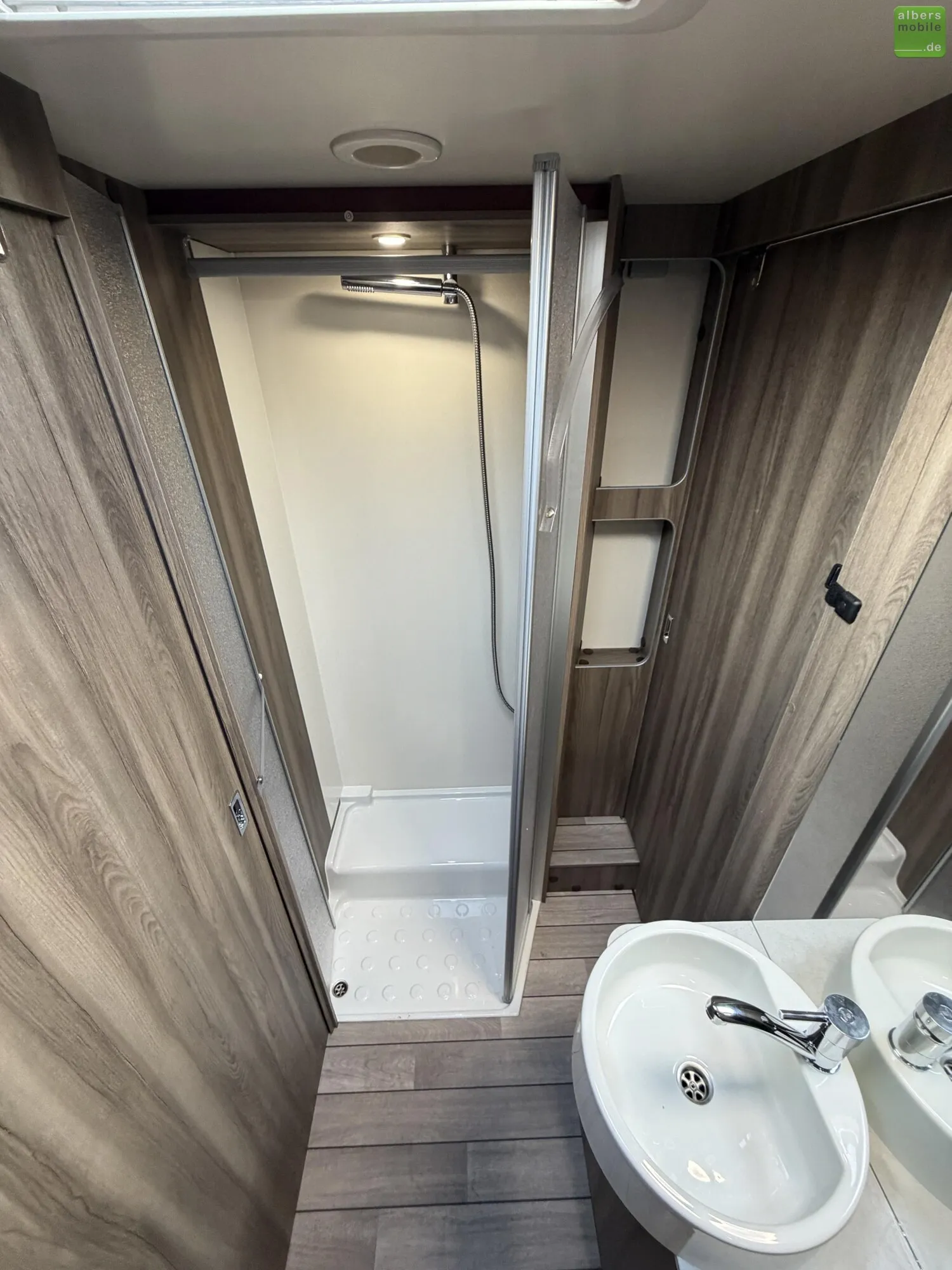 - Dusche mit festen Türen