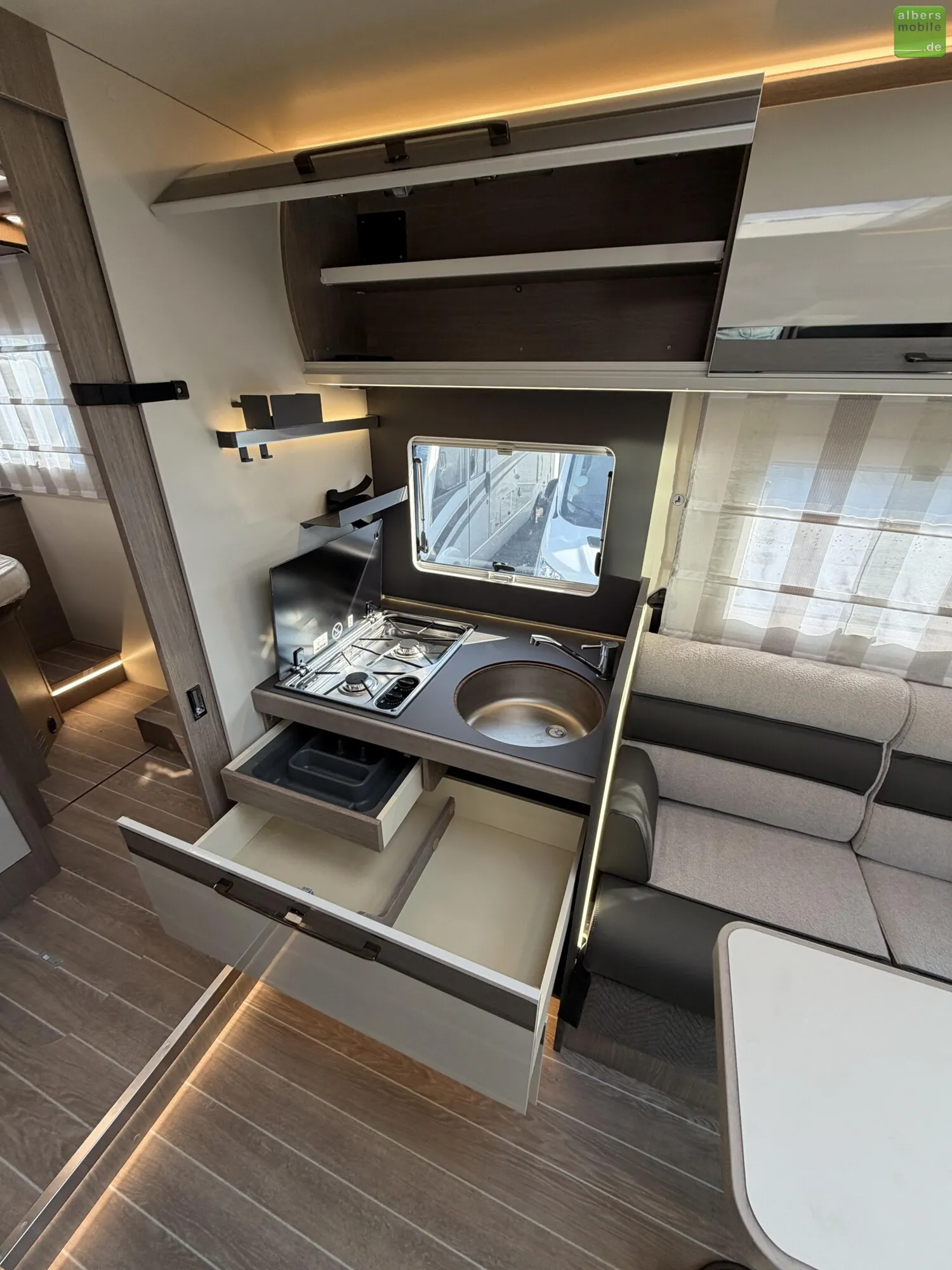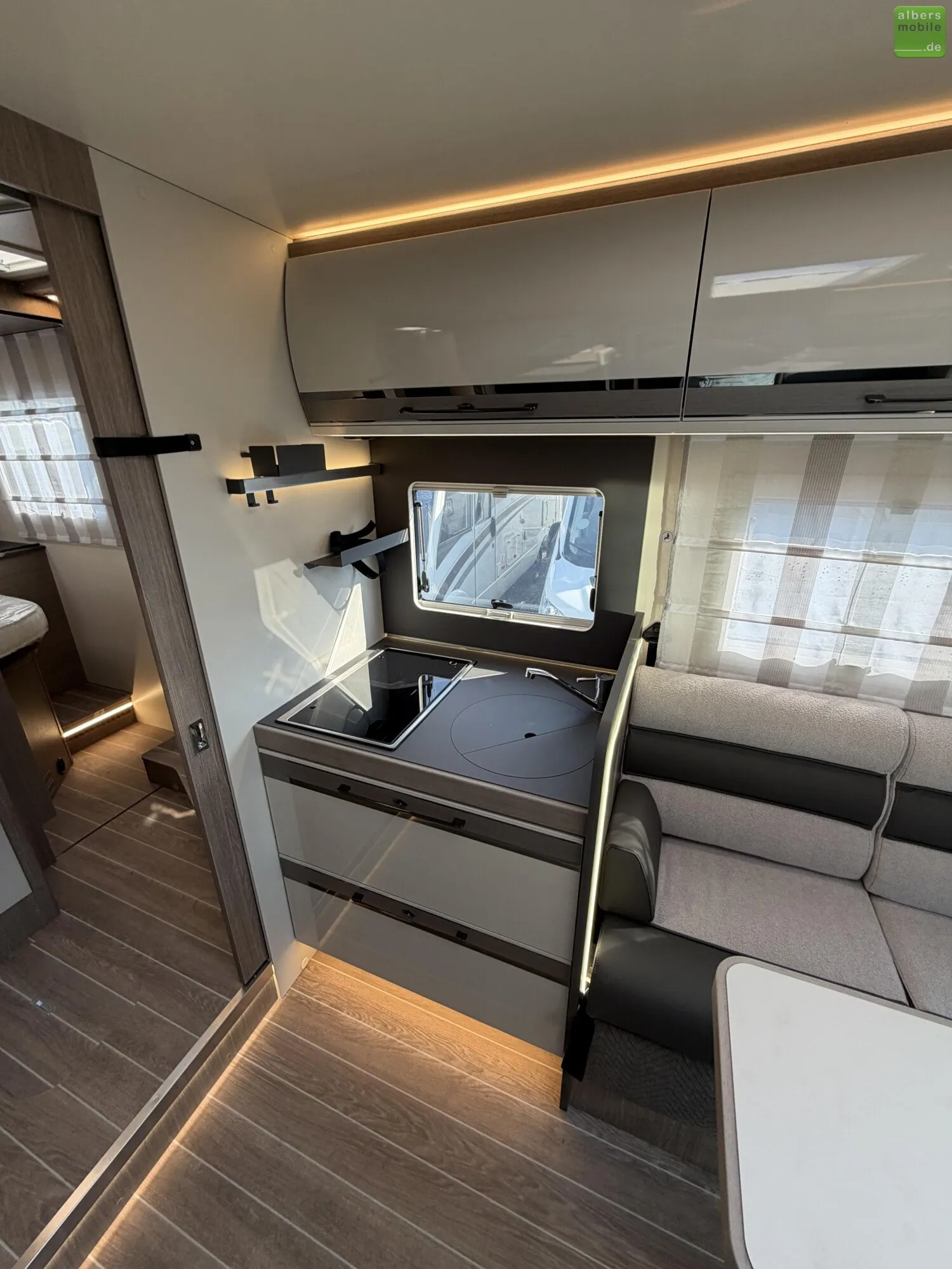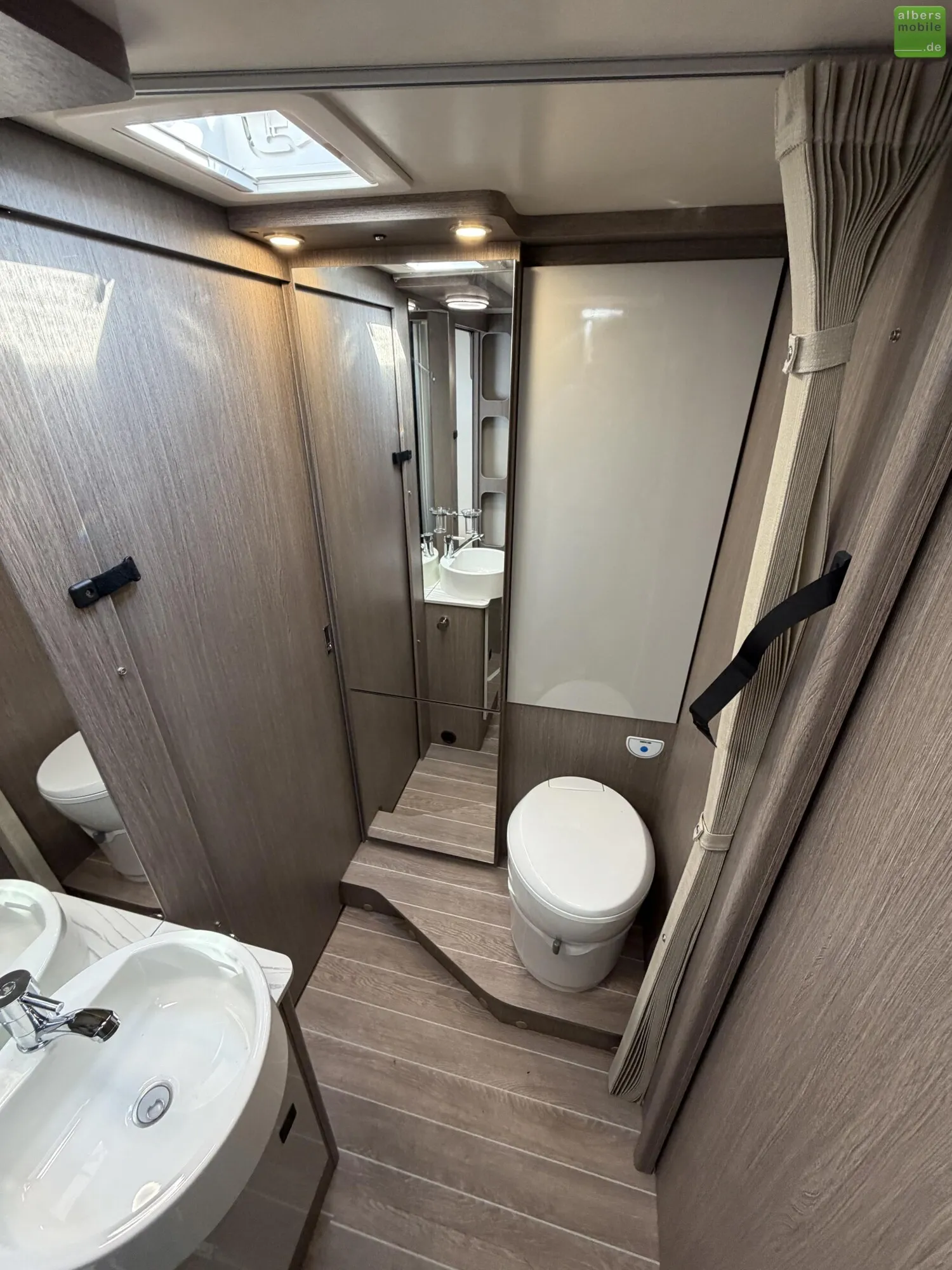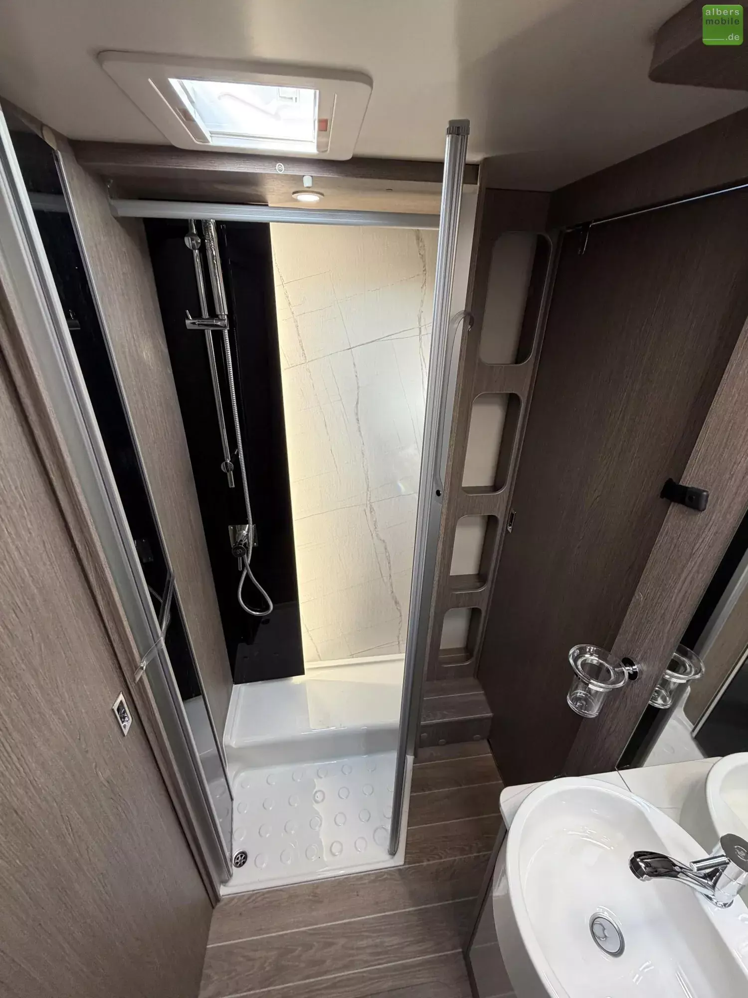 Wir bieten Ihnen einen neuen Roller Team Zefiro 266 P mit einem Queensbett und einem Automatikgetriebe aus dem Modelljahr 2026. Das besonders geräumige Badezimmer mit separater Dusche und Trenntüren zeichnen das Reisemobil aus.