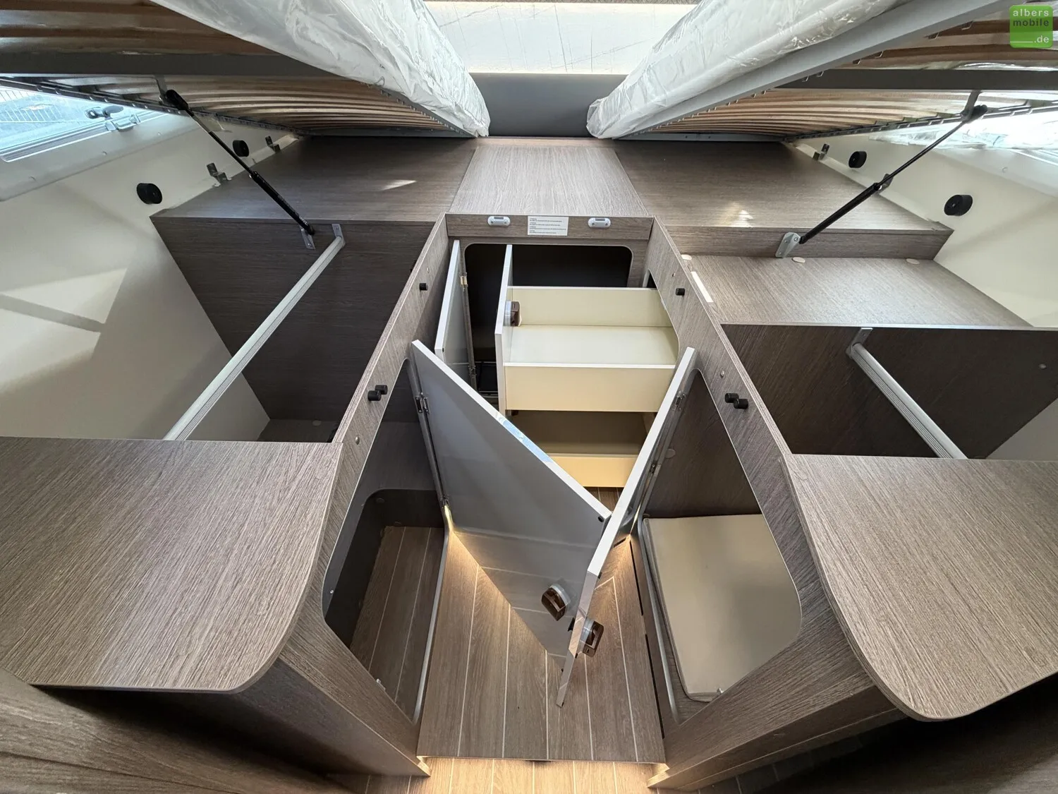 • Schubladen unter den Einzelbetten oder dem Queensbett