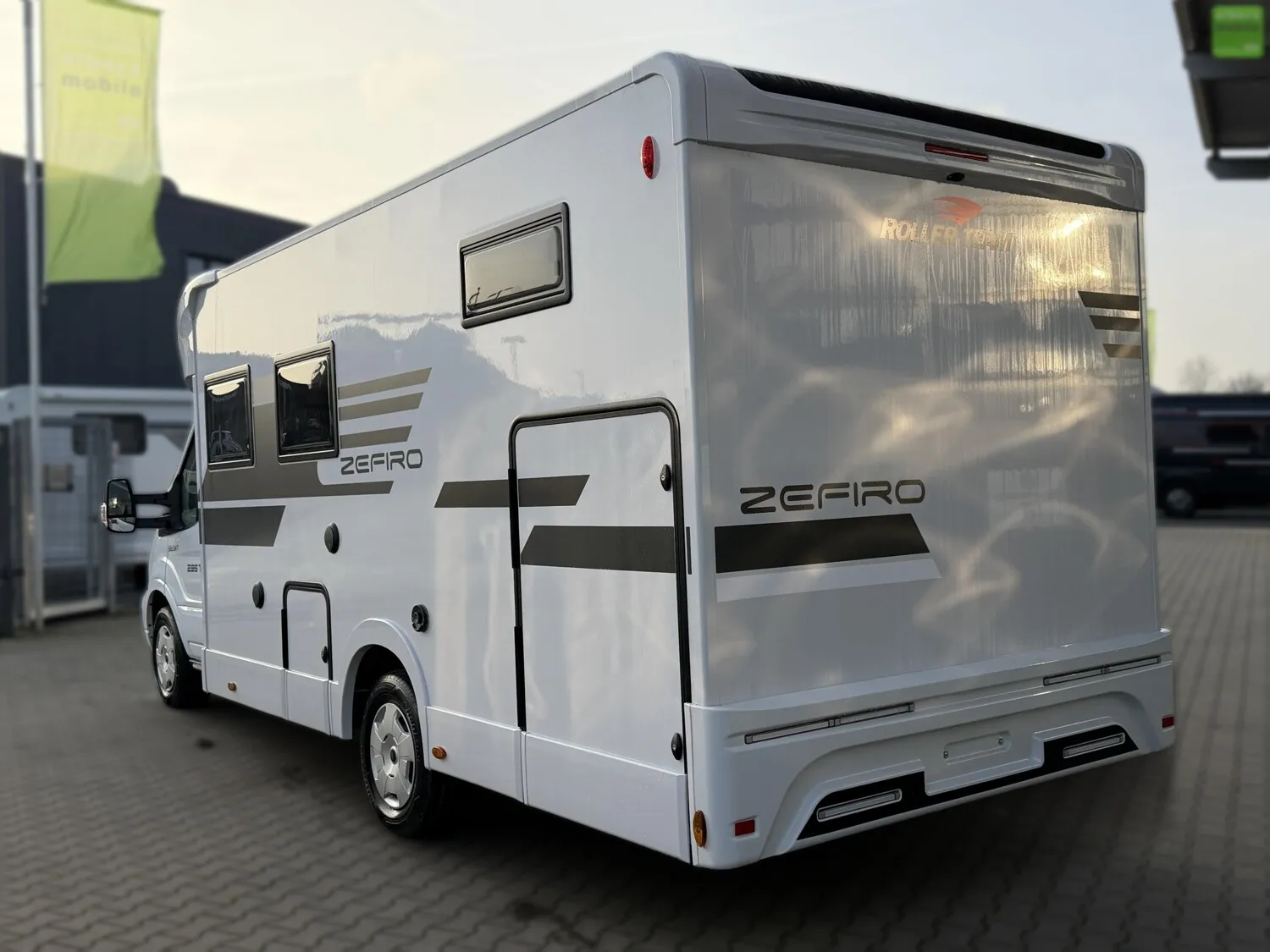 Wir bieten Ihnen einen neuen Roller Team Zefiro 295 TL mit einem Querbett im Heck, Hubbett und einem Automatikgetriebe aus dem Modelljahr 2026.