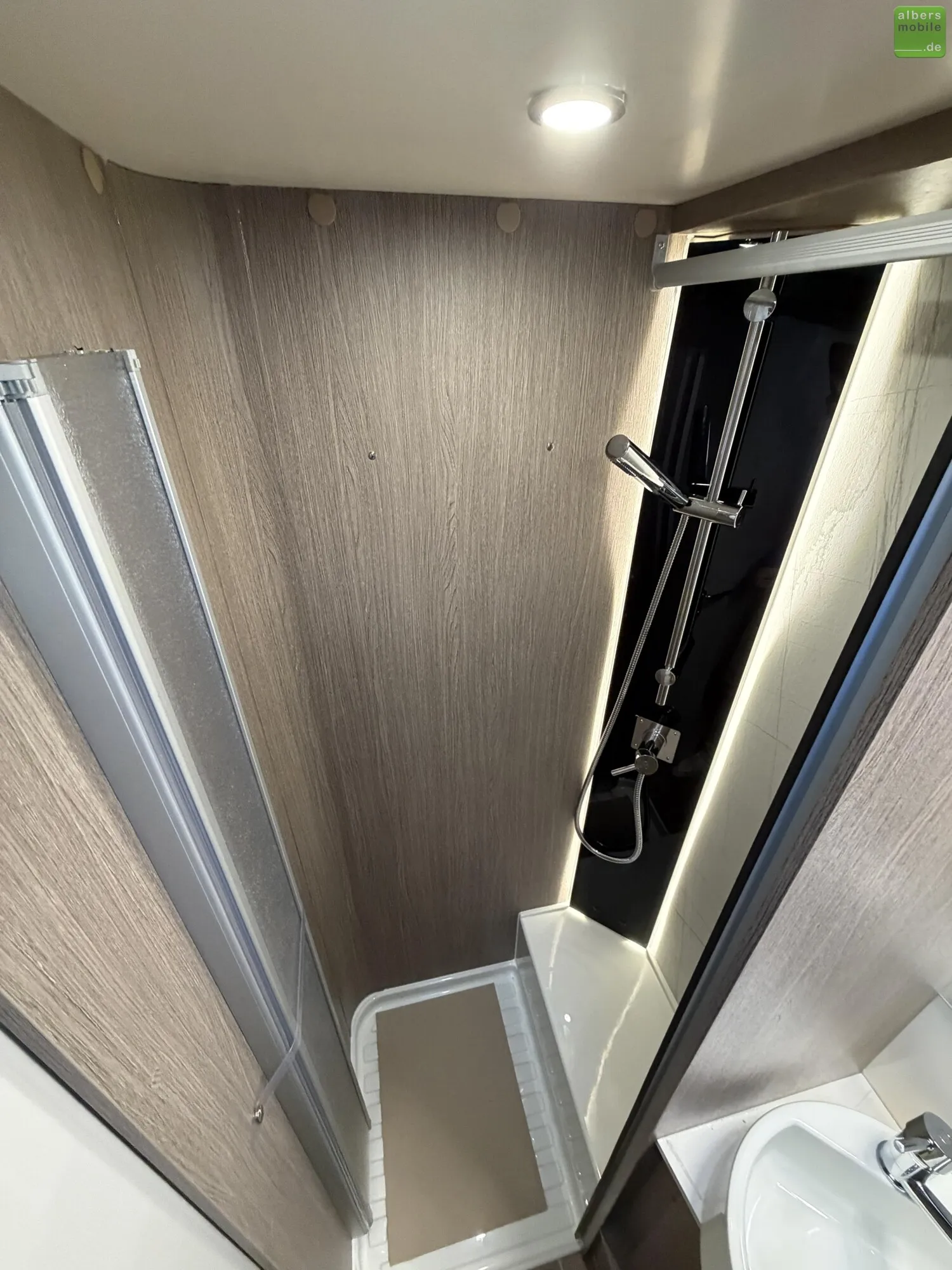 - Dusche mit festen Türen