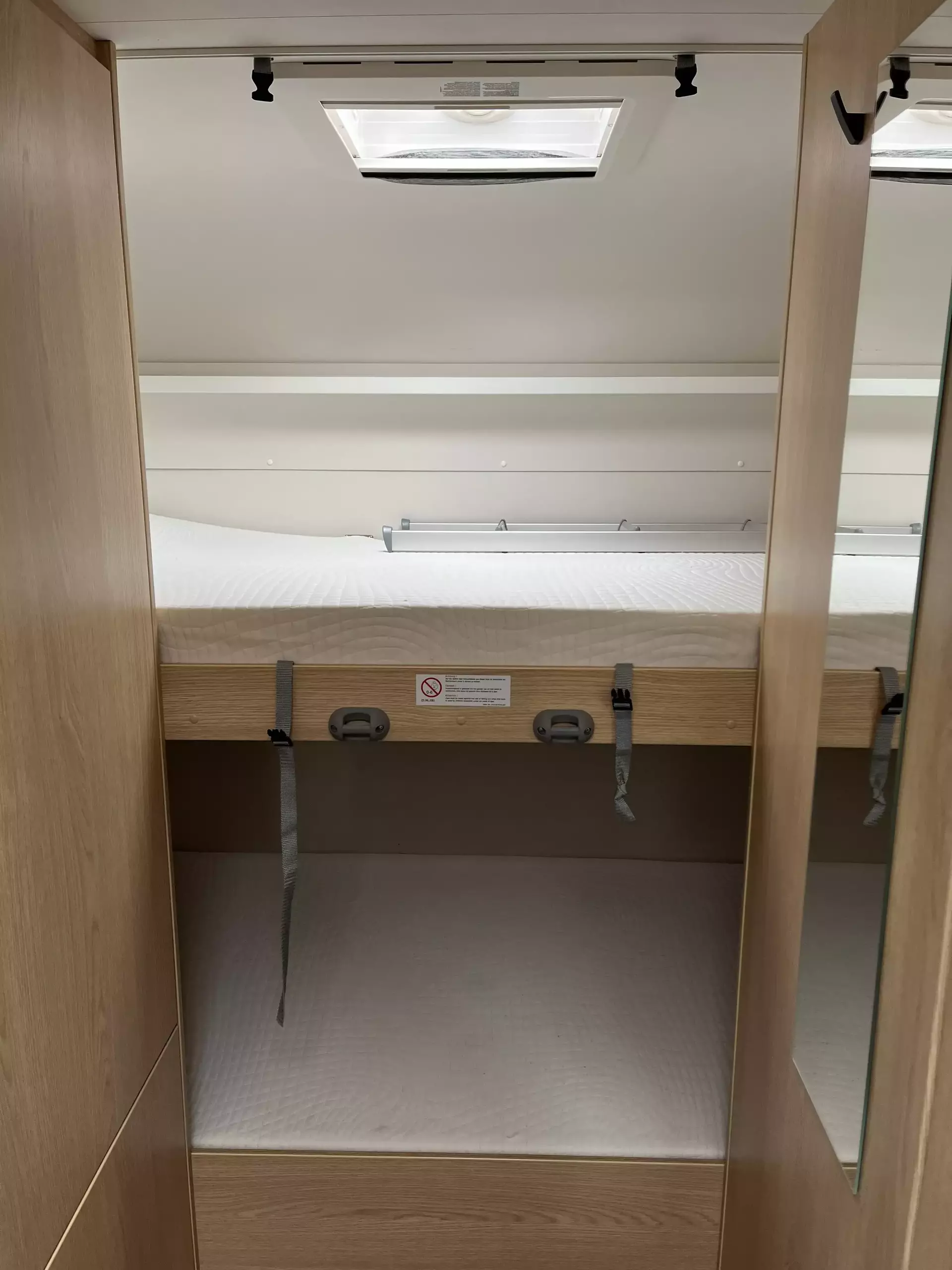 - Sicherheitspaket Alkoven: 2 Kopfstützen und 2 Beckengurte
