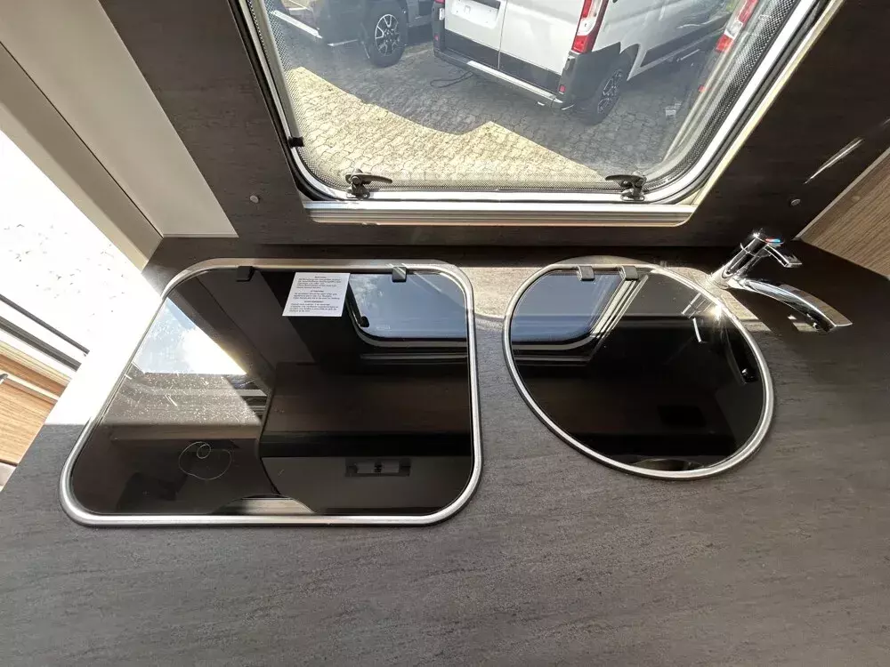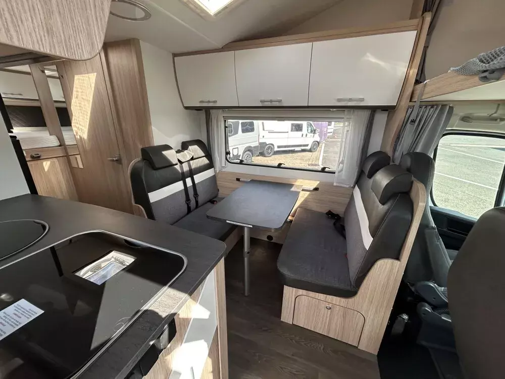 - Basic Paket Teilintegrierte und Alkoven (Außenspiegel elektrisch und beheizt, Radiovorbereitung mit Lautsprechern, DAB Antenne integriert im Außenspiegel, Beifahrersitz höhenverstellbar, Panormadachhaube über Küche, Klarglasdachhaube 40x40, Duschraumverkleidung, Spiegel mit indirekter Beleuchtung und Garderobenhaken, Captain Chair mit Bezügen, Zusätzliche Steckdose im Dachschrank über dem Küchenblock, Steckdose in der Garage)