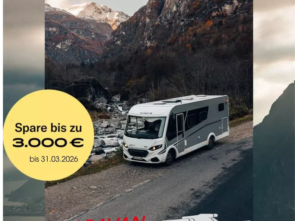 - Aktionsprämie "Ready to Roll" (Der Aktionszeitraum der Ready to Roll Aktion erstreckt sich auf abgeschlossene Kaufverträge vom 15.01.2026 bis einschließlich 31.03.2026. Die Aktion ist gültig bei allen teilnehmenden Handelspartnern von SUNLIGHT und gilt ausschließlich für den Kauf von Neufahrzeugen. Der Aktionswert variiert je nach Baureihe und beinhaltet die Mehrwertsteuer. Sunlight behält sich das Recht vor, Aktionsbedingungen jederzeit zu ändern sowie die Aktion vorzeitig zu beenden. Kaufverträge innerhalb der Aktion sind vom Widerruf ausgeschlossen.)
