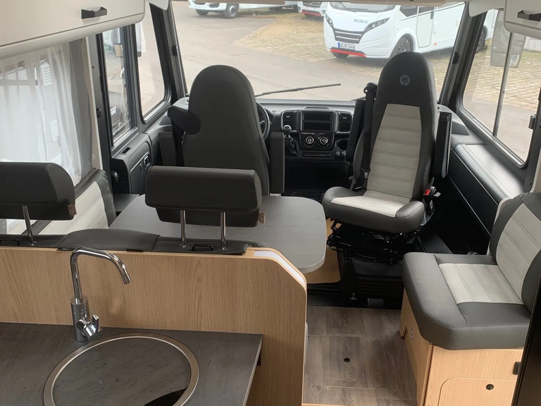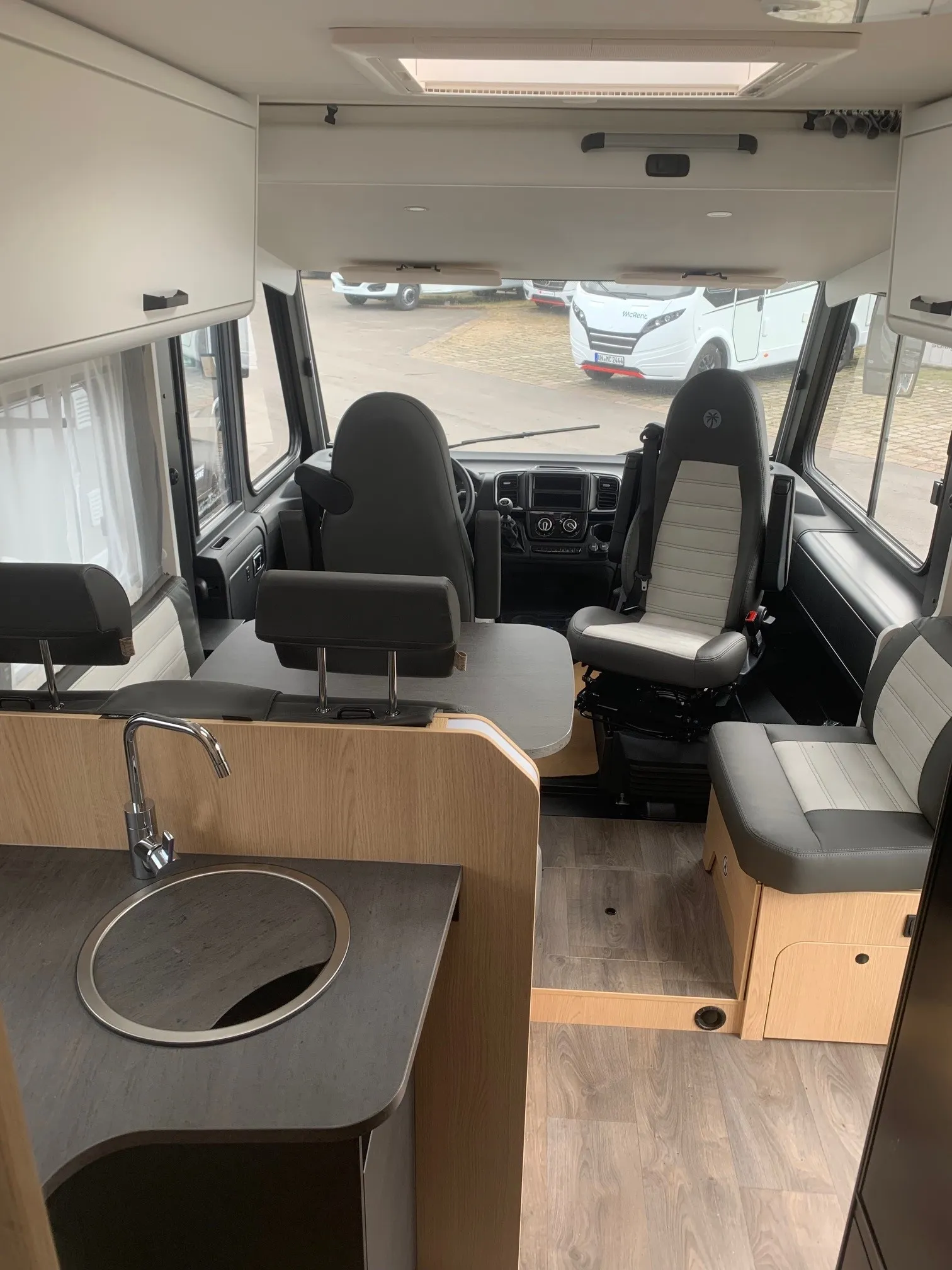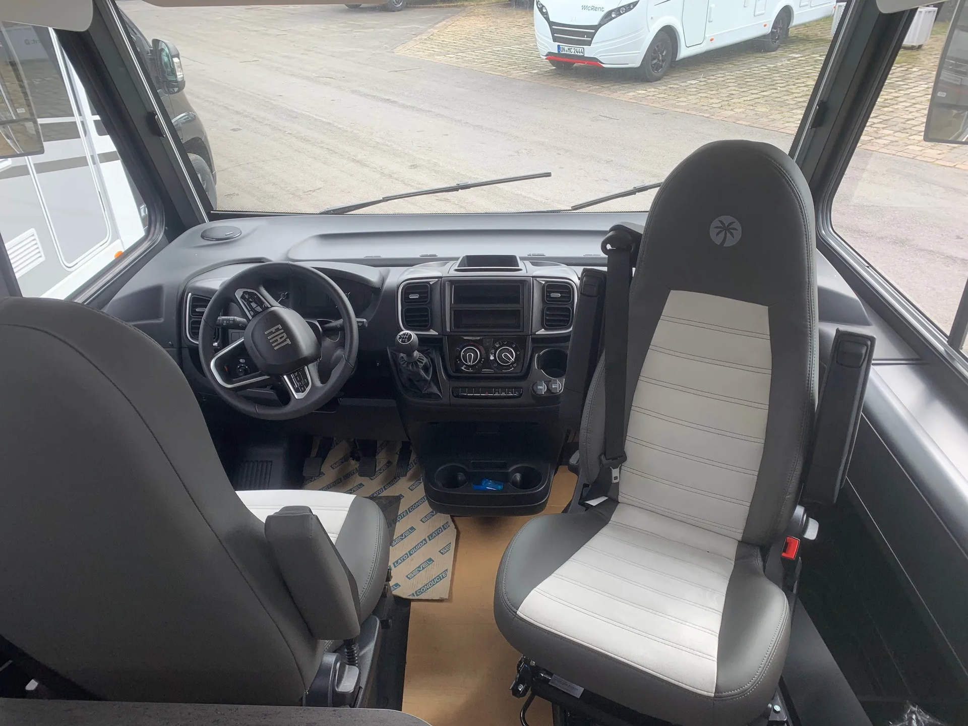 - Adventure Ausstattung 69L (Fiat Ducato 3.500 kg | 2.2 Multijet | 103 kW | 140 PS Euro 6 | 6-Gang-Schaltgetriebe, Chassisfarbe Weiß, Seitenwand Silber Glattblech, Adventure Beklebung, Wohnwelt Adventure, Design Applikation Heck, Rahmenfenster, 2. Außenstauraumklappe (Größe modellabhängig), Bettenumbau im Bereich Sitzgruppe, Paket One Black (Markise, Fahrradträger 3-fach), Großer Kühlschrank 156 l mit separatem Frosterfach 29 l, Bridge Light, Komfort Eingangstür mit Fenster, Fliegengittertür (einteilig), Panoramadachhaube 70 x 50 cm, Klarglasdachhaube 40 x 40 cm, Lenkrad & Schaltknauf in Lederausführung, Luftauslässe mit Applikationen Silber (Techno-Trim), 16" Alufelgen Bi-Color)