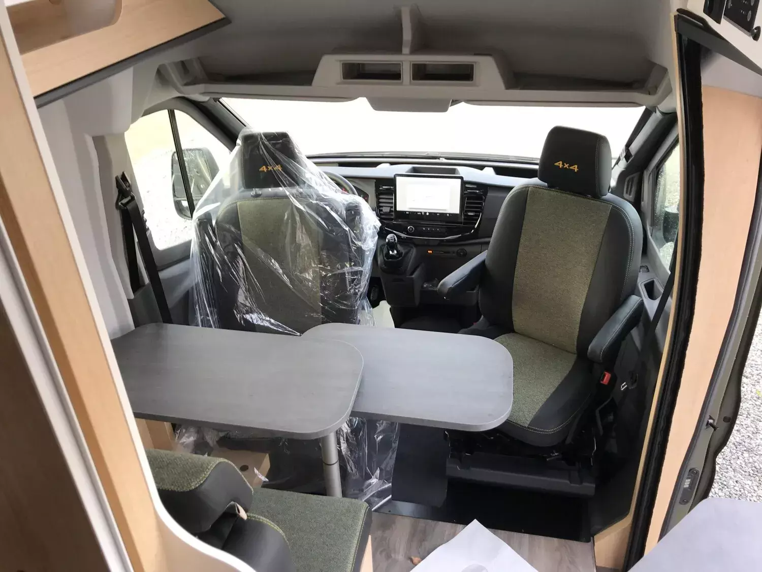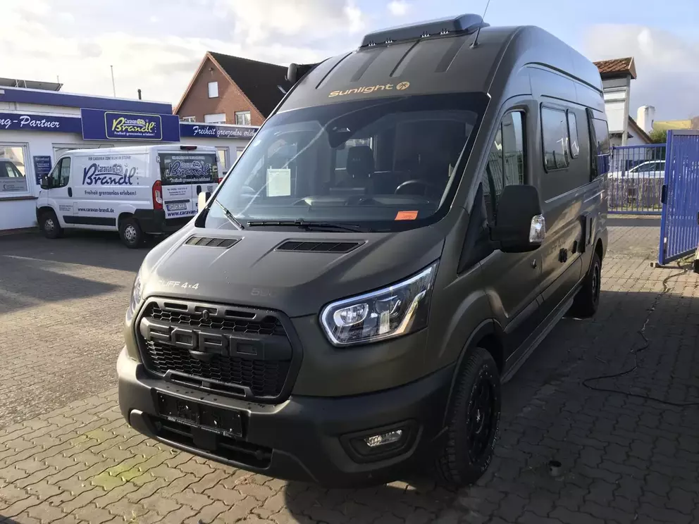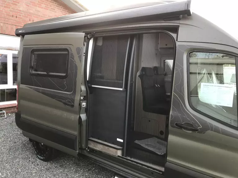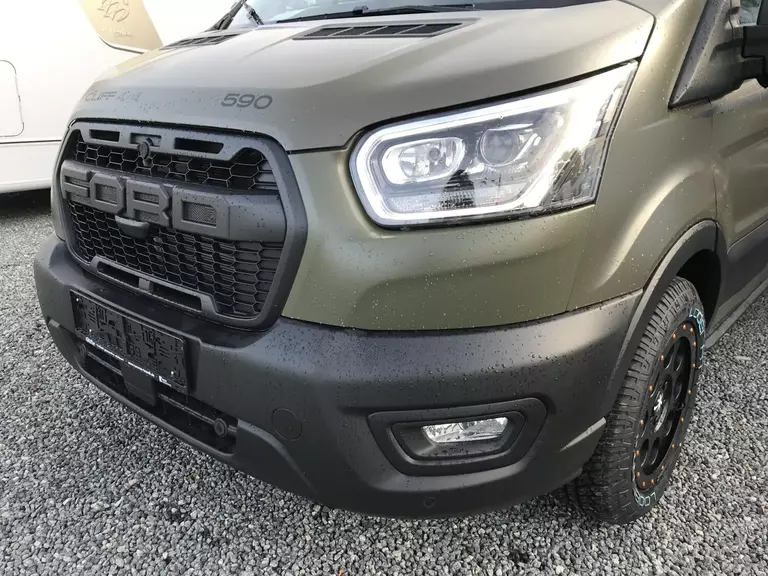 - Ausstattung CLIFF 4x4 Green Trek 590 (Ford Transit 3.500 kg | 2.0 | 122 kW | 165 PS | EURO 6 | 6-Gang-Schaltgetriebe | Allradantrieb, Yellow Olive, Beklebung CLIFF 4x4 Green Trek, Wohnwelt Adventure, Seitliche Schlaferweiterung mittels Verbreiterungsbacken im Heck, Rahmenfenster, Beide Hecktüren mit Ausstellfenster (inkl. Rollo), Dachstauschrank Heck umlaufend, Markise 3,5 m (schwarz), Klimaanlage inkl. Staub- und Pollenfilter, Stoßfänger lackiert, Nebelscheinwerfer, Scheinwerfer mit statischem Abbiegelicht, Panoramadachhaube 70 x 50 cm, Duschausstattung, Fenster im Bad, Kleiderstange in der Nasszelle, Breite Einstiegsstufe, Drehplatte für Tischerweiterung an der Sitzgruppe, 17" Offroadbereifung Delta, Trail Kühlergrill)