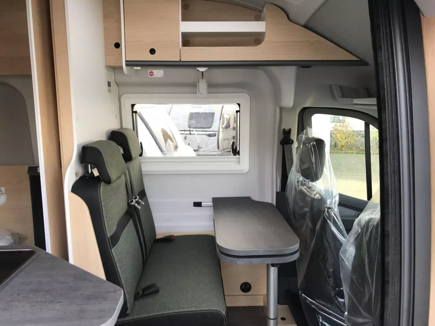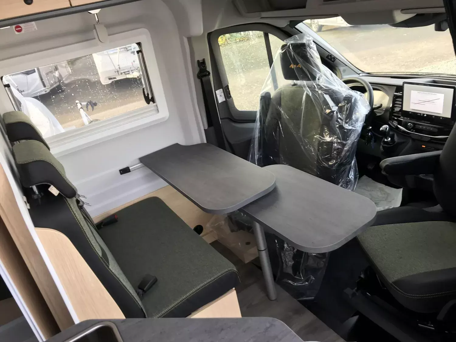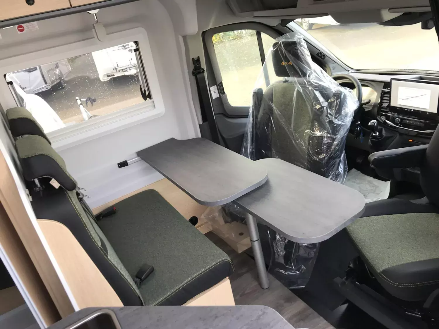 - Ausstattung CLIFF 4x4 Green Trek 590 (Ford Transit 3.500 kg | 2.0 | 122 kW | 165 PS | EURO 6 | 6-Gang-Schaltgetriebe | Allradantrieb, Yellow Olive, Beklebung CLIFF 4x4 Green Trek, Wohnwelt Adventure, Seitliche Schlaferweiterung mittels Verbreiterungsbacken im Heck, Rahmenfenster, Beide Hecktüren mit Ausstellfenster (inkl. Rollo), Dachstauschrank Heck umlaufend, Markise 3,5 m (schwarz), Klimaanlage inkl. Staub- und Pollenfilter, Stoßfänger lackiert, Nebelscheinwerfer, Scheinwerfer mit statischem Abbiegelicht, Panoramadachhaube 70 x 50 cm, Duschausstattung, Fenster im Bad, Kleiderstange in der Nasszelle, Breite Einstiegsstufe, Drehplatte für Tischerweiterung an der Sitzgruppe, 17" Offroadbereifung Delta, Trail Kühlergrill)