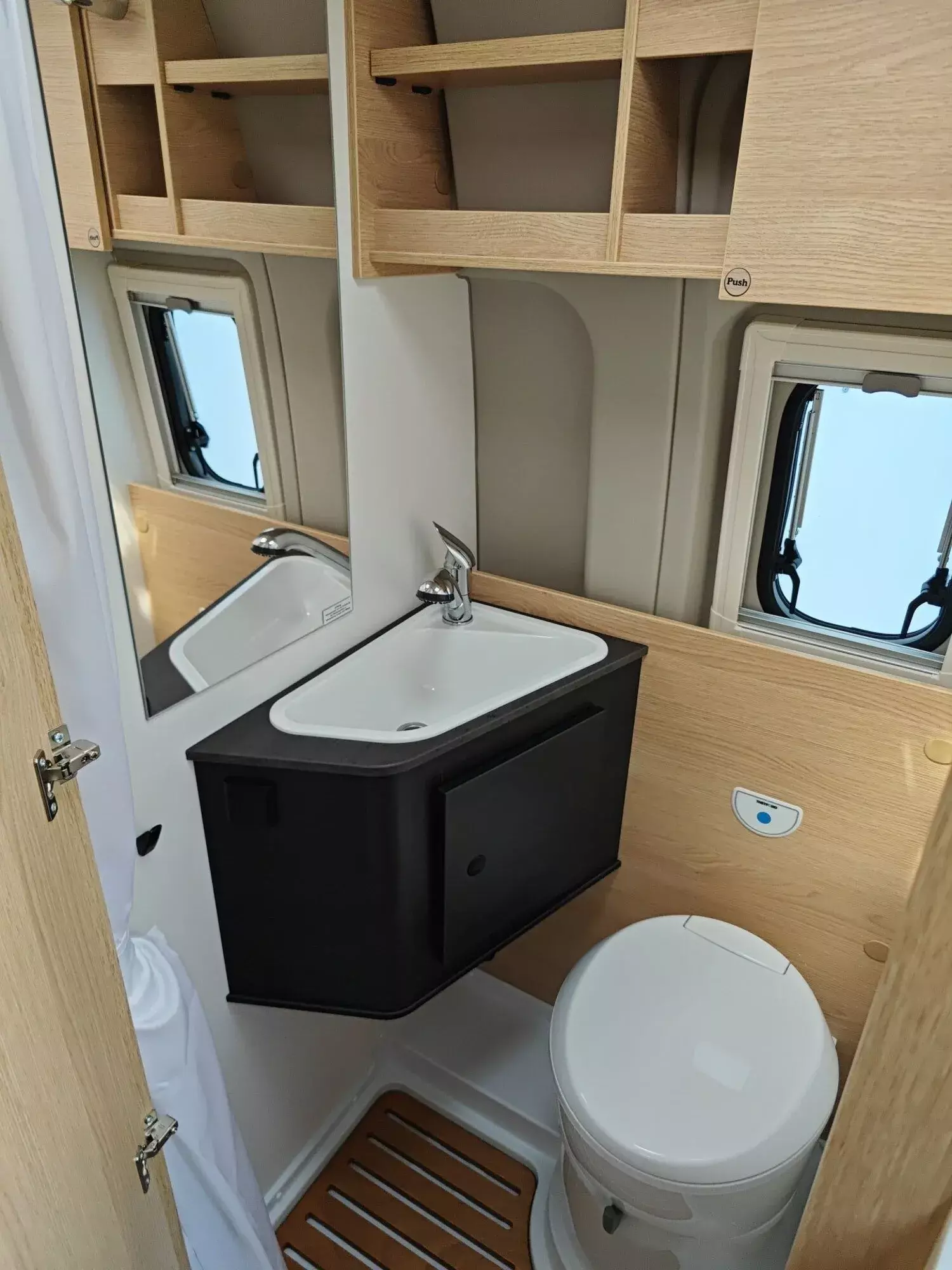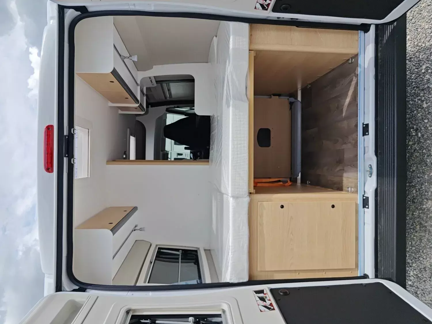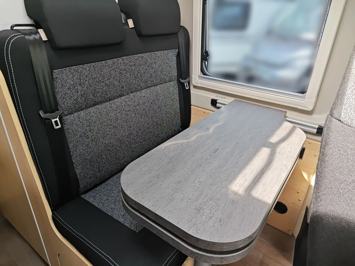 - Basic Paket (Panoramadachhaube 70 x 50 cm, Duschausstattung, Fenster im Bad, Kleiderstange in der Nasszelle, Breite Einstiegsstufe, Drehplatte für Tischerweiterung an der Sitzgruppe)