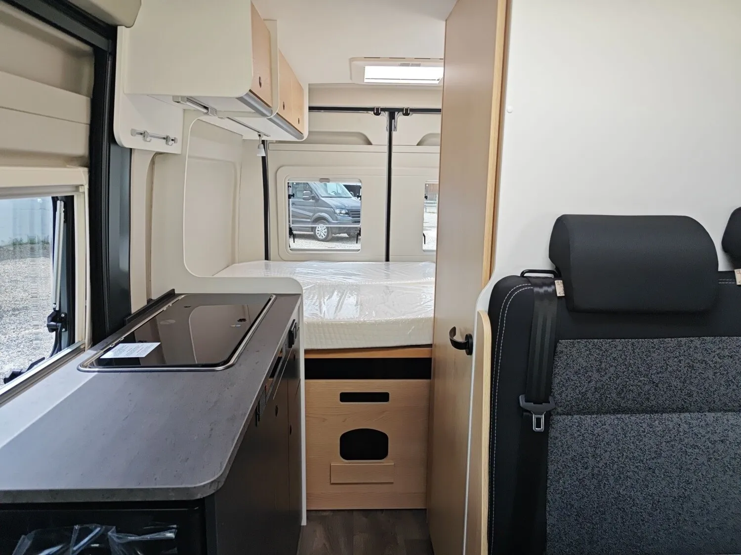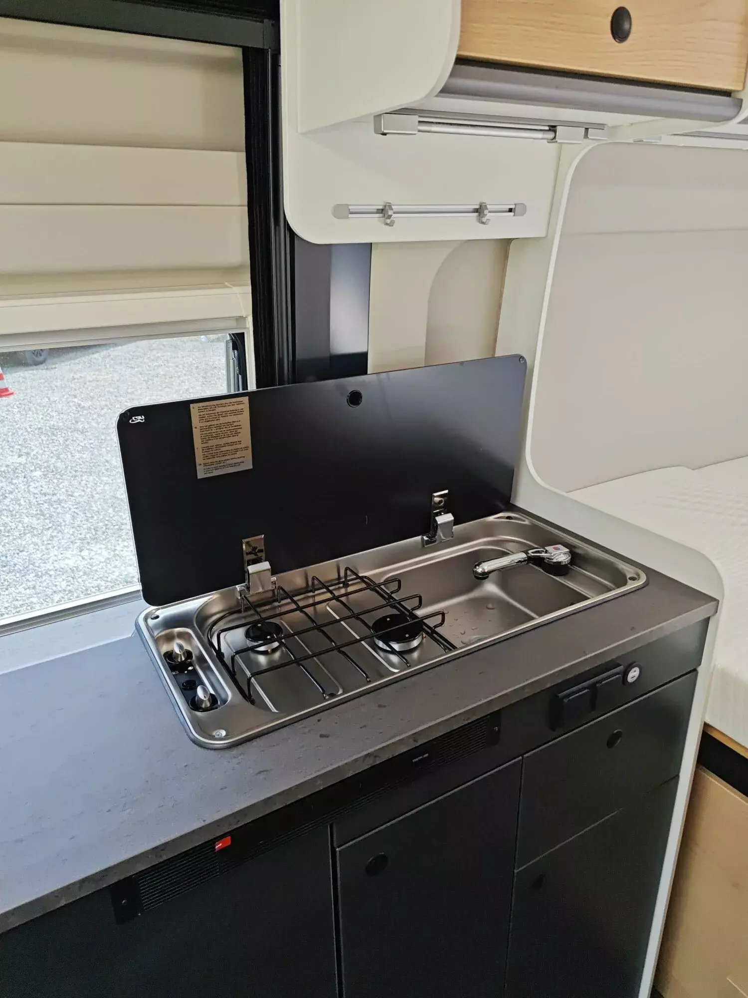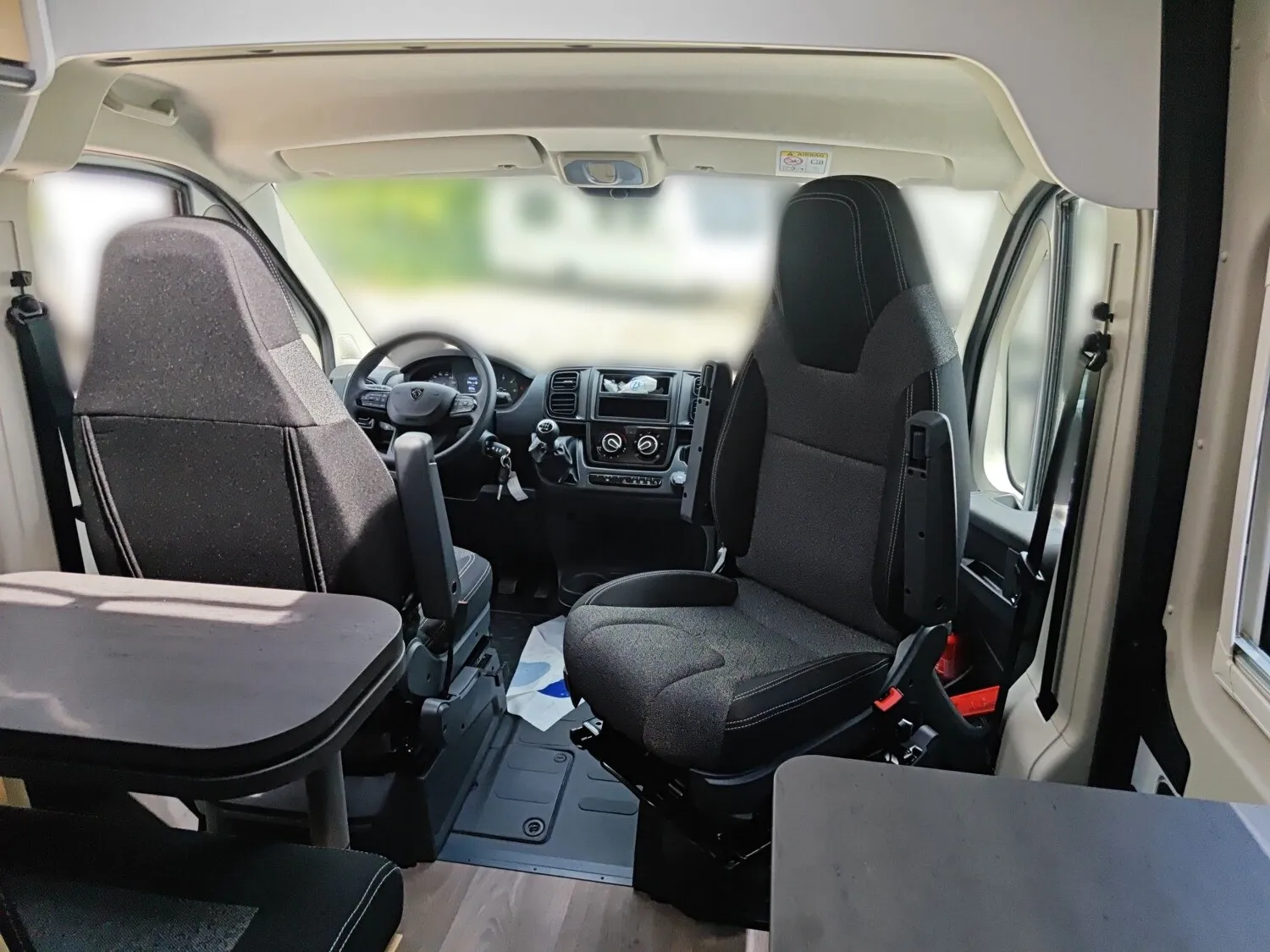 - Basic Paket (Panoramadachhaube 70 x 50 cm, Duschausstattung, Fenster im Bad, Kleiderstange in der Nasszelle, Breite Einstiegsstufe, Drehplatte für Tischerweiterung an der Sitzgruppe)