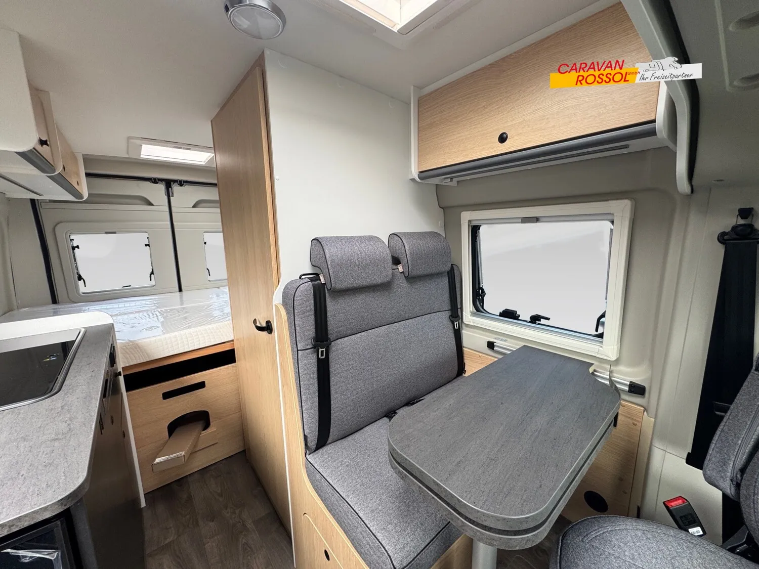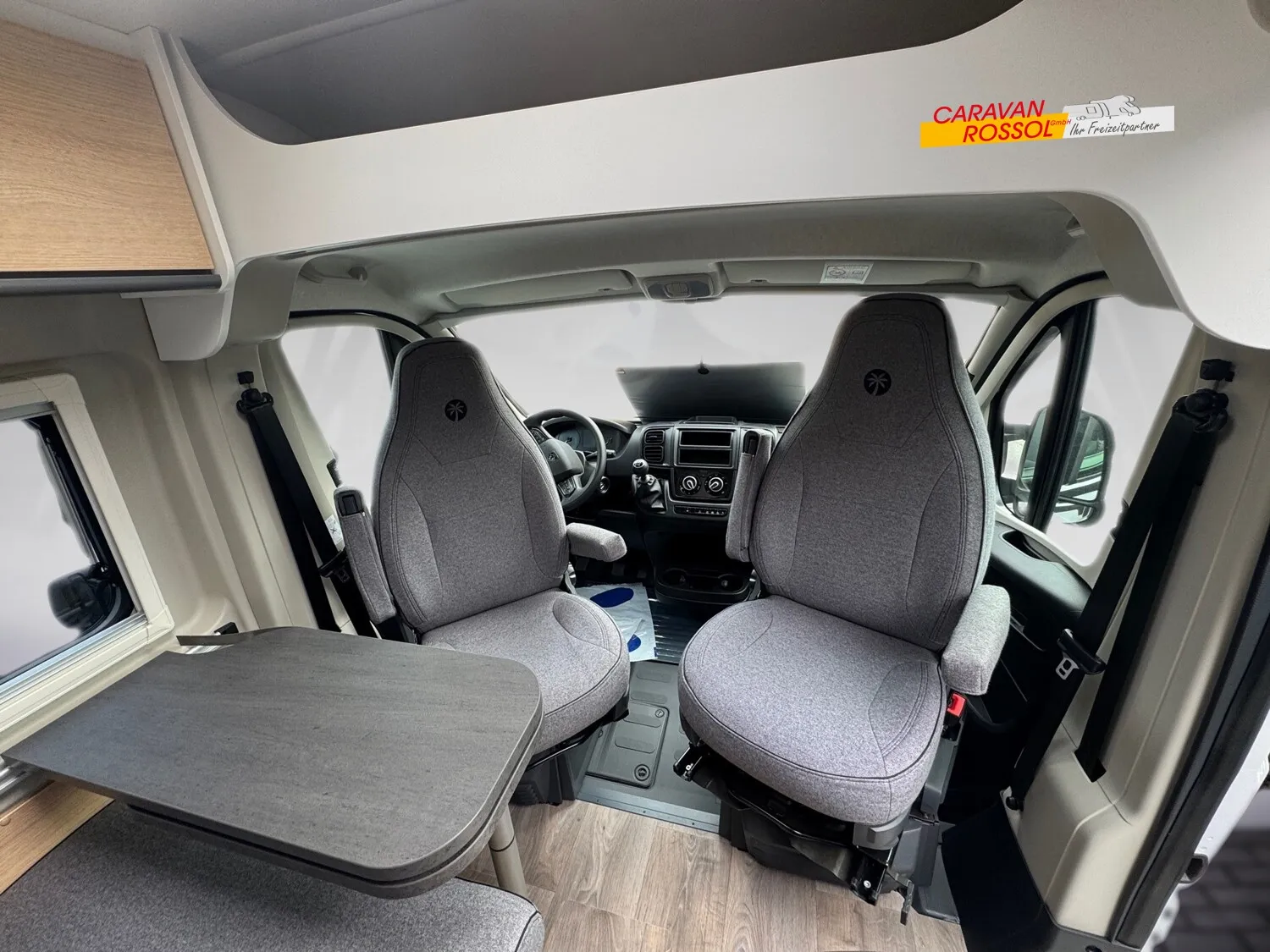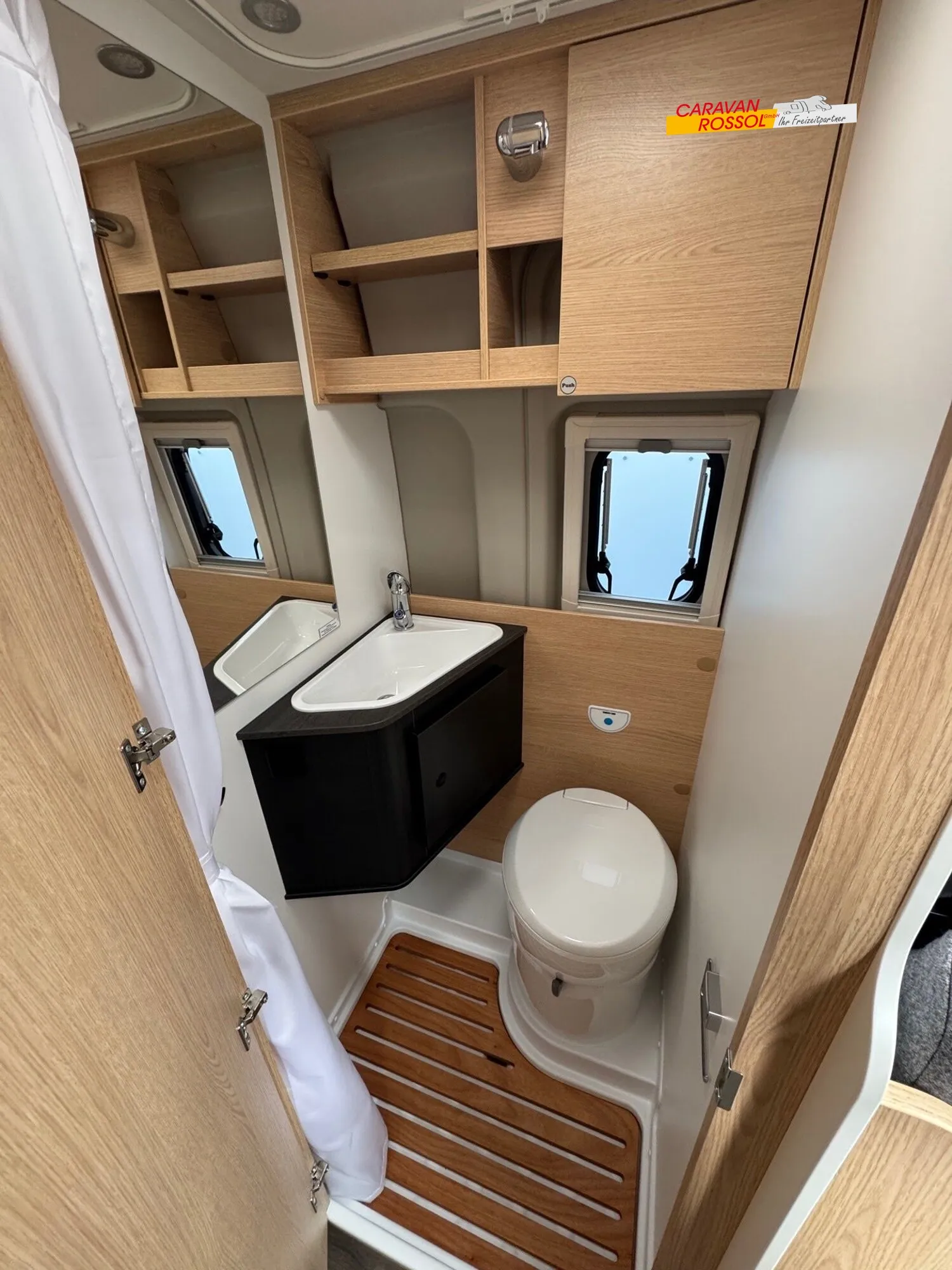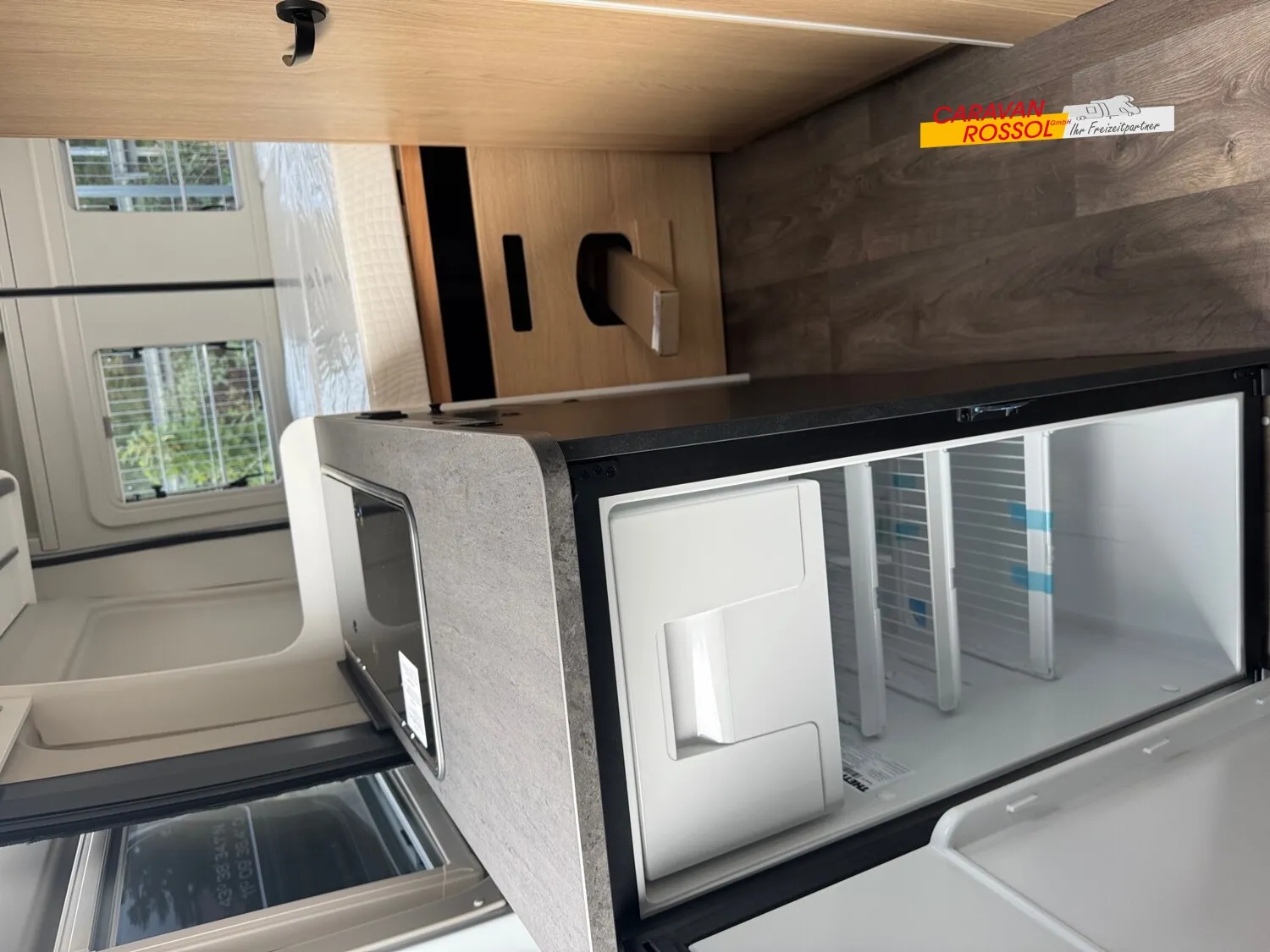 - Basic Paket (Panoramadachhaube 70 x 50 cm, Duschausstattung, Fenster im Bad, Kleiderstange in der Nasszelle, Breite Einstiegsstufe, Drehplatte für Tischerweiterung an der Sitzgruppe)