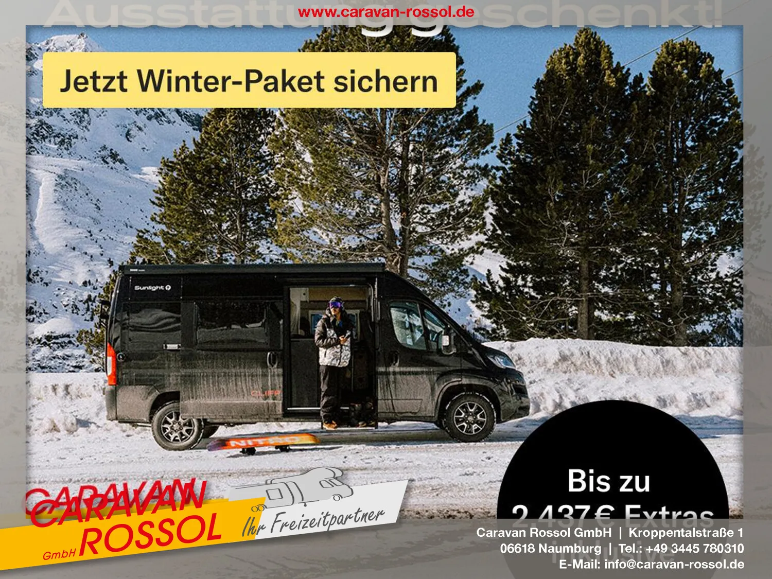- Aktionsprämie "Winterpaket" (Das Winterpaket für deinen SUNLIGHT CLIFF Peugeot umfasst die Truma Combi 6 E, einen Abwassertank isoliert und beheizt sowie das Safety Paket und hat einen Wert von 2.387. Dieses Angebot ist gültig bei allen offiziellen SUNLIGHT Handelspartnern für Neufahrzeuge, die im Zeitraum vom 01.11.2025 bis 31.12.2025 bestellt werden. Die Aktionsprämie wird nur bei Bestellung der oben aufgeführten Winterausstattung gewährt und ist nicht gültig für bereits bestehende Kaufverträge. Kaufverträge innerhalb der Aktion sind vom Widerruf ausgeschlossen. SUNLIGHT behält sich das Recht vor, Aktionsbedingungen jederzeit zu ändern oder die Aktion vorzeitig zu beenden.)