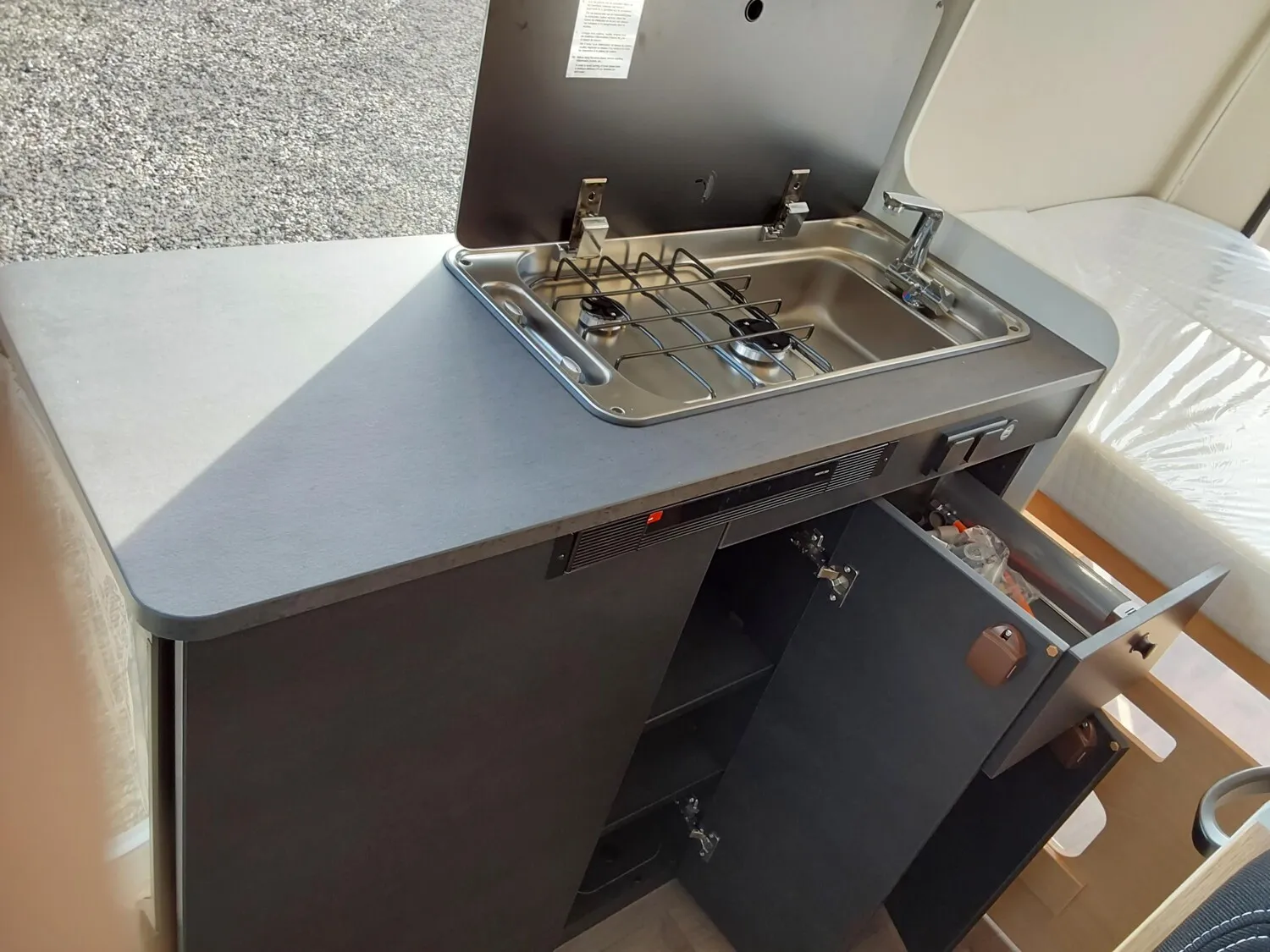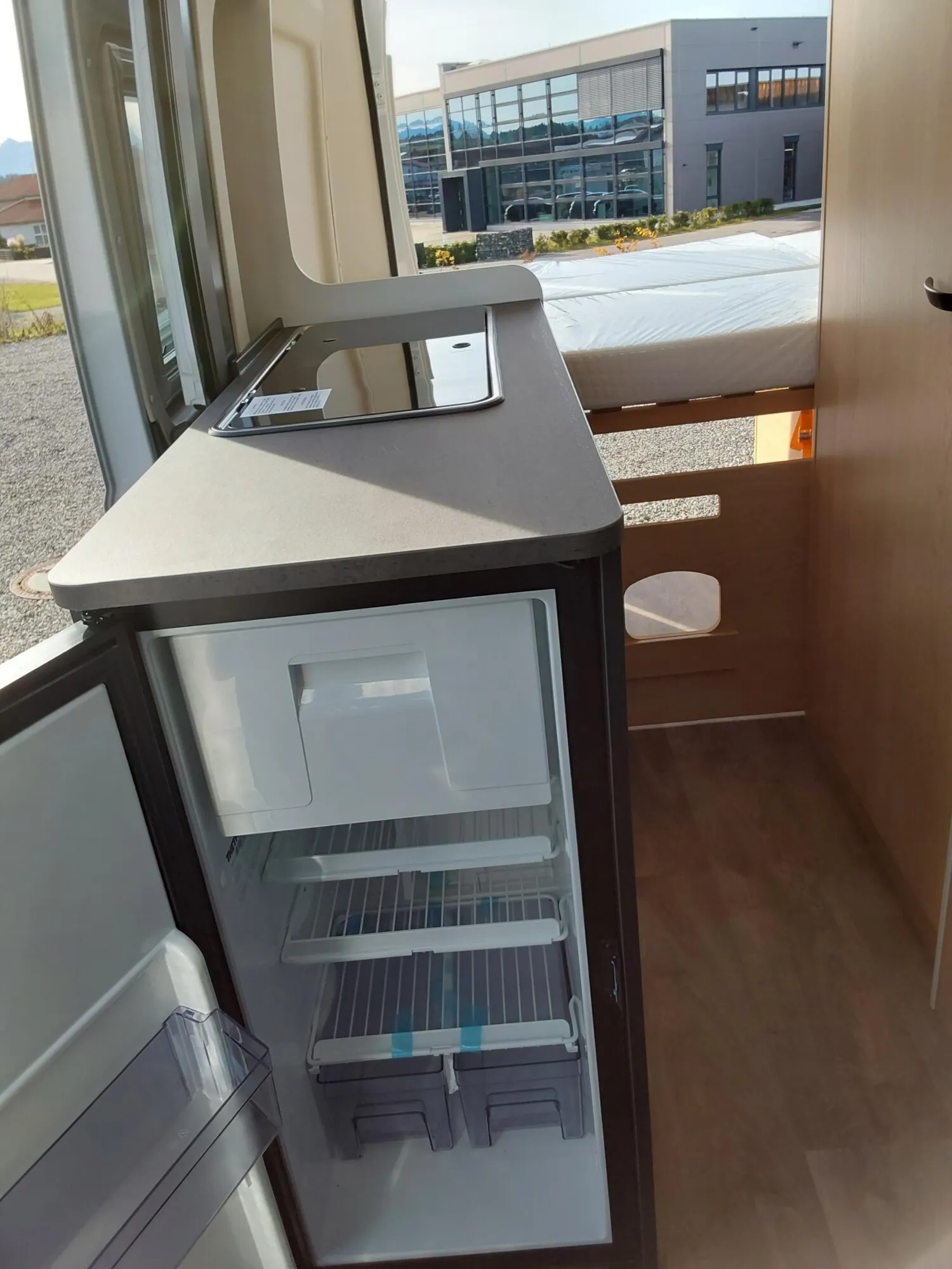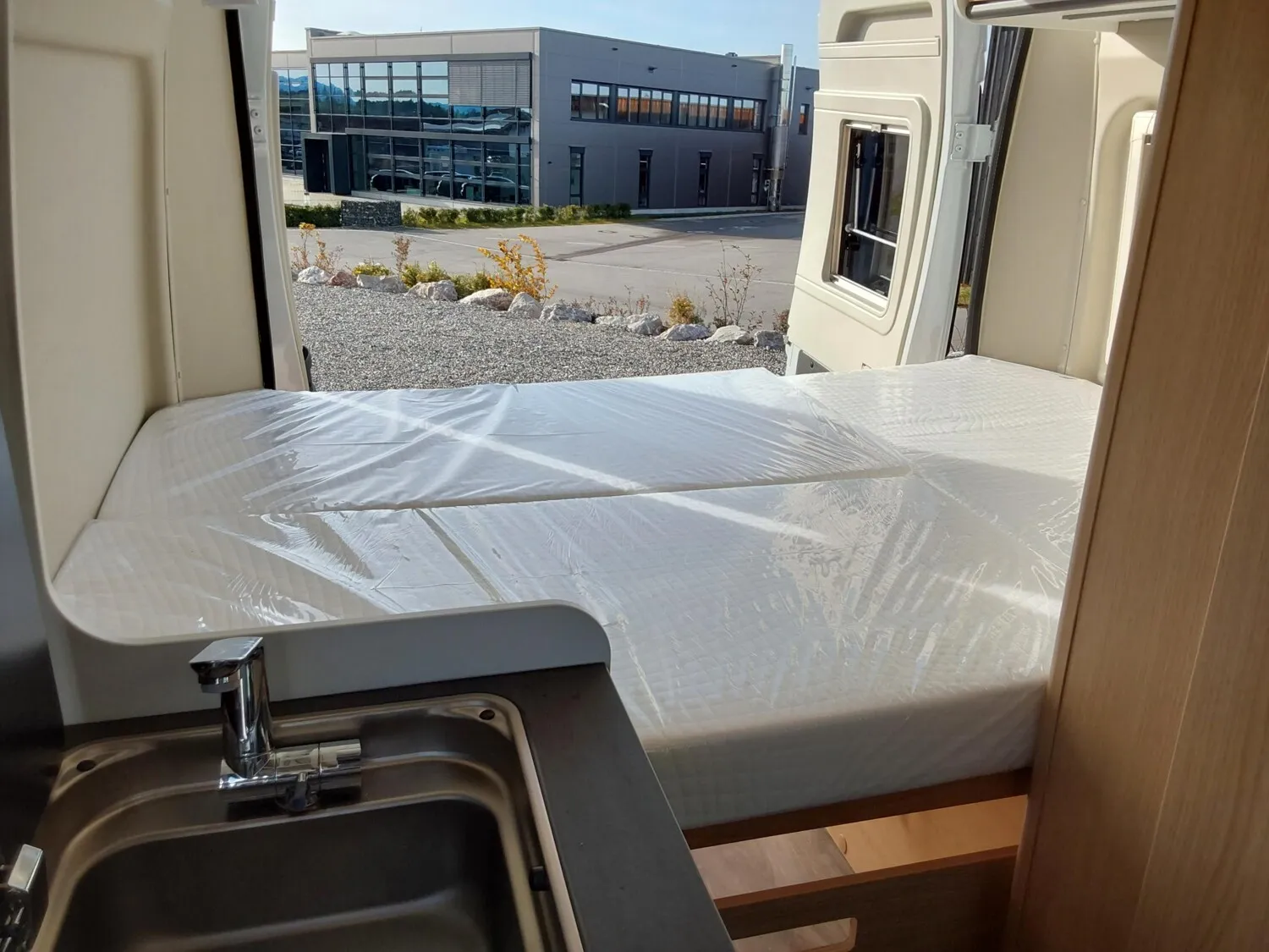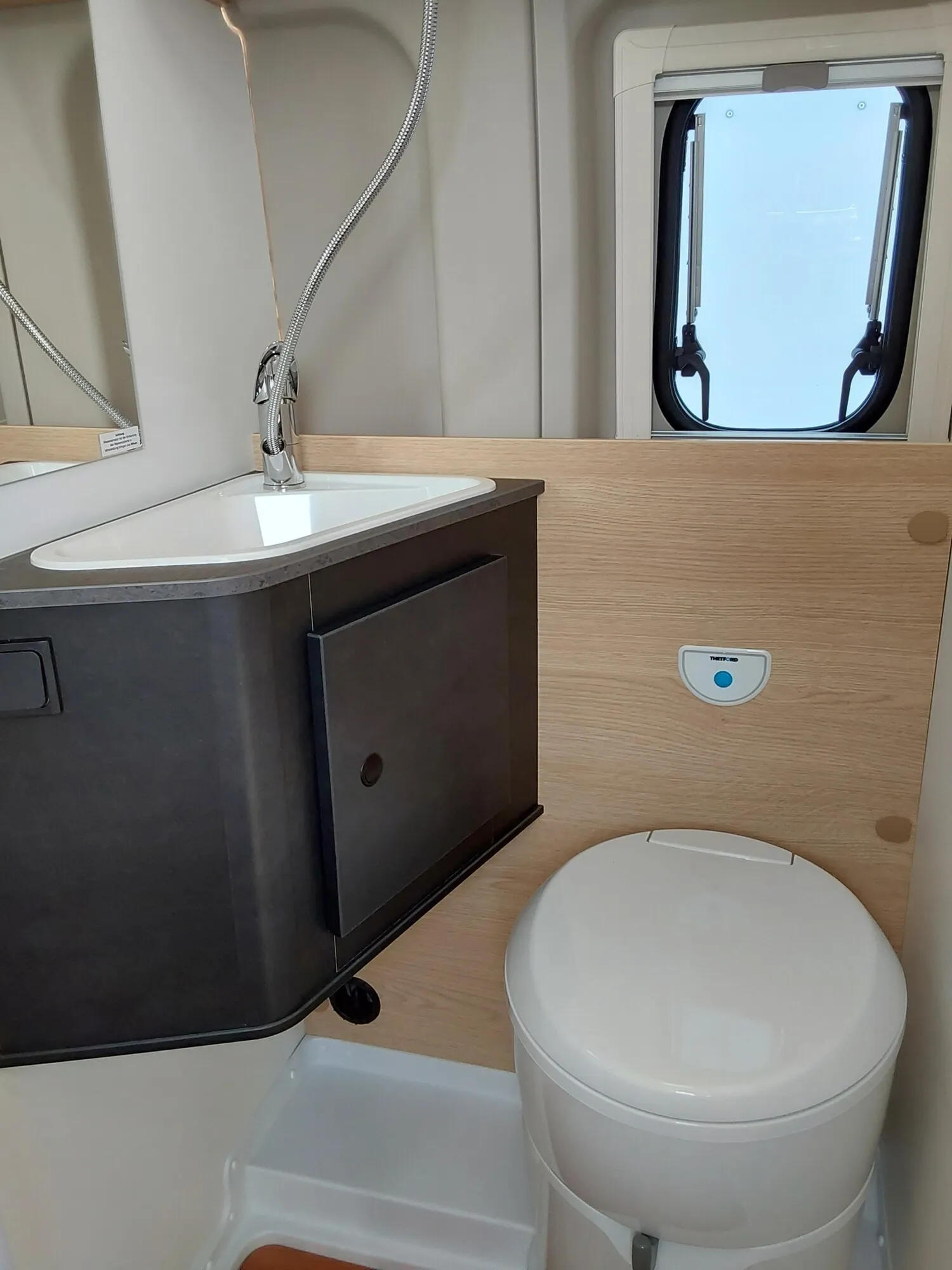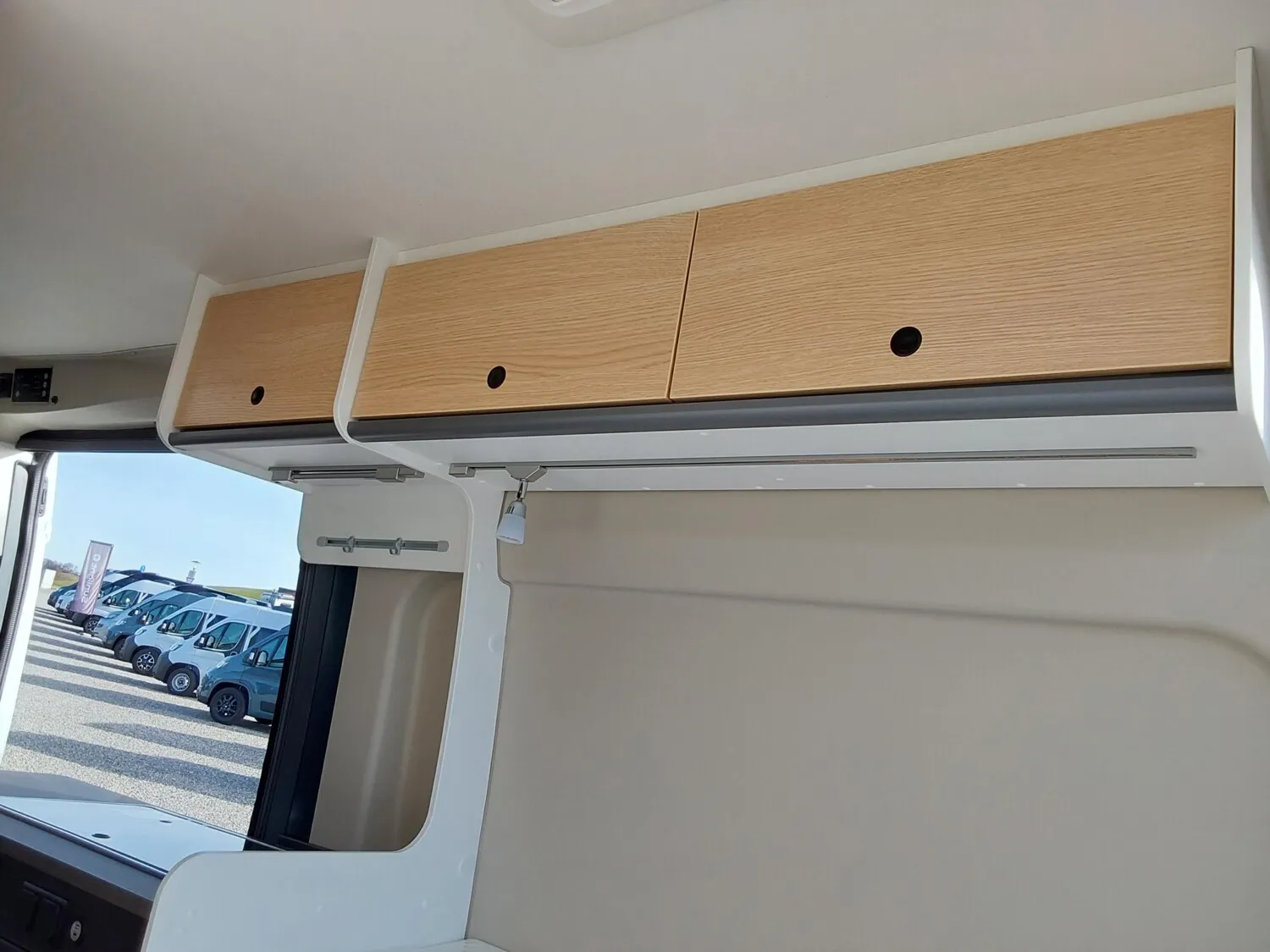- Basic Paket (Panoramadachhaube 70 x 50 cm, Duschausstattung, Fenster im Bad, Kleiderstange in der Nasszelle, Breite Einstiegsstufe, Drehplatte für Tischerweiterung an der Sitzgruppe)