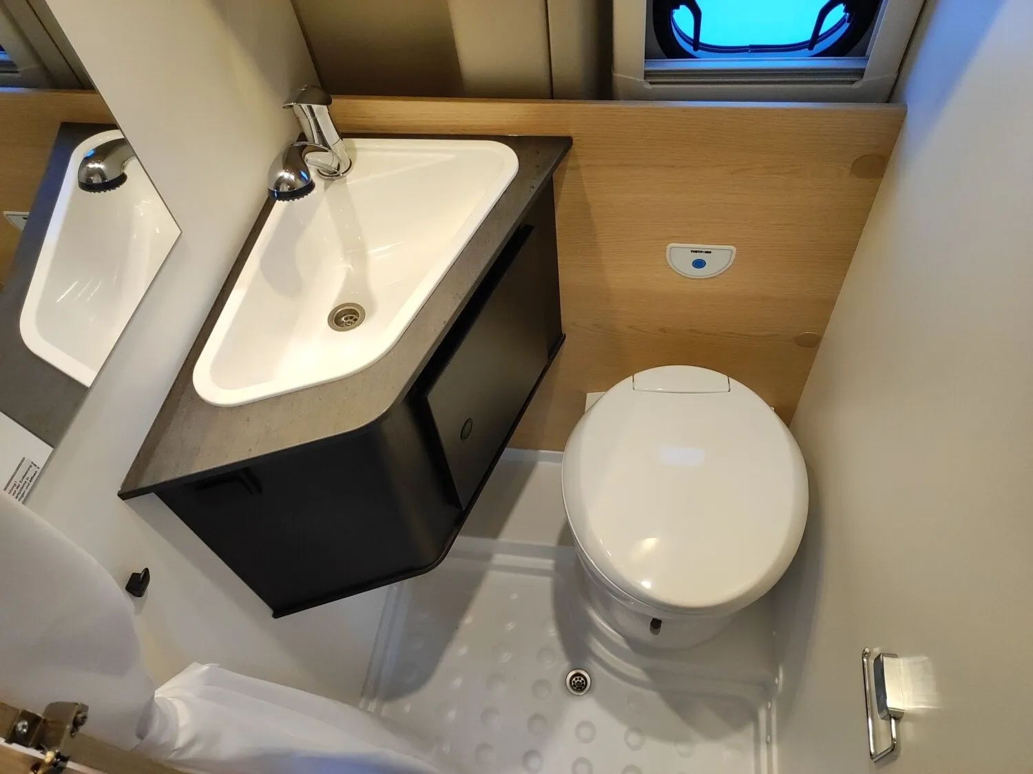 - Basic Paket RT bestehend aus: Duschausstattung, Kleiderbügel um Dachhaube, Elektrische Trittstufe, Fenster im Bad, Tischplattenverlängerung