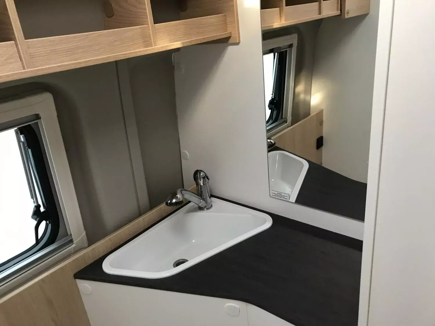 - Basic Paket (Panoramadachhaube 70 x 50 cm, Duschausstattung, Fenster im Bad, Kleiderstange in der Nasszelle, Breite Einstiegsstufe, Drehplatte für Tischerweiterung an der Sitzgruppe)