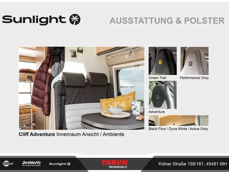 - Aktionsprämie "Keep on Rolling" (Der Aktionszeitraum der "Keep on Rolling" Aktion erstreckt sich auf abgeschlossene Kaufverträge vom 01.04.2026 ,bis einschließlich 31.05.2026. Die Aktion ist gültig bei allen teilnehmenden Handelspartnern von SUNLIGHT und gilt ausschließlich für den Kauf von Neufahrzeugen. Der Aktionswert variiert je nach Baureihe und beinhaltet die Mehrwertsteuer. Sunlight behält sich das Recht vor, Aktionsbedingungen jederzeit zu ändern sowie die Aktion vorzeitig zu beenden. Kaufverträge innerhalb der Aktion sind vom Widerruf ausgeschlossen. )