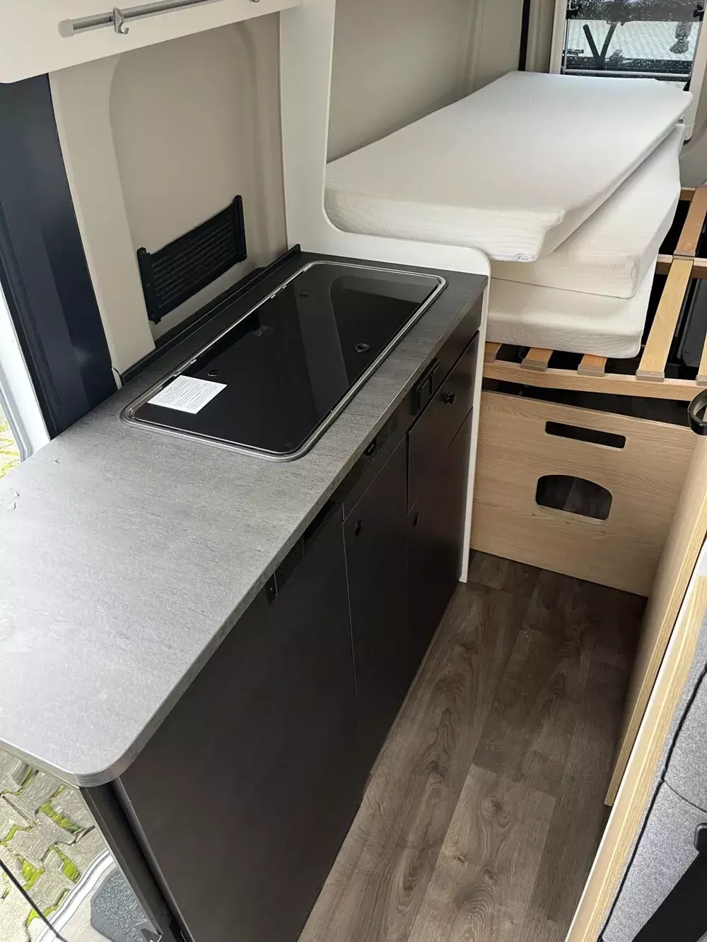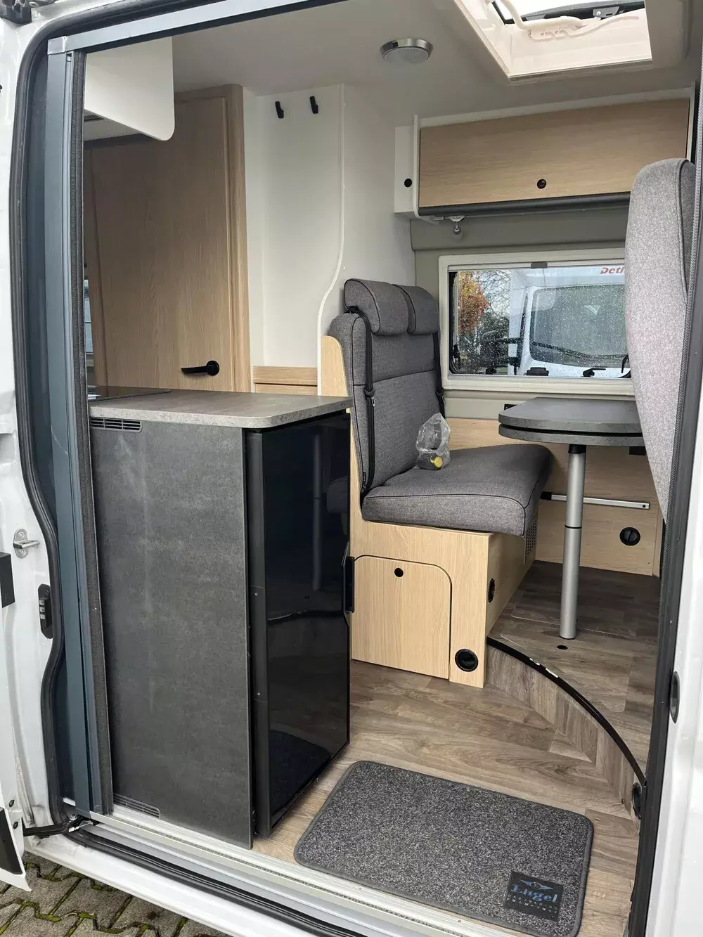 - Basic Paket: Dachhaube Midi-Heki 700x500 über Sitzgruppe, Kabelvorbereitung Rückfahrkamera, Duschausstattung, Kleiderbügel um Dachhaube, Trittstufe elektr., Fenster im Bad, Tischplattenverlängerung