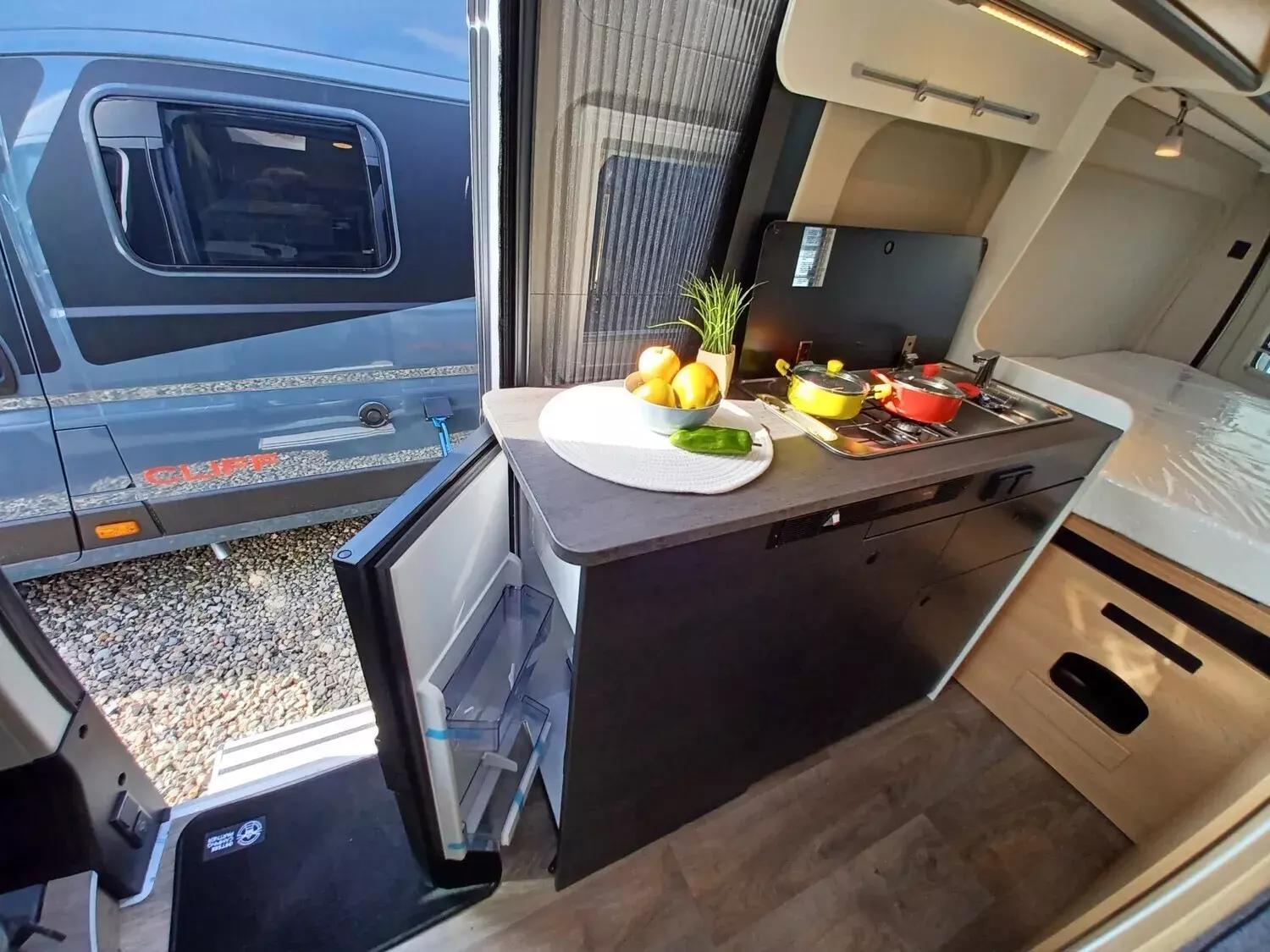 - IC-Line 2026: Cliff 600 (Peugeot Boxer 3.500 kg | 2.2 BlueHDi | 103 kW | 140 PS Euro 6 | 8-Gang-Automatikgetriebe, Dieseltank 90 l, Artense grau metallic, Markise 3,75 m (schwarz), Rahmenfenster, IC-Beklebung, Faltverdunkelung, Kabelvorbereitung für Rückfahrkamera, Performance Grey, Basic Paket (Panoramadachhaube 70x50 cm, Duschausstattung (Brausekopf ausziehbar, Brausehalter, Duschvorhang, Führungsschiene), Fenster im Bad, Kleiderstange Nasszelle, breite Einstiegstufe, Tischerweiterung an Sitzgruppe), Paket Alufelgen Bicolor (Alufelgen 16 Zoll Allwetterbereifung, Lederlenkrad, Silber-Applikationen (Techno-Trim)), Multimedia Paket (Zenec Z-E3771, Rückfahrkamera))