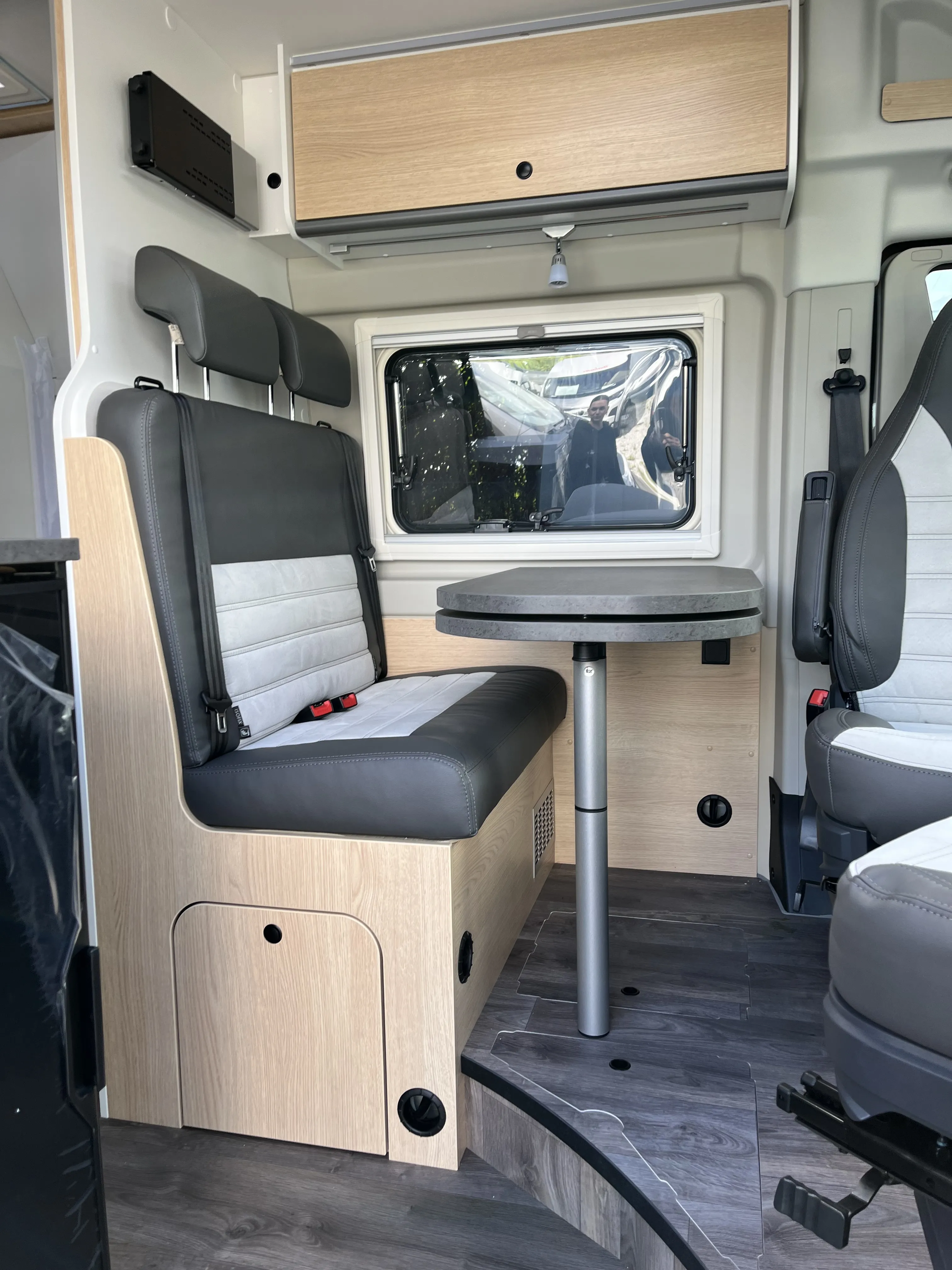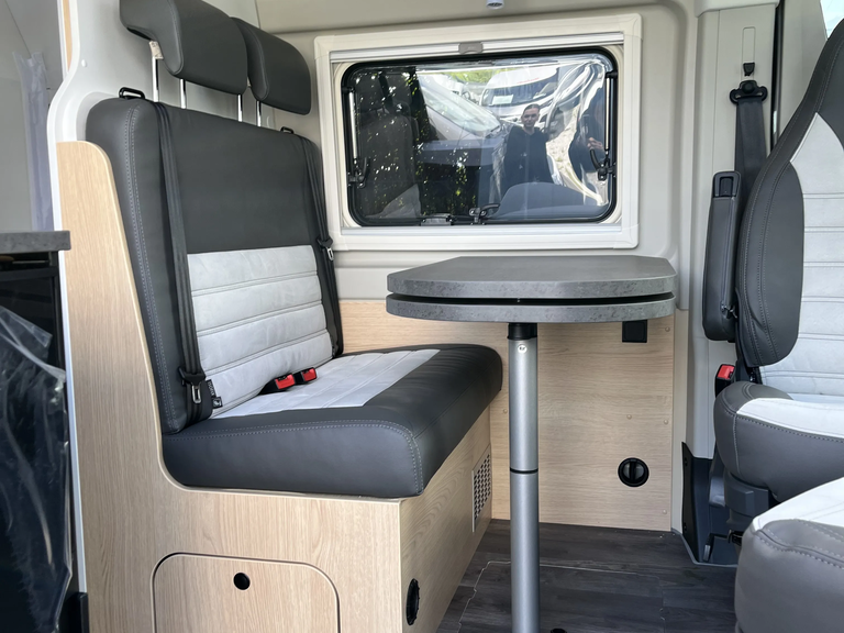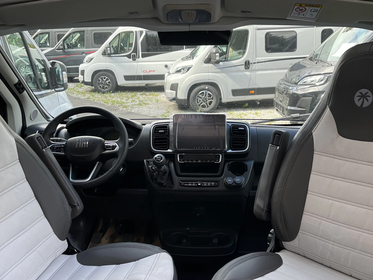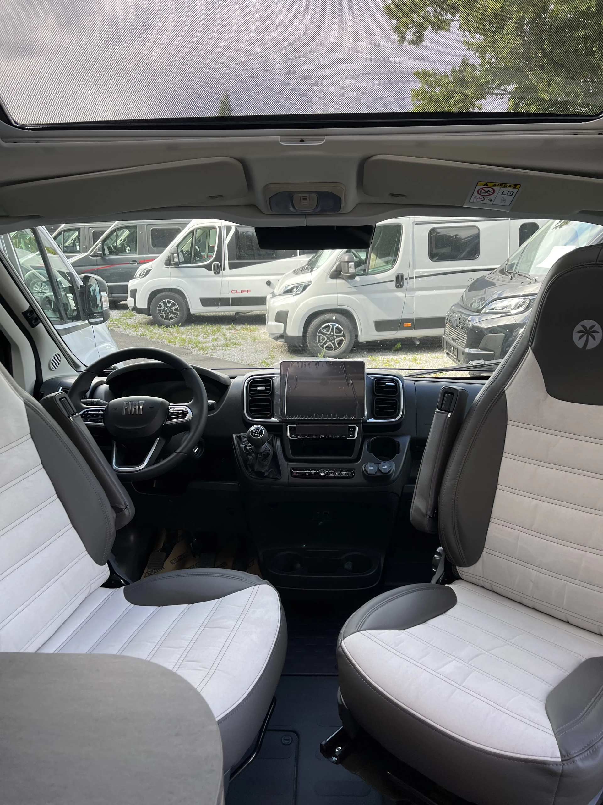 - Fahrer- und Beifahrersitz in Wohnraumstoff mit Doppelarmlehnen (Captain Chair)