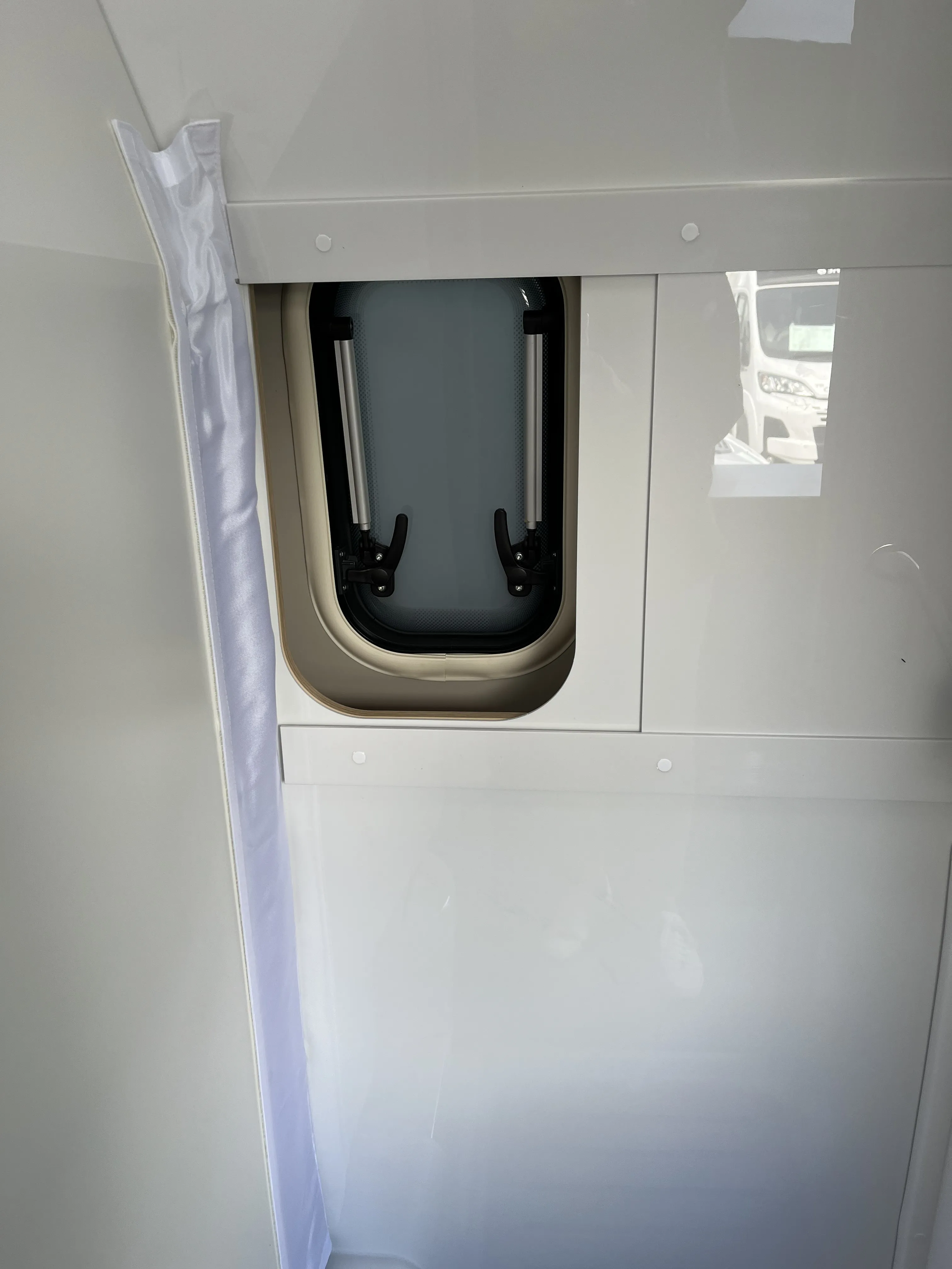 - Ausstellfenster in Fahrtrichtung hinten links (inkl. Verdunklungsrollo und Fliegenschutz)