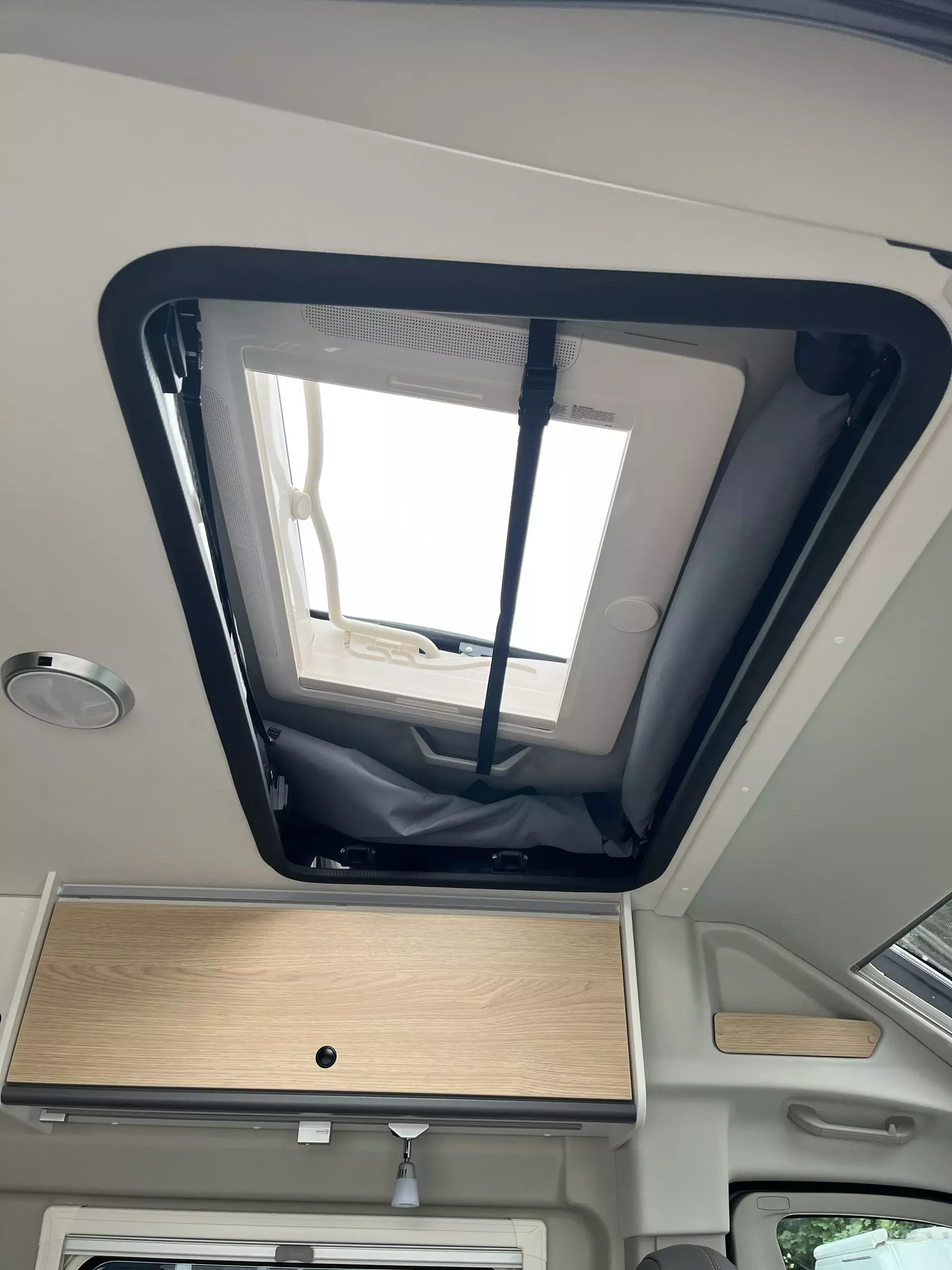 - Ausstellfenster in Fahrtrichtung hinten links (inkl. Verdunklungsrollo und Fliegenschutz)