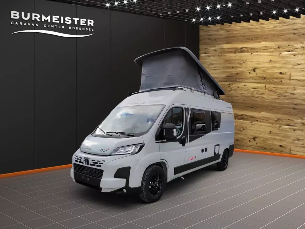 - Adventure Ausstattung 601 (Fiat Ducato 3.500 kg | 2.2 | 103 kW | 140 PS Euro 6 | 6-Gang-Schaltgetriebe, Fiat Weiß, Adventure Beklebung, Wohnwelt Adventure, Markise (schwarz), Panoramadachhaube 70 x 50 cm, Duschausstattung, Fenster im Bad, Kleiderstange in der Nasszelle, Breite Einstiegsstufe, Drehplatte für Tischerweiterung an der Sitzgruppe, Stoßfänger lackiert, Skid Plate Schwarz, Nebelscheinwerfer, Lenkrad & Schaltknauf in Lederausführung, Luftauslässe mit Applikationen Silber (Techno-Trim), 16" Alufelgen Bi-Color)