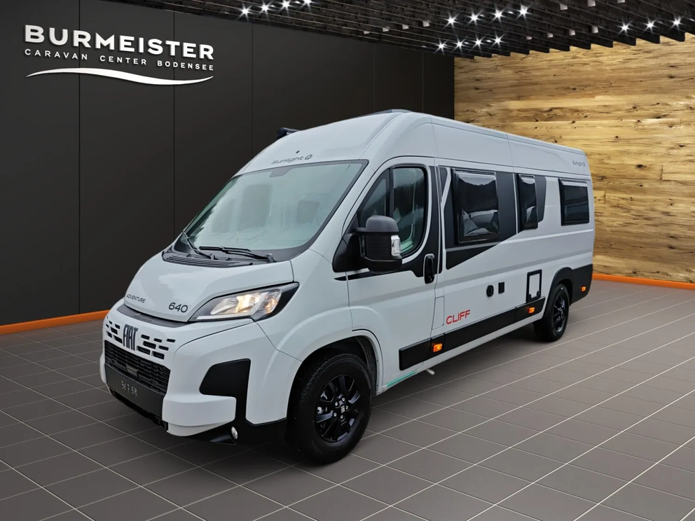- Adventure Ausstattung 640 (Fiat Ducato 3.500 kg | 2.2 | 103 kW | 140 PS Euro 6 | 6-Gang-Schaltgetriebe, Fiat Weiß, Adventure Beklebung, Wohnwelt Adventure, Markise (schwarz), Panoramadachhaube 70 x 50 cm, Duschausstattung, Fenster im Bad, Kleiderstange in der Nasszelle, Breite Einstiegsstufe, Drehplatte für Tischerweiterung an der Sitzgruppe, Stoßfänger lackiert, Skid Plate Schwarz, Nebelscheinwerfer, Lenkrad & Schaltknauf in Lederausführung, Luftauslässe mit Applikationen Silber (Techno-Trim), 16" Alufelgen Bi-Color)