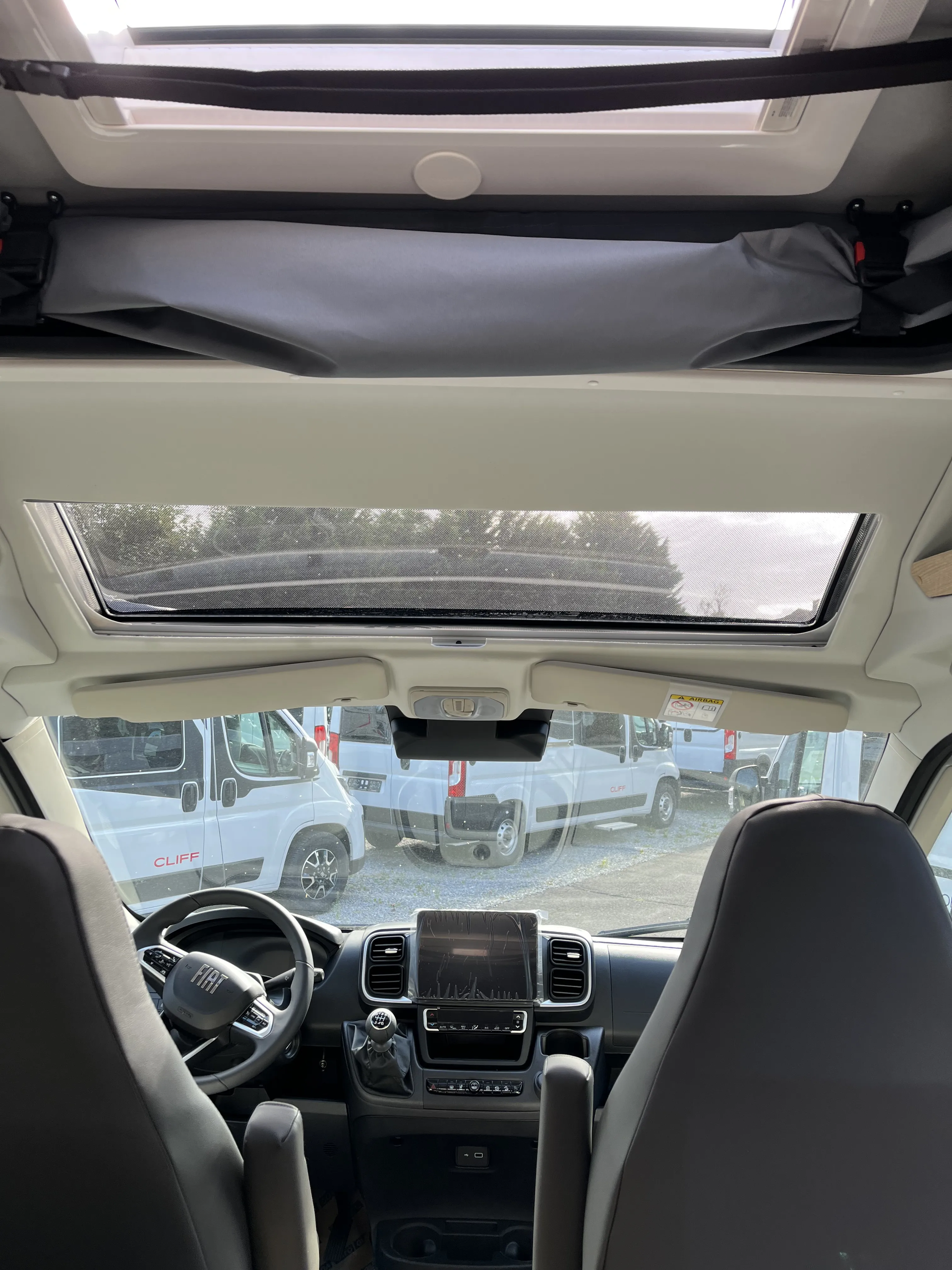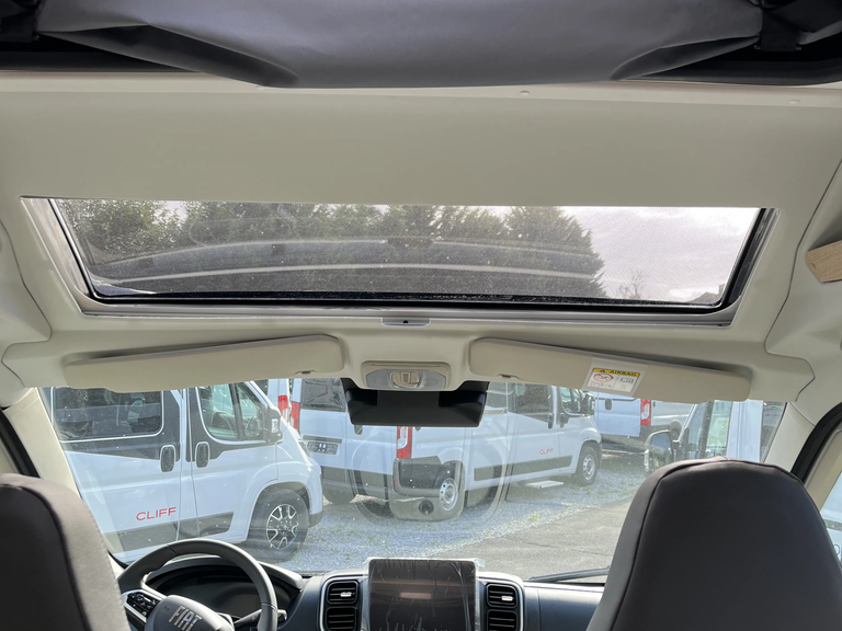 - Cliff X Ausstattung 640 (Fiat Ducato 3.500 kg | 2.2 Multijet | 103 kW | 140 PS Euro 6 | 6-Gang-Schaltgetriebe, Fiat Weiß, Adventure Beklebung, Wohnwelt Adventure, LED Beleuchtung Dachschrank, Dachstauschrank Heck umlaufend, Skyview, Rahmenfenster, Variobad, Markise (schwarz), Panoramadachhaube 70 x 50 cm, Duschausstattung, Fenster im Bad, Kleiderstange in der Nasszelle, Breite Einstiegsstufe, Drehplatte für Tischerweiterung an der Sitzgruppe, Stoßfänger lackiert, Skid Plate Schwarz, Nebelscheinwerfer, Lenkrad & Schaltknauf in Lederausführung, Luftauslässe mit Applikationen Silber (Techno-Trim), 16" Alufelgen Bi-Color)
