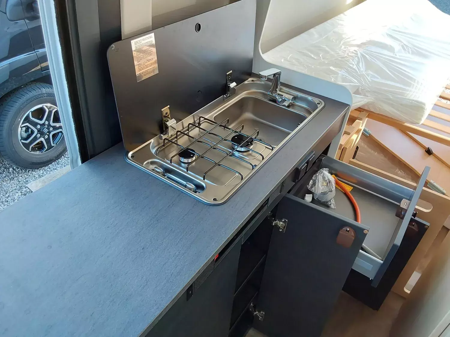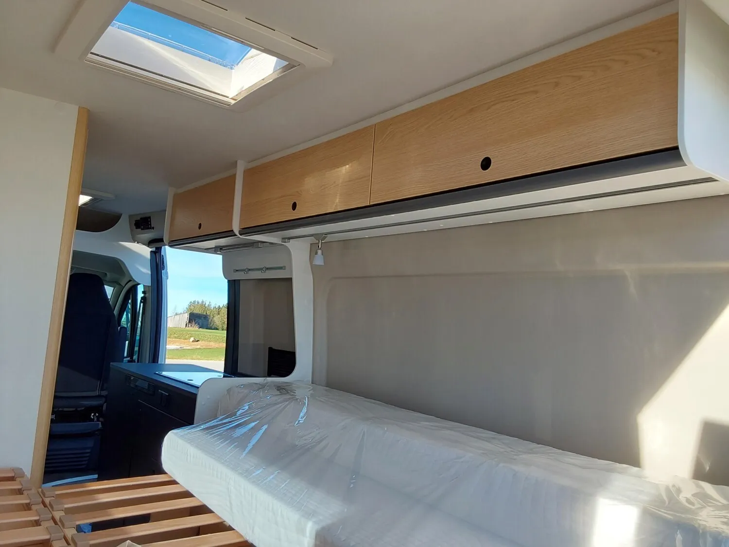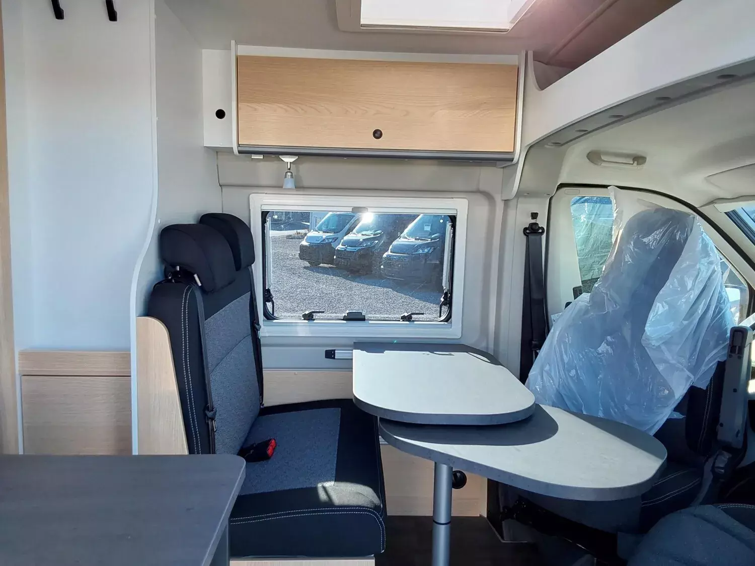 - Basic Paket (Panoramadachhaube 70 x 50 cm, Duschausstattung, Fenster im Bad, Kleiderstange in der Nasszelle, Breite Einstiegsstufe, Drehplatte für Tischerweiterung an der Sitzgruppe)