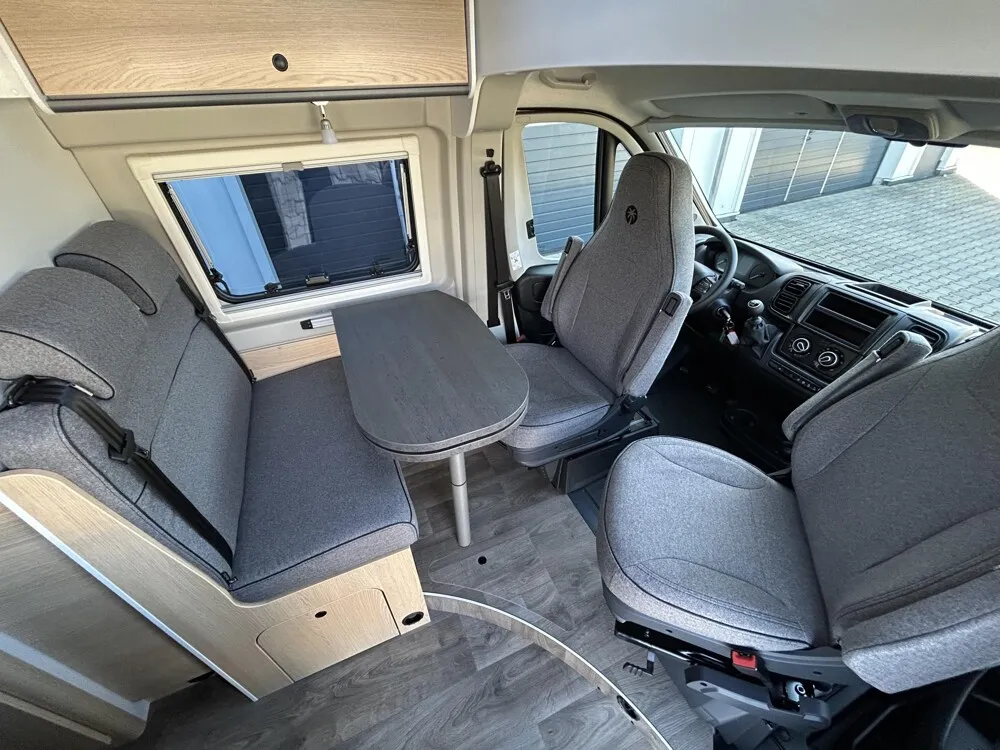 - Fahrer-/Beifahrersitz in Wohnraumstoff mit Doppelarmlehnen (Captain Chair)