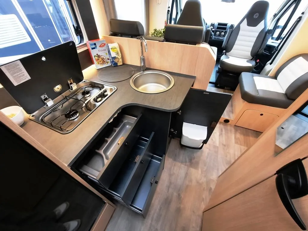 Chassisfarbe Weiß, Stoßfänger lackiert, 16“ Alufelgen, Ganzjahresreifen, Wohnwelt Adventure, Rahmenfenster, 2. Außenstauraumklappe, großer Kühlschrank mit separatem Frosterfach, Bettenumbau EB zu DB, Markise, Fahrradträger, Tempomat, Eco-Pack Start & Stop Funktion inkl. Booster, Klimaanlage Fahrerhaus manuell, Fahrer- und Beifahrerairbag, ABS, ESP, ESC inkl. ASR und Hillholder, elektrische Fensterheber und Zentralverriegelung im Fahrerhaus, Außenspiegel elektrisch und beheizt, Dieseltank 60L, Getränkehalter in der Mittelkonsole, Fahrer- und Beifahrersitz drehbar, Radiovorbereitung mit Lautsprechern, 7-Jahre-Dichtigkeitsgarantie, Ausstellfenster doppeltverglast mit Verdunklungsrollo und Fliegenschutz, elektrische Trittstufe, Zuladung Heckgarage bis zu 150kg, Isofix für 2 Plätze, LED-Beleuchtung integriert unter den Dachschränken, LED-Außenleuchte, Combi 6 Gasheizung, 2-Flammen-Kocher und vielem mehr*