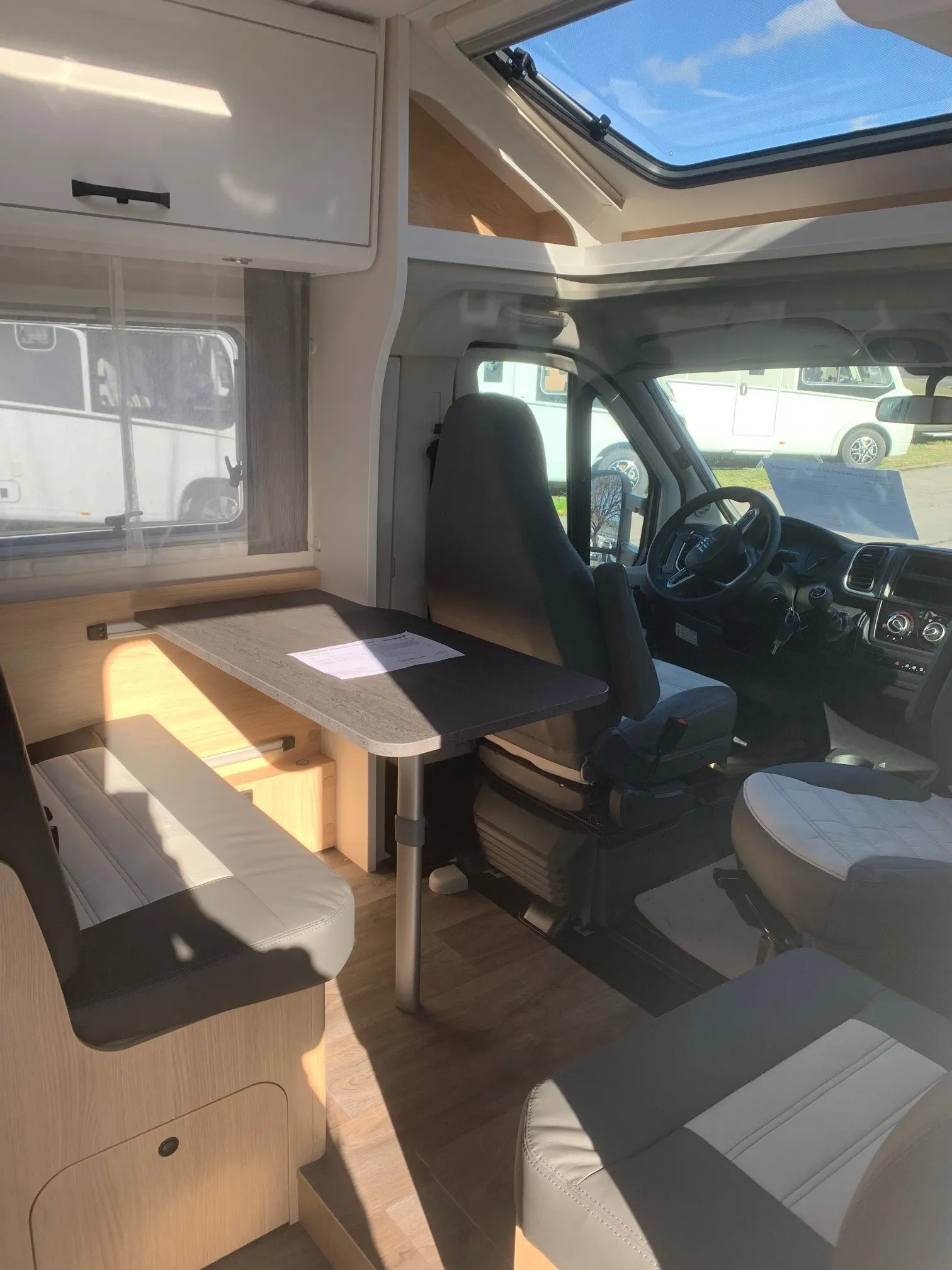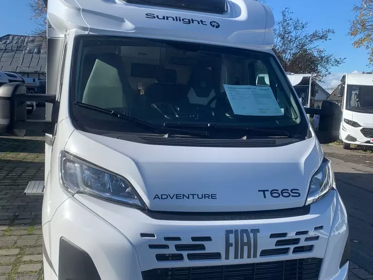 - Adventure Ausstattung 66S (Fiat Ducato 3.500 kg | 2.2 | 103 kW | 140 PS Euro 6 | 6-Gang-Schaltgetriebe, Fiat Weiß, Adventure Beklebung, Wohnwelt Adventure, Design Applikation Heck, Fenster in Fronthaube, Rahmenfenster, 2. Außenstauraumklappe (Größe modellabhängig), Kühlschrank 137 l mit Gefrierfach 15 l, Bettenumbau Einzelbett zu Doppelbett, Paket One Black (Markise, Fahrradträger 3-fach), Bridge Light, Komfort Eingangstür mit Fenster, Fliegengittertür (einteilig), Panoramadachhaube 70 x 50 cm, Klarglasdachhaube 40 x 40 cm, Stoßfänger lackiert, Skid Plate Schwarz, Nebelscheinwerfer, Lenkrad & Schaltknauf in Lederausführung, Luftauslässe mit Applikationen Silber (Techno-Trim), 16" Alufelgen Bi-Color)