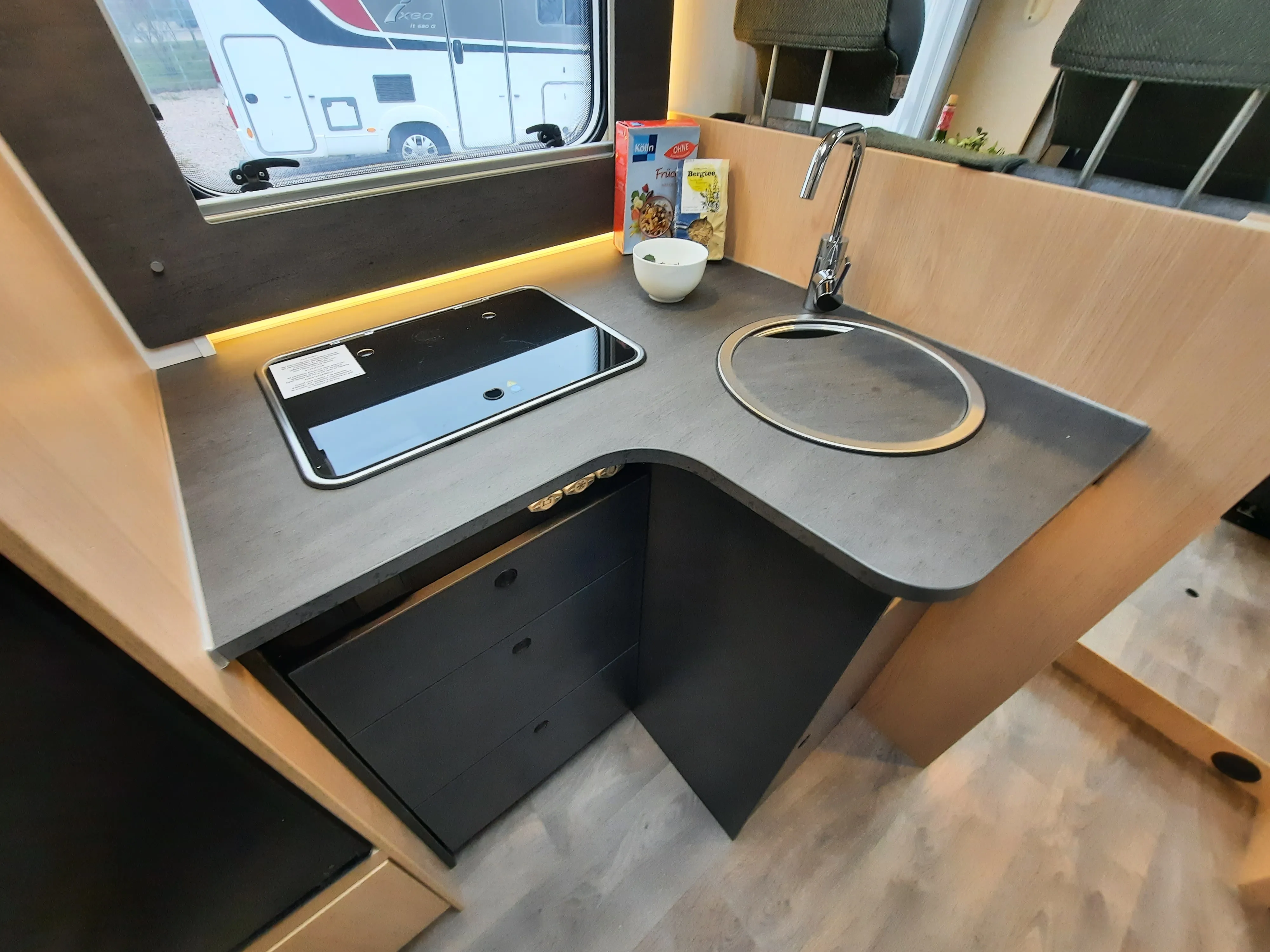 Start & Stop Funktion inkl. Ladebooster, Dieseltank 60l, Klimaanlage Fahrerhaus manuell, Tempomat, Stahlfelgen 15“, Tagfahrlicht, Fahrer- & Beifahrerairbag, ABS, ESC, Traction+, elektrische Fensterheber, elektrisch und beheizbare Außenspiegel, DAB Antenne integriert im Außenspiegel, Multifunktionslenkrad, Fahrer- & Beifahrersitz drehbar, 7 Jahre Dichtheitsgarantie, Dach & Heckaußenhaut aus GFK, Ausstellfenster mit Verdunklung & Fliegenschutz, elektrische Trittstufe, Isofix 2 Plätze, LED-Beleuchtung integriert unter den Dachschränken, LED-Außenleuchte, Combi 6 Gasheizung, 2-Flammen-Gaskocher mit 12V Zündung, Wassertank inkl. Boiler 122l, Abwassertank 92l, Kühl-Gefrierkombination u.v.m.*