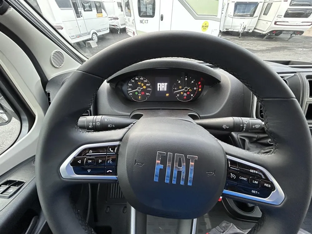 - Adventure Ausstattung 67 (Fiat Ducato 3.500 kg | 2.2 | 103 kW | 140 PS Euro 6 | 6-Gang-Schaltgetriebe, Fiat Weiß, Adventure Beklebung, Wohnwelt Adventure, Design Applikation Heck, Fenster in Fronthaube, Rahmenfenster, 2. Außenstauraumklappe (Größe modellabhängig), Großer Kühlschrank 156 l mit separatem Frosterfach 29 l, Bettenumbau Einzelbett zu Doppelbett, Paket One Black (Markise, Fahrradträger 3-fach), Bridge Light, Komfort Eingangstür mit Fenster, Fliegengittertür (einteilig), Panoramadachhaube 70 x 50 cm, Klarglasdachhaube 40 x 40 cm, Stoßfänger lackiert, Skid Plate Schwarz, Nebelscheinwerfer, Lenkrad & Schaltknauf in Lederausführung, Luftauslässe mit Applikationen Silber (Techno-Trim), 16" Alufelgen Bi-Color)