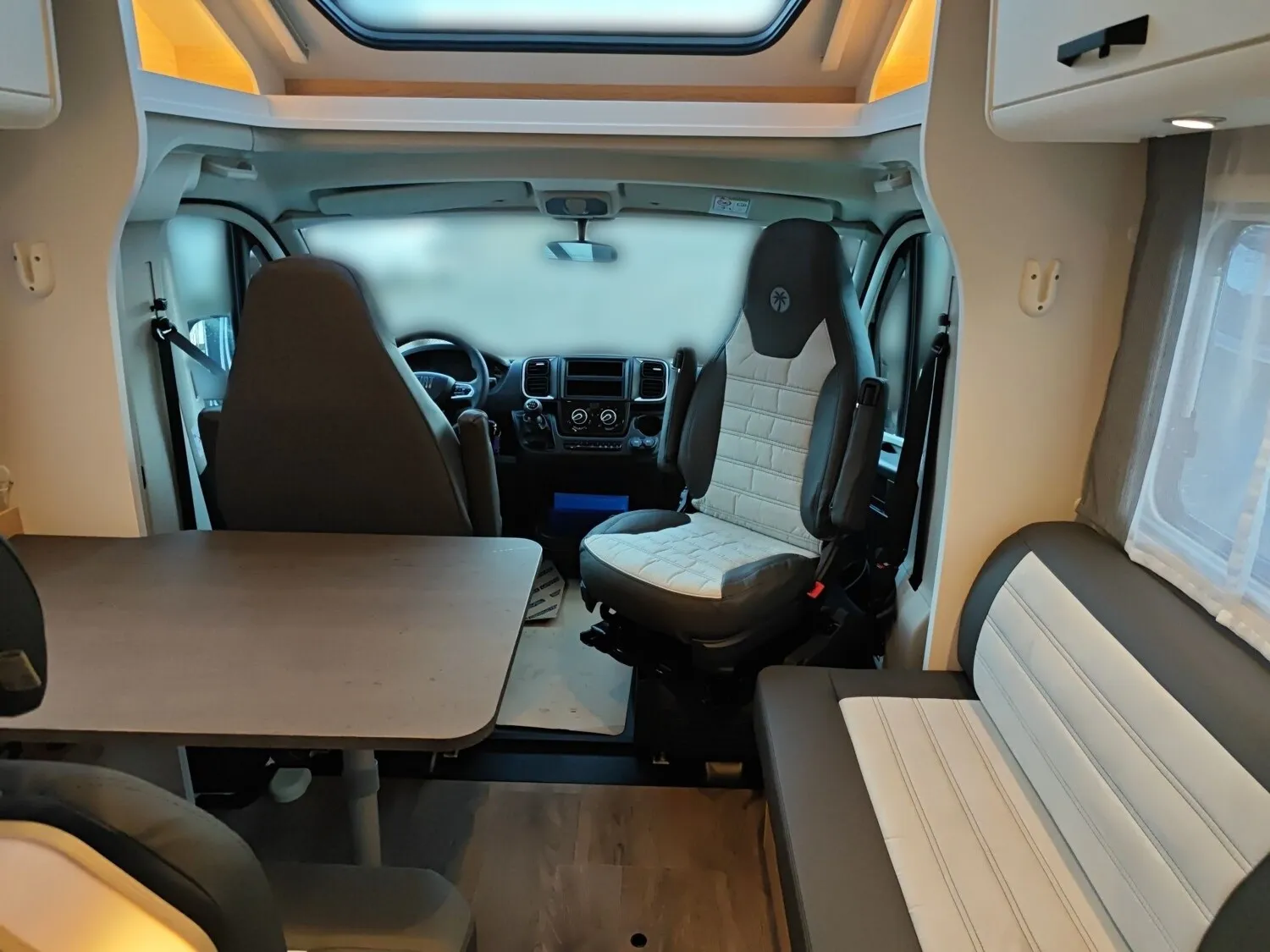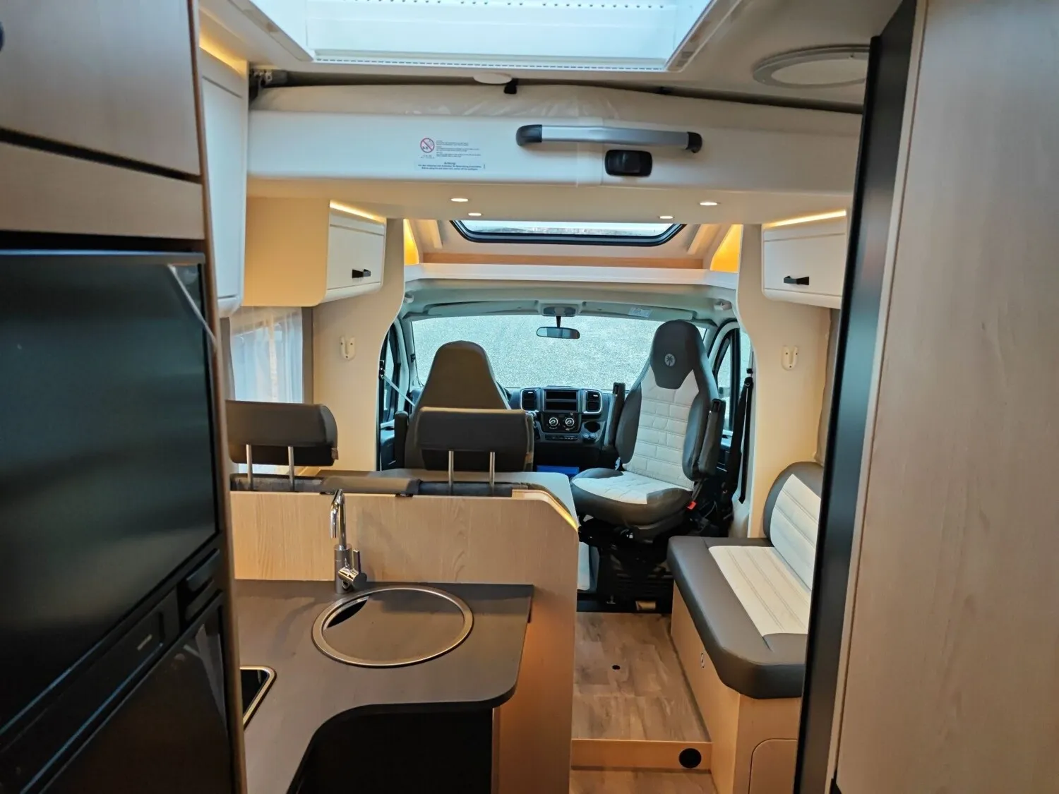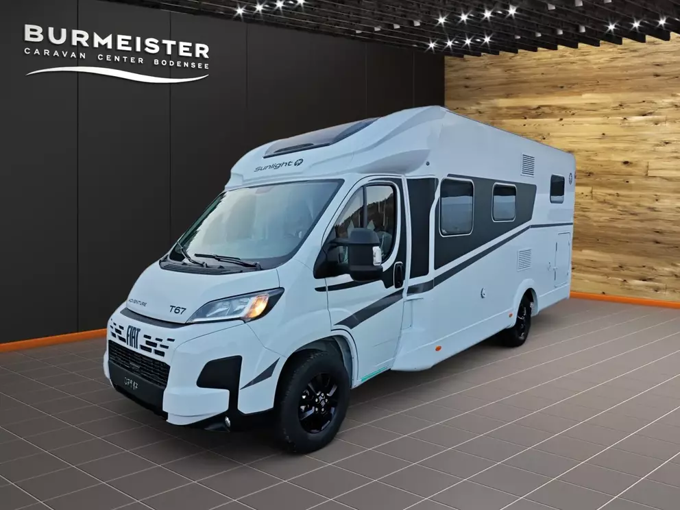 - Adventure Ausstattung 67 (Fiat Ducato 3.500 kg | 2.2 | 103 kW | 140 PS Euro 6 | 6-Gang-Schaltgetriebe, Fiat Weiß, Adventure Beklebung, Wohnwelt Adventure, Design Applikation Heck, Fenster in Fronthaube, Rahmenfenster, 2. Außenstauraumklappe (Größe modellabhängig), Großer Kühlschrank 156 l mit separatem Frosterfach 29 l, Bettenumbau Einzelbett zu Doppelbett, Paket One Black (Markise, Fahrradträger 3-fach), Bridge Light, Komfort Eingangstür mit Fenster, Fliegengittertür (einteilig), Panoramadachhaube 70 x 50 cm, Klarglasdachhaube 40 x 40 cm, Stoßfänger lackiert, Skid Plate Schwarz, Nebelscheinwerfer, Lenkrad & Schaltknauf in Lederausführung, Luftauslässe mit Applikationen Silber (Techno-Trim), 16" Alufelgen Bi-Color)