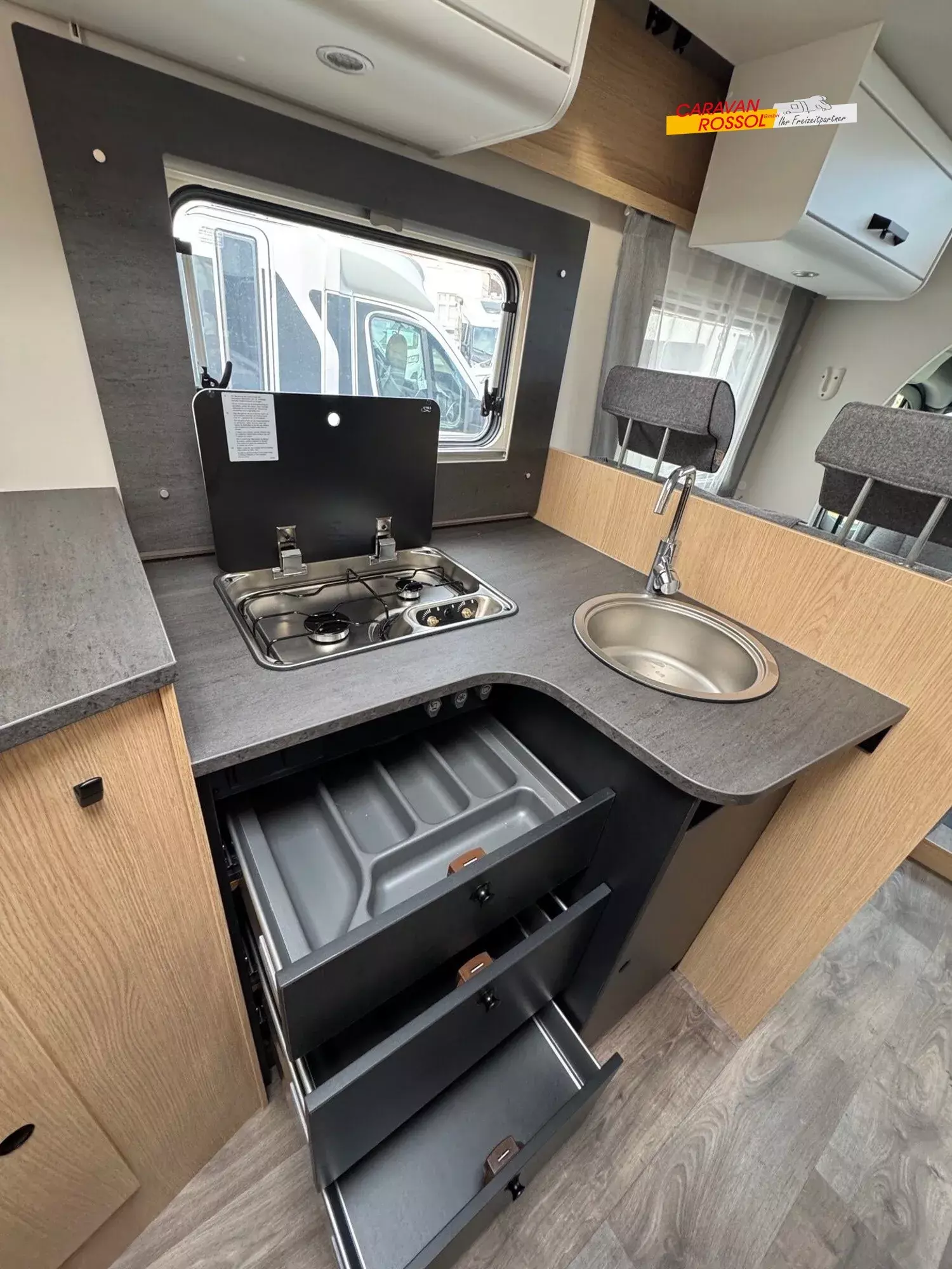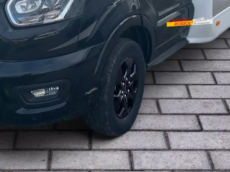 - Adventure Ausstattung 670S (Ford Transit 3.500 kg | 2,0l TDCi | 96 kW | 130 PS | Euro 6 | 6-Gang-Schaltgetriebe, Obsidian Schwarz, Seitenwand Silber Glattblech, 16" Alufelgen schwarz, Wohnwelt Adventure, Adventure Beklebung, Rahmenfenster, Fenster in Fronthaube, Design Applikation Heck, Großer Kühlschrank 156 l mit separatem Frosterfach 29 l, 2. Außenstauraumklappe (Größe modellabhängig), Bettenumbau Einzelbett zu Doppelbett, Paket One Black (Markise, Fahrradträger 3-fach), Bridge Light, Komfort Eingangstür mit Fenster, Fliegengittertür (einteilig), Panoramadachhaube 70 x 50 cm, Klarglasdachhaube 40 x 40 cm, Klimaanlage inkl. Staub- und Pollenfilter, Stoßfänger lackiert, Nebelscheinwerfer, Scheinwerfer mit statischem Abbiegelicht)