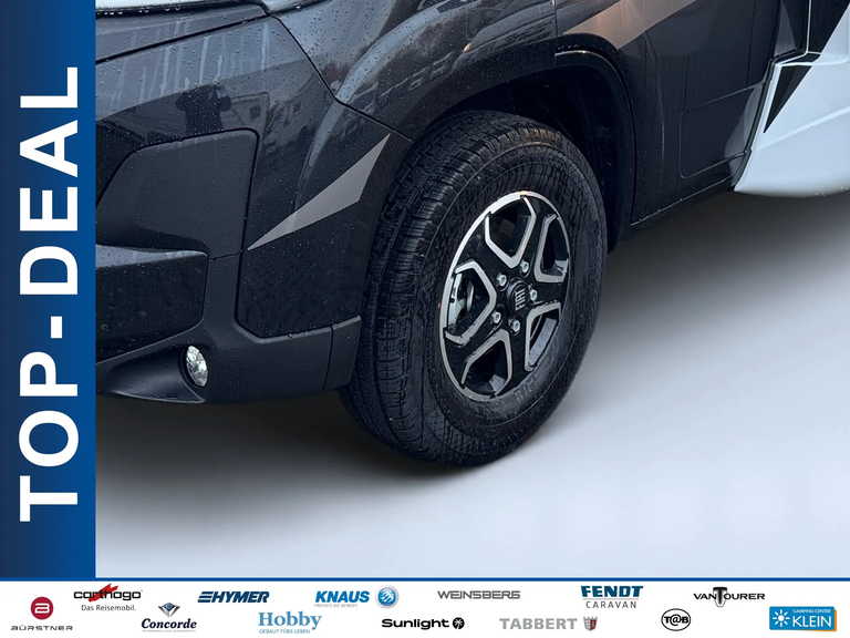 - Adventure Edition (Adventure Beklebung, Design Applikation Heck, Fenster in Fronthaube, Rahmenfenster, 2. Außenstauraumklappe (Größe modellabhängig), Großer Kühlschrank 156 l mit separatem Frosterfach 29 l, Bettenumbau Einzelbett zu Doppelbett, Paket One Black (Markise, Fahrradträger 3-fach), Basic-Paket, Paket Stoßfänger lackiert, Paket Alufelgen Bi-Color)