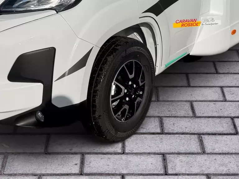 - Adventure Ausstattung 67S (Fiat Ducato 3.500 kg | 2.2 Multijet | 103 kW | 140 PS Euro 6 | 6-Gang-Schaltgetriebe, Chassisfarbe Weiß, Adventure Beklebung, Wohnwelt Adventure, Design Applikation Heck, Fenster in Fronthaube, Rahmenfenster, 2. Außenstauraumklappe (Größe modellabhängig), Großer Kühlschrank 156 l mit separatem Frosterfach 29 l, Bettenumbau Einzelbett zu Doppelbett, Paket One Black (Markise, Fahrradträger 3-fach), Bridge Light, Komfort Eingangstür mit Fenster, Fliegengittertür (einteilig), Panoramadachhaube 70 x 50 cm, Klarglasdachhaube 40 x 40 cm, Stoßfänger lackiert, Skid Plate Schwarz, Nebelscheinwerfer, Lenkrad & Schaltknauf in Lederausführung, Luftauslässe mit Applikationen Silber (Techno-Trim), 16" Alufelgen Bi-Color)