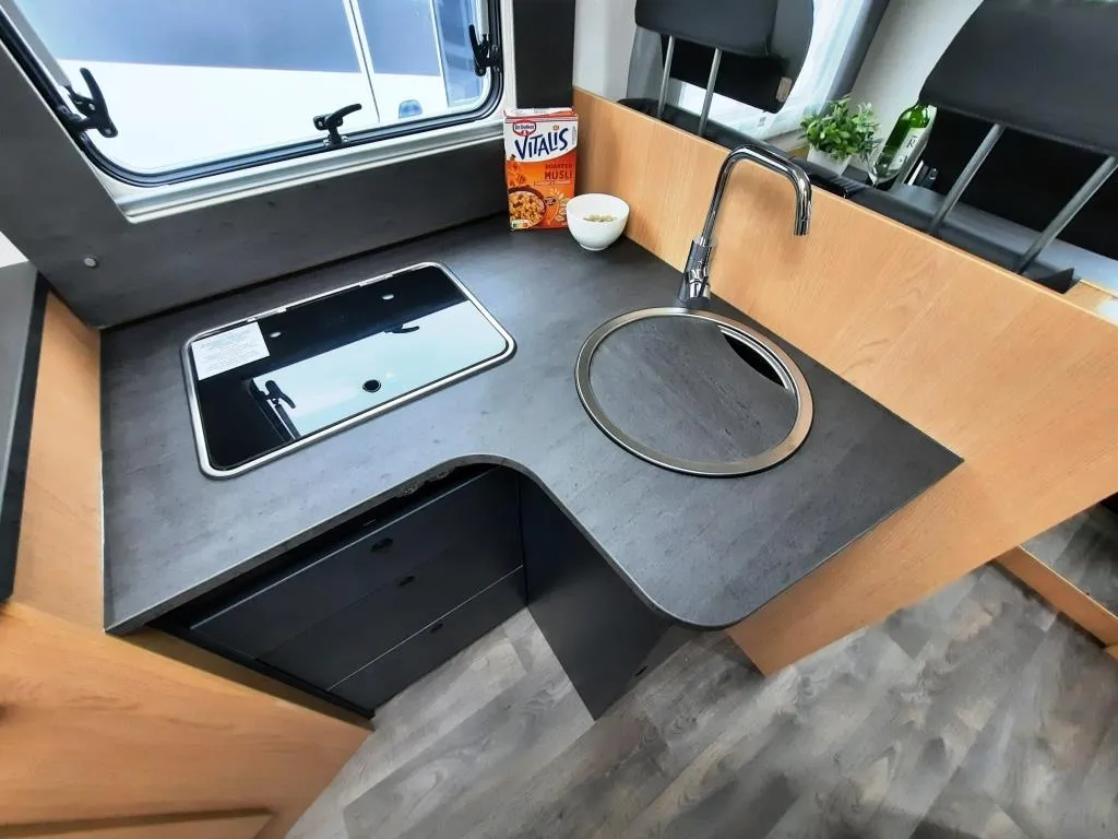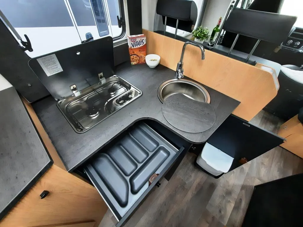 Chassisfarbe Weiß, Stoßfänger lackiert, 16“ Alufelgen, Ganzjahresreifen, Wohnwelt Adventure, Rahmenfenster, 2. Außenstauraumklappe, großer Kühlschrank mit separatem Frosterfach, Bettenumbau EB zu DB, Markise, Fahrradträger, Tempomat, Eco-Pack Start & Stop Funktion inkl. Booster, Klimaanlage Fahrerhaus manuell, Fahrer- und Beifahrerairbag, ABS, ESP, ESC inkl. ASR und Hillholder, elektrische Fensterheber und Zentralverriegelung im Fahrerhaus, Außenspiegel elektrisch und beheizt, Dieseltank 60L, Getränkehalter in der Mittelkonsole, Fahrer- und Beifahrersitz drehbar, Radiovorbereitung mit Lautsprechern, 7-Jahre-Dichtigkeitsgarantie, Ausstellfenster doppeltverglast mit Verdunklungsrollo und Fliegenschutz, elektrische Trittstufe, Zuladung Heckgarage bis zu 150kg, Isofix für 2 Plätze, LED-Beleuchtung integriert unter den Dachschränken, LED-Außenleuchte, Combi 6 Gasheizung, 2-Flammen-Kocher und vielem mehr*