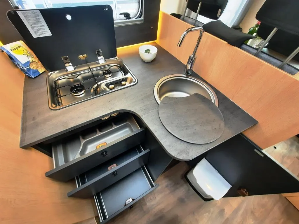 Start & Stop Funktion inkl. Ladebooster, Dieseltank 60l, Klimaanlage Fahrerhaus manuell, Tempomat, Stahlfelgen 15“, Tagfahrlicht, Fahrer- & Beifahrerairbag, ABS, ESC, Traction+, elektrische Fensterheber, elektrisch und beheizbare Außenspiegel, DAB Antenne integriert im Außenspiegel, Multifunktionslenkrad, Fahrer- & Beifahrersitz drehbar, 7 Jahre Dichtheitsgarantie, Dach & Heckaußenhaut aus GFK, Ausstellfenster mit Verdunklung & Fliegenschutz, elektrische Trittstufe, Isofix 2 Plätze, LED-Beleuchtung integriert unter den Dachschränken, LED-Außenleuchte, Combi 6 Gasheizung, 2-Flammen-Gaskocher mit 12V Zündung, Wassertank inkl. Boiler 122l, Abwassertank 92l, Kühl-Gefrierkombination u.v.m.*