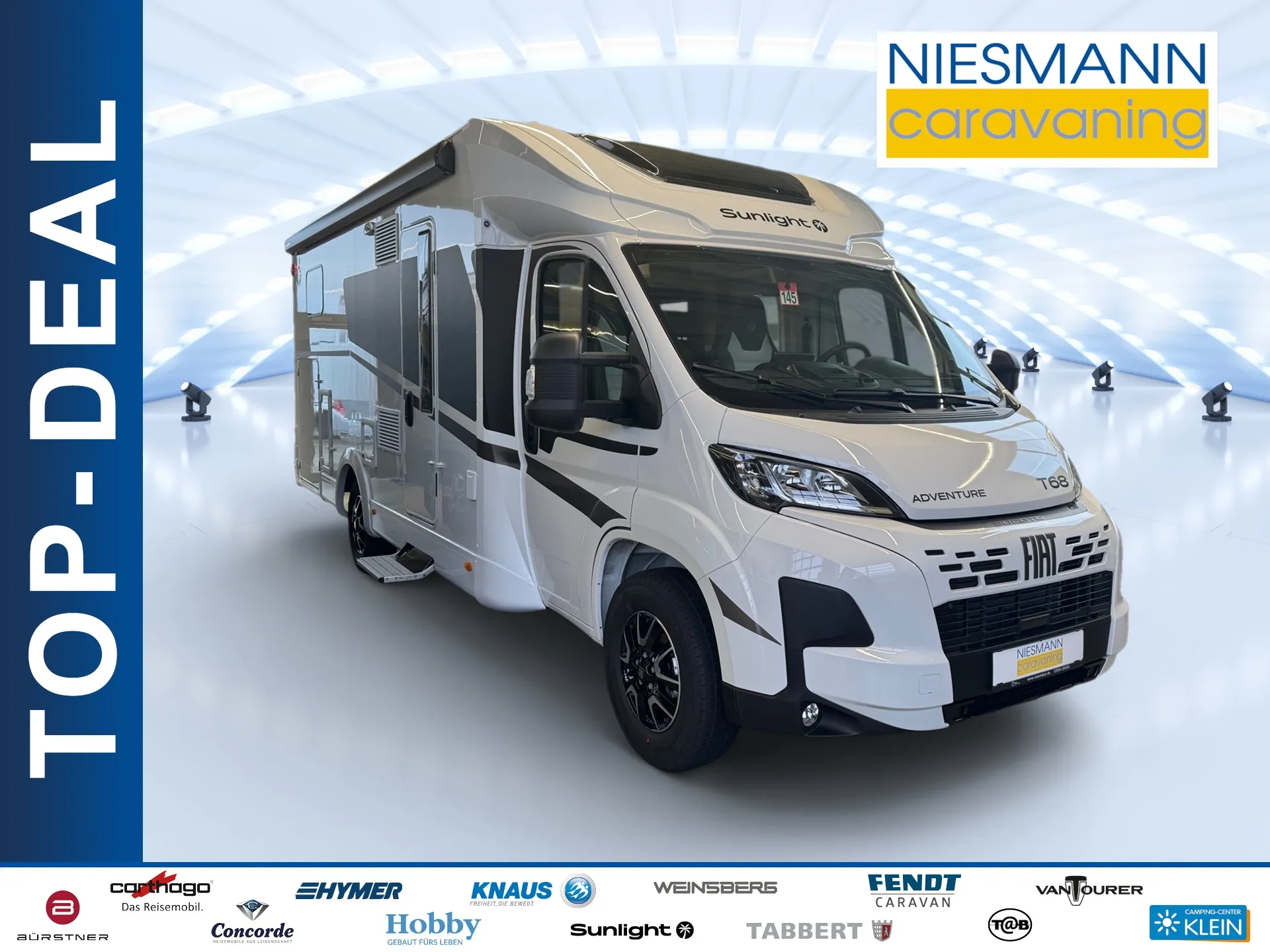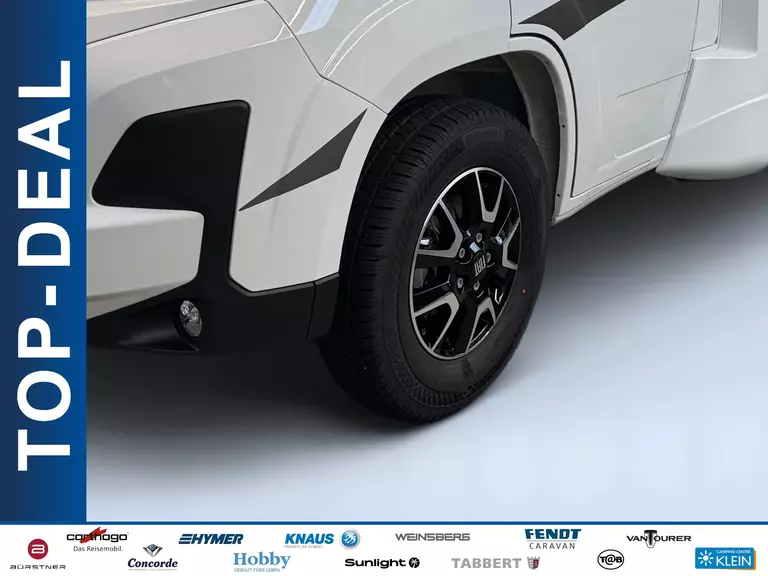 - Adventure Edition (Fiat Ducato 3.500 kg – 2.2 Multijet – 103 kW / 140 PS Euro 6 – 6-Gang-Schaltgetriebe, Fiat Weiß, Adventure Beklebung, Wohnwelt Adventure, Design Applikation Heck, Fenster in Fronthaube, Rahmenfenster, 2. Außenstauraumklappe (Größe modellabhängig), Großer Kühlschrank 156 l mit separatem Frosterfach 29 l, Bettenumbau Einzelbett zu Doppelbett, Paket One Black (Markise, Fahrradträger 3-fach), Basic-Paket, Paket Stoßfänger lackiert, Paket Alufelgen Bi-Color)
