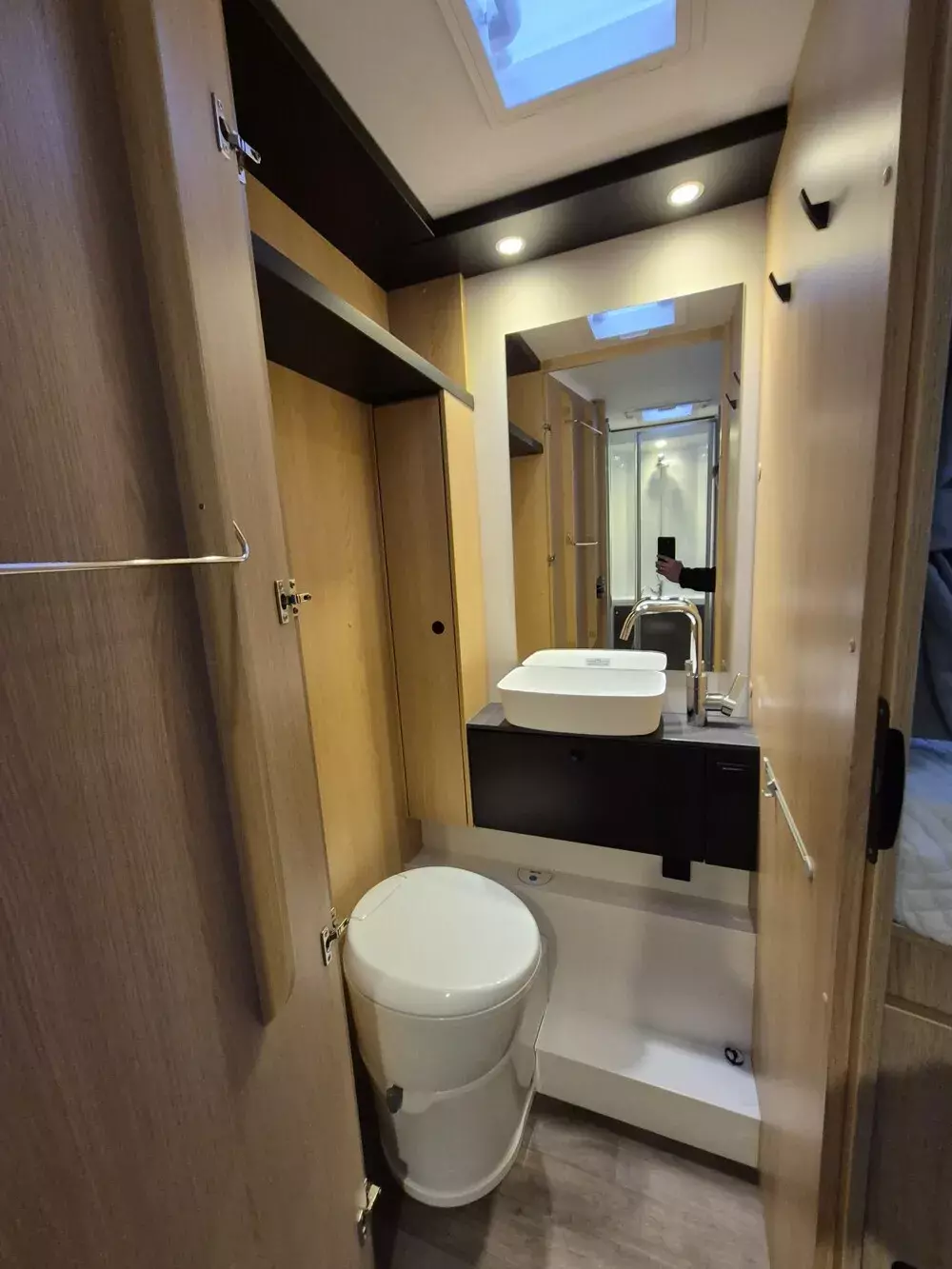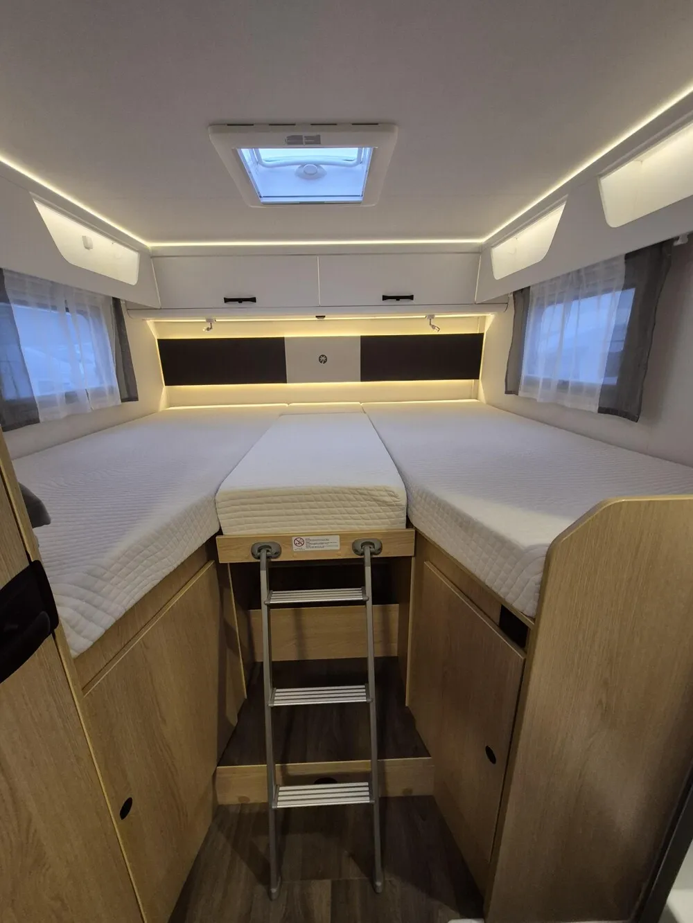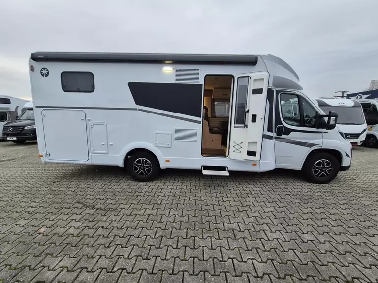 - Adventure Ausstattung 68 (Fiat Ducato 3.500 kg | 2.2 Multijet | 103 kW | 140 PS Euro 6 | 6-Gang-Schaltgetriebe, Chassisfarbe Weiß, Adventure Beklebung, Wohnwelt Adventure, Design Applikation Heck, Fenster in Fronthaube, Rahmenfenster, 2. Außenstauraumklappe (Größe modellabhängig), Großer Kühlschrank 156 l mit separatem Frosterfach 29 l, Bettenumbau Einzelbett zu Doppelbett, Paket One Black (Markise, Fahrradträger 3-fach), Bridge Light, Komfort Eingangstür mit Fenster, Fliegengittertür (einteilig), Panoramadachhaube 70 x 50 cm, Klarglasdachhaube 40 x 40 cm, Stoßfänger lackiert, Skid Plate Schwarz, Nebelscheinwerfer, Lenkrad & Schaltknauf in Lederausführung, Luftauslässe mit Applikationen Silber (Techno-Trim), 16" Alufelgen Bi-Color)