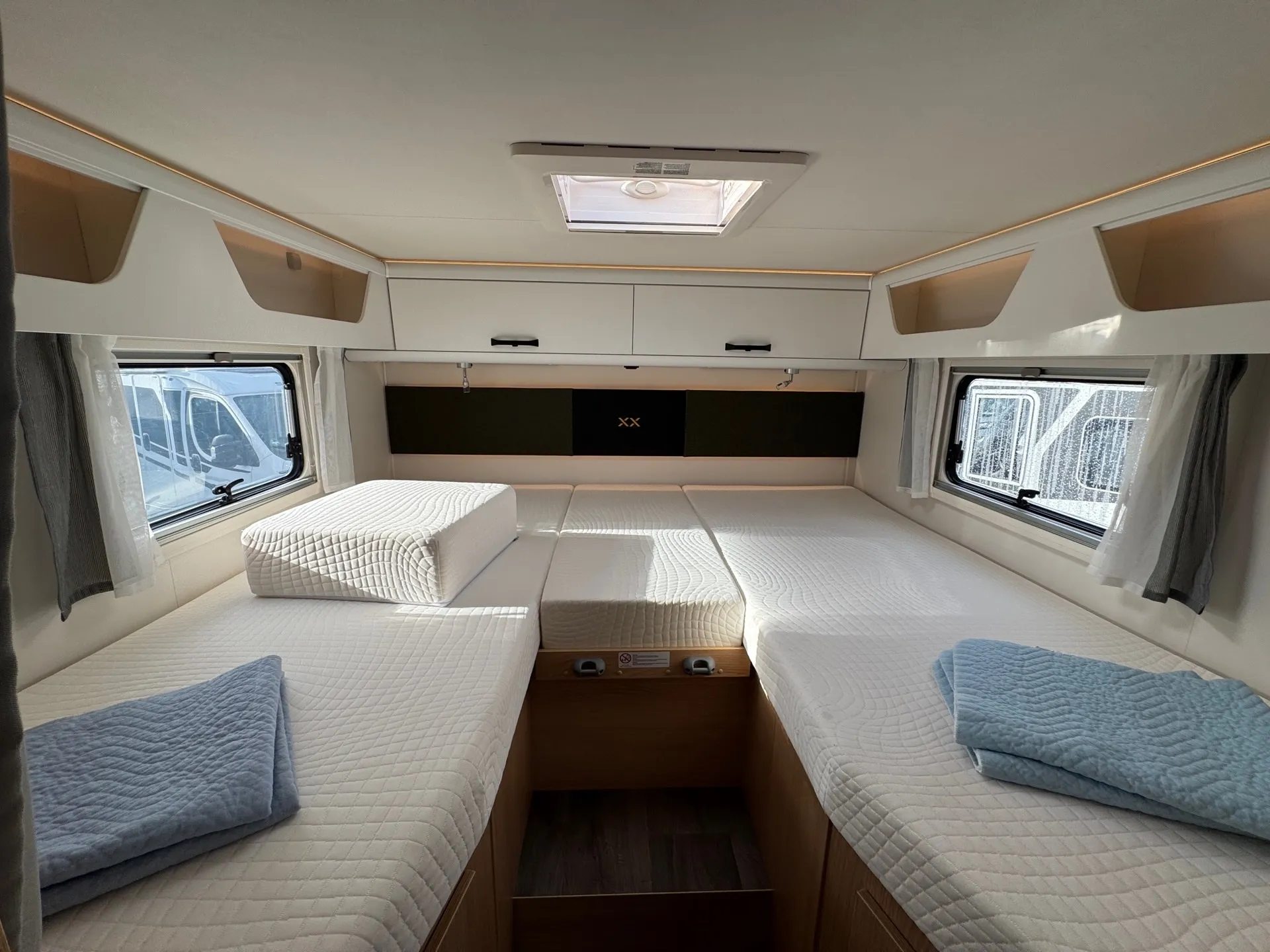 - Editionsausstattung XX 68 (Chassisfarbe Schwarz inkl. Seitenwand in Silberglattblech, XX Editionsbeklebung, Wohnwelt XX Edition, Mobiles Internet (WiFi / LTE Antenne inkl. Router), 22" Smart TV, Design Applikation Heck, Rahmenfenster, Fenster in Fronthaube, 2. Außenstauraumklappe (Größe modellabhängig), Großer Kühlschrank 156 l mit separatem Frosterfach 29 l, Bettenumbau Einzelbett zu Doppelbett, Paket One Black (Markise, Fahrradträger 3-fach), Bridge Light, Komfort Eingangstür mit Fenster, Fliegengittertür (einteilig), Panoramadachhaube 70 x 50 cm, Klarglasdachhaube 40 x 40 cm, Stoßfänger lackiert, Skid Plate Schwarz, Nebelscheinwerfer, Lenkrad & Schaltknauf in Lederausführung, Luftauslässe mit Applikationen Silber (Techno-Trim), 16" Alufelgen schwarz matt)