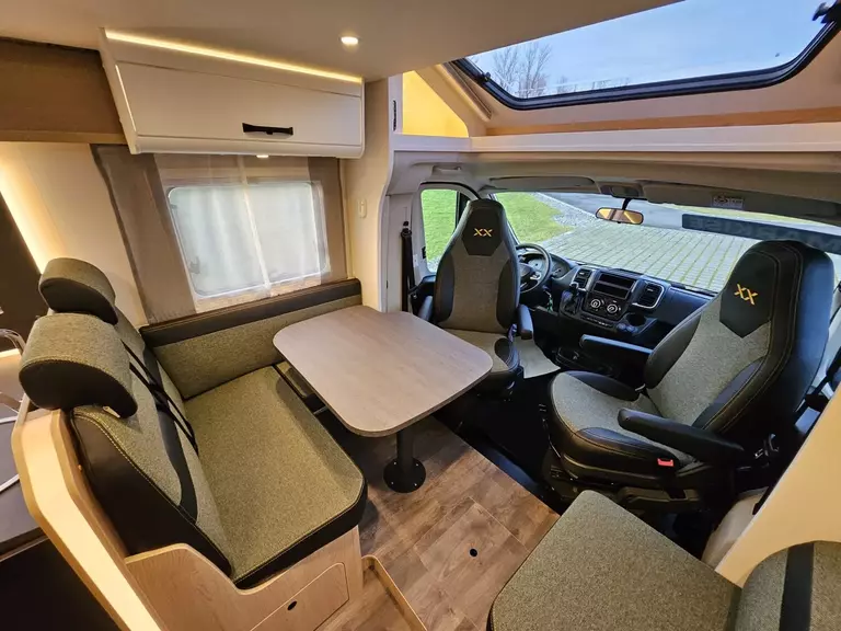 - Editionsausstattung XX 68 (Fiat Ducato 3.500 kg | 2.2 Multijet | 103 kW | 140 PS Euro 6 | 6-Gang-Schaltgetriebe, Chassisfarbe Schwarz inkl. Seitenwand in Silberglattblech, XX Editionsbeklebung, Wohnwelt XX Edition mit Echtleder Applikationen, Mobiles Internet (WiFi / LTE Antenne inkl. Router), 22" Smart TV, Design Applikation Heck, Rahmenfenster, Fenster in Fronthaube, 2. Außenstauraumklappe (Größe modellabhängig), Großer Kühlschrank 156 l mit separatem Frosterfach 29 l, Bettenumbau Einzelbett zu Doppelbett, Paket One Black (Markise, Fahrradträger 3-fach), Bridge Light, Komfort Eingangstür mit Fenster, Fliegengittertür (einteilig), Panoramadachhaube 70 x 50 cm, Klarglasdachhaube 40 x 40 cm, Stoßfänger lackiert, Skid Plate Schwarz, Nebelscheinwerfer, Lenkrad & Schaltknauf in Lederausführung, Luftauslässe mit Applikationen Silber (Techno-Trim), 16" Alufelgen schwarz matt)