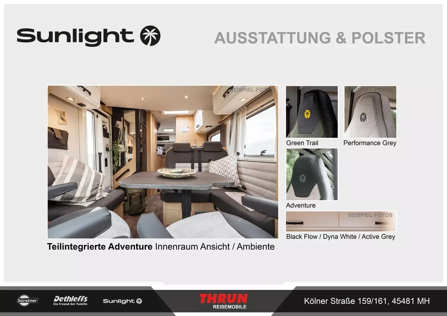 - Aktionsprämie "Ready to Roll" (Der Aktionszeitraum der Ready to Roll Aktion erstreckt sich auf abgeschlossene Kaufverträge vom 15.01.2026 ,bis einschließlich 31.03.2026. Die Aktion ist gültig bei allen teilnehmenden Handelspartnern von SUNLIGHT und gilt ausschließlich für den Kauf von Neufahrzeugen. Der Aktionswert variiert je nach Baureihe und beinhaltet die Mehrwertsteuer. Sunlight behält sich das Recht vor, Aktionsbedingungen jederzeit zu ändern sowie die Aktion vorzeitig zu beenden. Kaufverträge innerhalb der Aktion sind vom Widerruf ausgeschlossen. )