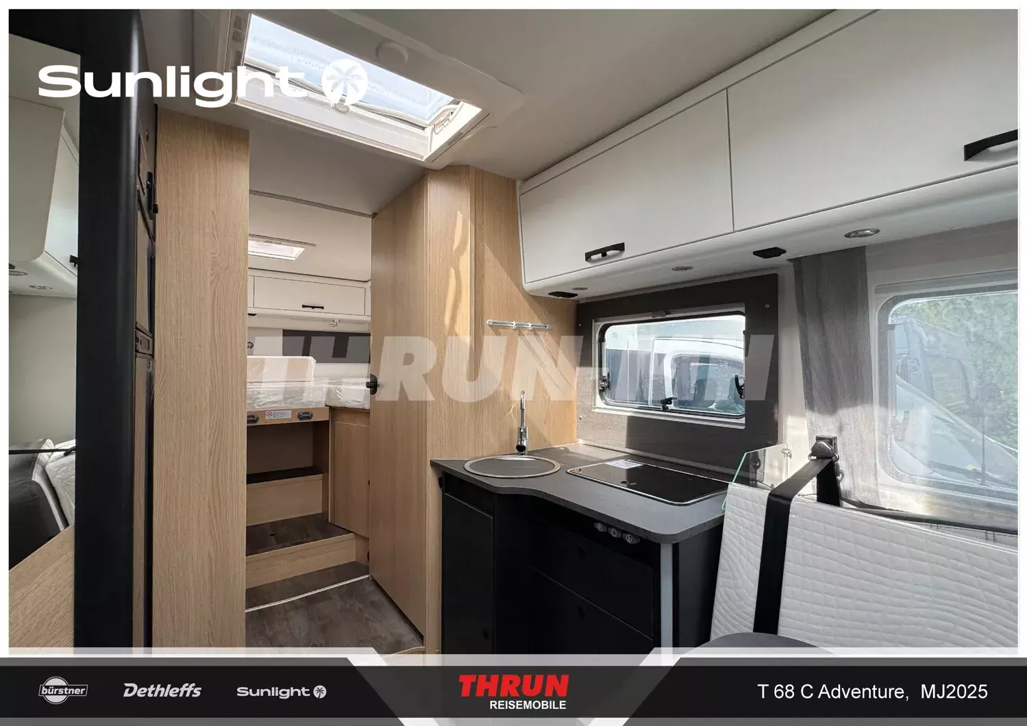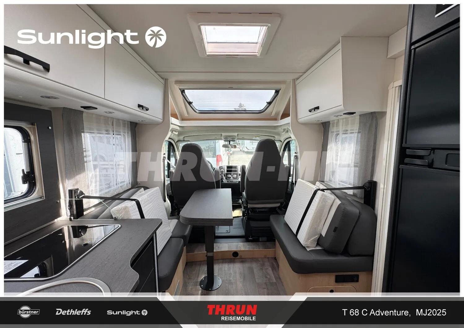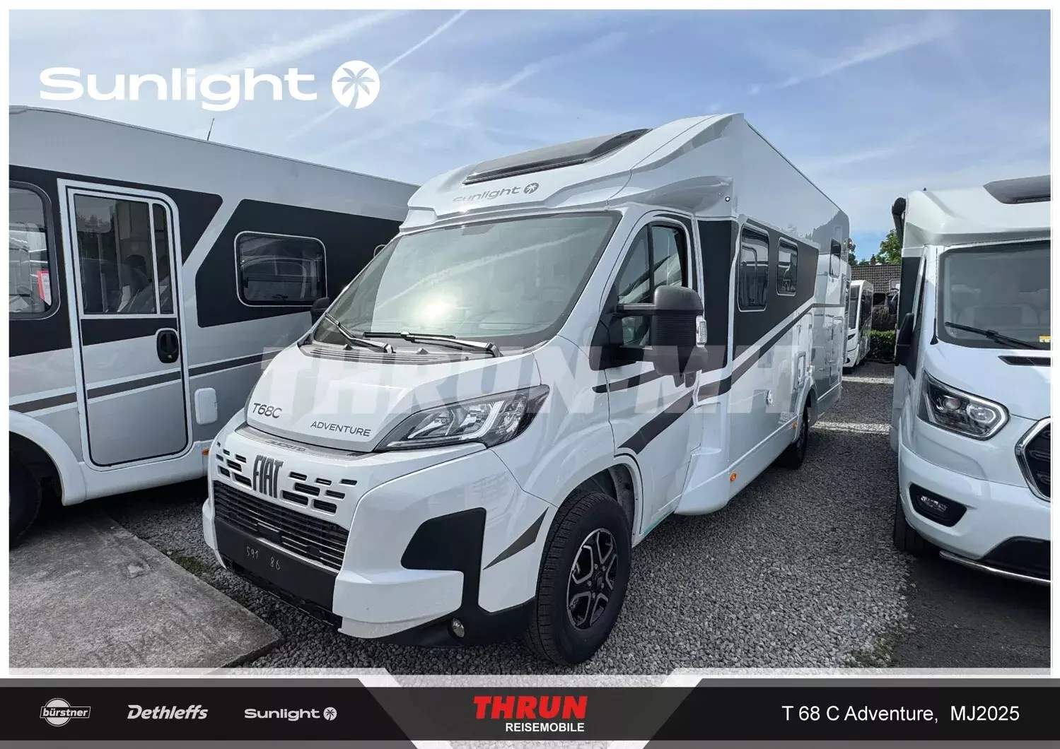 - Editionsausstattung Adventure 68C (Fiat Ducato 3.500 kg - 2.2 Multijet - 103 kW / 140 PS Euro 6 - 6-Gang-Schaltgetriebe, Chassisfarbe Weiß, Adventure Beklebung, Wohnwelt Adventure, Design Applikation Heck, Fenster in Fronthaube, Rahmenfenster, 2. Außenstauraumklappe (Größe modellabhängig), Großer Kühlschrank 156 l mit separatem Frosterfach 29 l, Bettenumbau Einzelbett zu Doppelbett, Paket One Black (Markise, Fahrradträger 3-fach), Bridge Light, Komfort Eingangstür mit Fenster, Fliegengittertür (einteilig), Panoramadachhaube 70 x 50 cm, Klarglasdachhaube 40 x 40 cm, Stoßfänger lackiert, Skid Plate Schwarz, Nebelscheinwerfer, Lenkrad & Schaltknauf in Lederausführung, Luftauslässe mit Applikationen Silber (Techno-Trim), 16" Alufelgen Bi-Color)