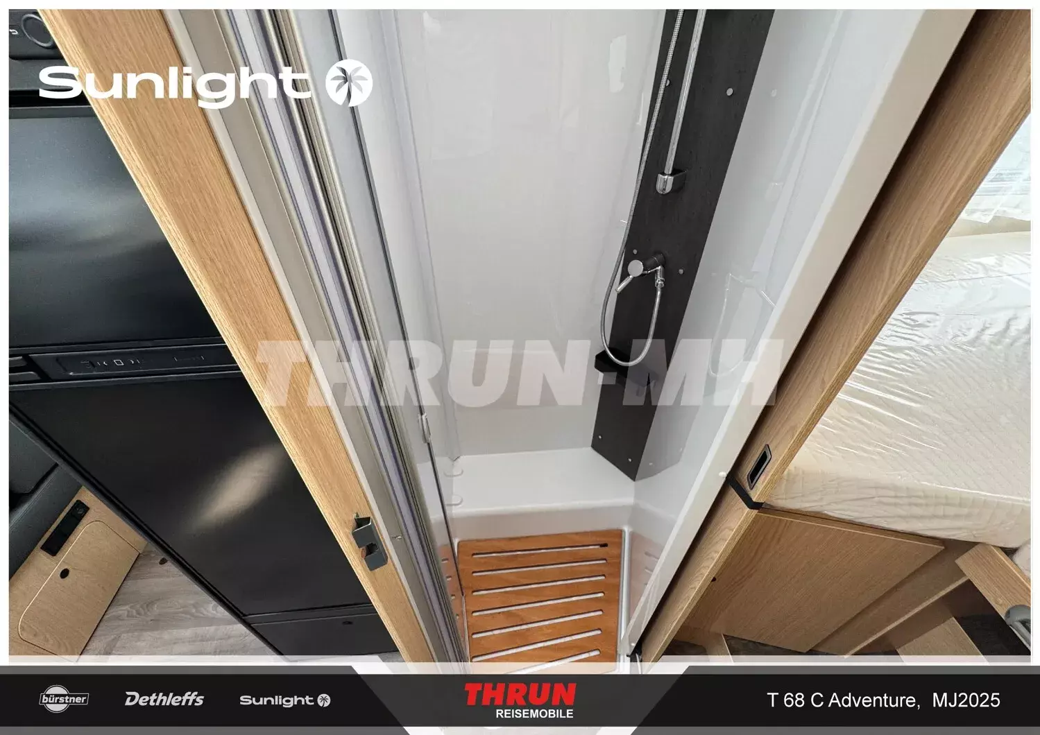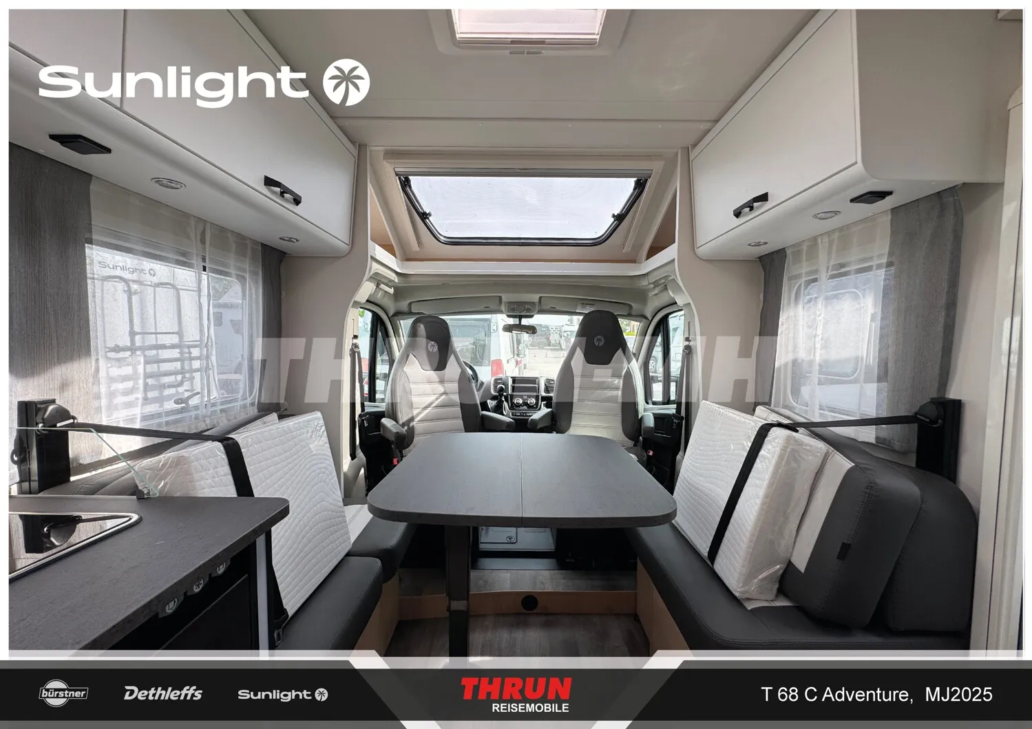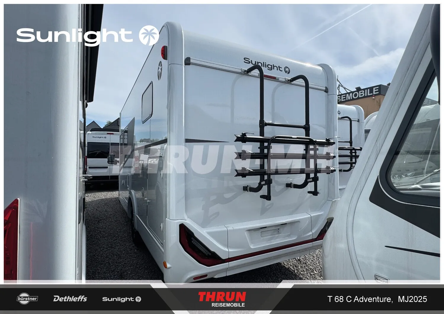 - Editionsausstattung Adventure 68C (Fiat Ducato 3.500 kg - 2.2 Multijet - 103 kW / 140 PS Euro 6 - 6-Gang-Schaltgetriebe, Chassisfarbe Weiß, Adventure Beklebung, Wohnwelt Adventure, Design Applikation Heck, Fenster in Fronthaube, Rahmenfenster, 2. Außenstauraumklappe (Größe modellabhängig), Großer Kühlschrank 156 l mit separatem Frosterfach 29 l, Bettenumbau Einzelbett zu Doppelbett, Paket One Black (Markise, Fahrradträger 3-fach), Bridge Light, Komfort Eingangstür mit Fenster, Fliegengittertür (einteilig), Panoramadachhaube 70 x 50 cm, Klarglasdachhaube 40 x 40 cm, Stoßfänger lackiert, Skid Plate Schwarz, Nebelscheinwerfer, Lenkrad & Schaltknauf in Lederausführung, Luftauslässe mit Applikationen Silber (Techno-Trim), 16" Alufelgen Bi-Color)