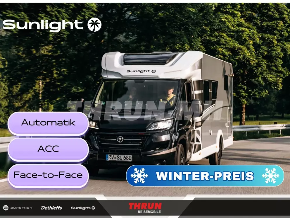 - Aktionsprämie "Ready to Roll" (Der Aktionszeitraum der Ready to Roll Aktion erstreckt sich auf abgeschlossene Kaufverträge vom 15.01.2026 ,bis einschließlich 31.03.2026. Die Aktion ist gültig bei allen teilnehmenden Handelspartnern von SUNLIGHT und gilt ausschließlich für den Kauf von Neufahrzeugen. Der Aktionswert variiert je nach Baureihe und beinhaltet die Mehrwertsteuer. Sunlight behält sich das Recht vor, Aktionsbedingungen jederzeit zu ändern sowie die Aktion vorzeitig zu beenden. Kaufverträge innerhalb der Aktion sind vom Widerruf ausgeschlossen. )