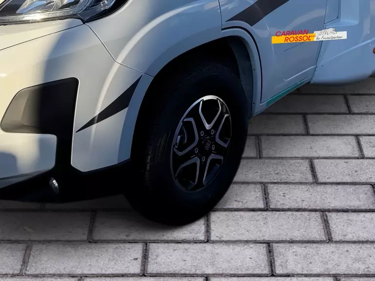 - Adventure Ausstattung 68C (Fiat Ducato 3.500 kg | 2.2 Multijet | 103 kW | 140 PS Euro 6 | 6-Gang-Schaltgetriebe, Chassisfarbe Weiß, Adventure Beklebung, Wohnwelt Adventure, Design Applikation Heck, Fenster in Fronthaube, Rahmenfenster, 2. Außenstauraumklappe (Größe modellabhängig), Großer Kühlschrank 156 l mit separatem Frosterfach 29 l, Bettenumbau Einzelbett zu Doppelbett, Paket One Black (Markise, Fahrradträger 3-fach), Bridge Light, Komfort Eingangstür mit Fenster, Fliegengittertür (einteilig), Panoramadachhaube 70 x 50 cm, Klarglasdachhaube 40 x 40 cm, Stoßfänger lackiert, Skid Plate Schwarz, Nebelscheinwerfer, Lenkrad & Schaltknauf in Lederausführung, Luftauslässe mit Applikationen Silber (Techno-Trim), 16" Alufelgen Bi-Color)